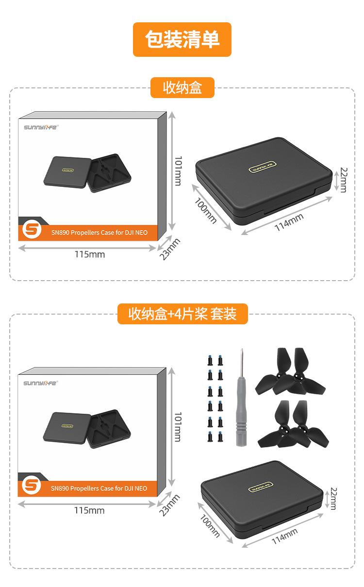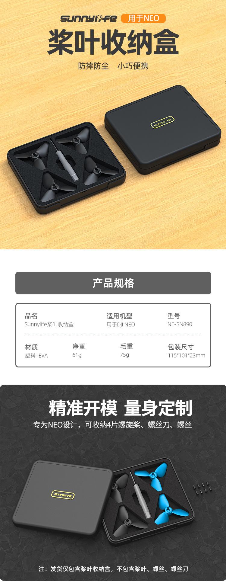 Apertura de molde precisa, forma única, especialmente diseñada para NEO, puede almacenar 4 hélices, destornilladores y tornillos.