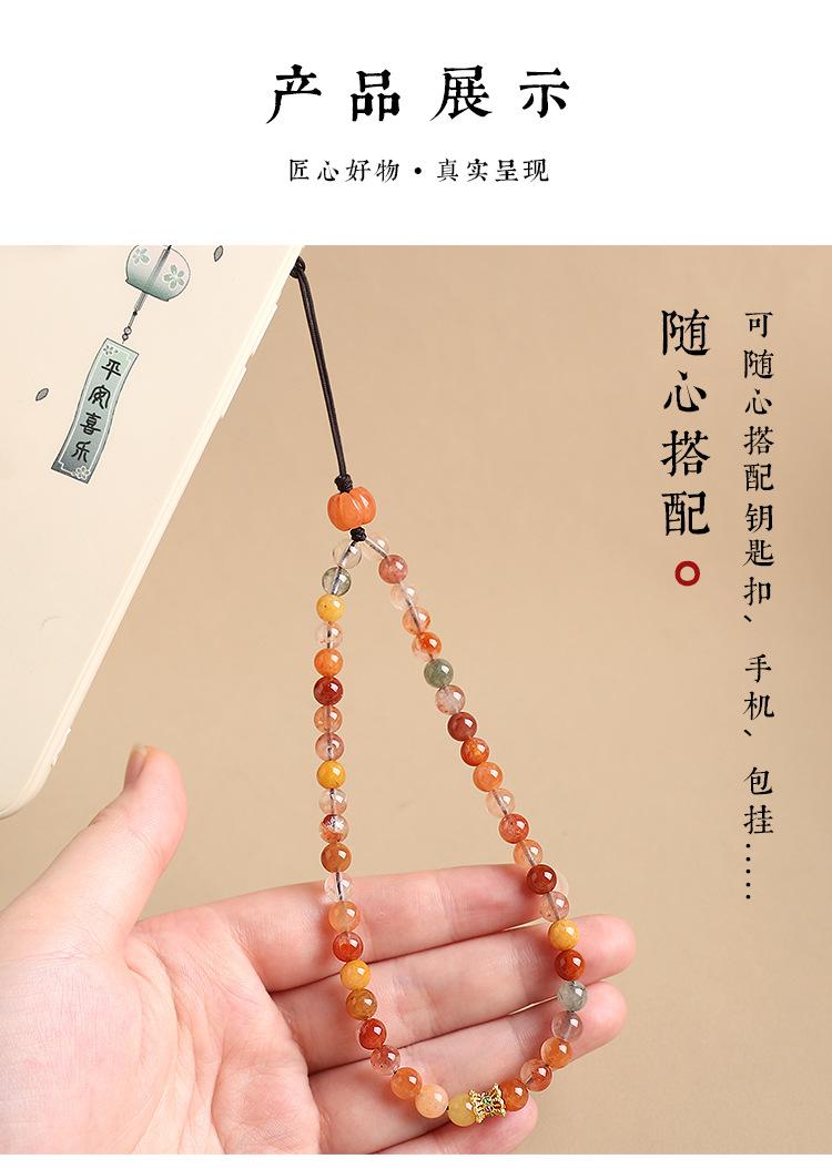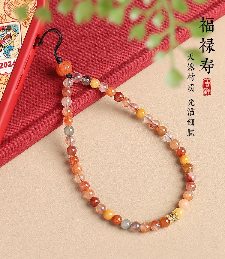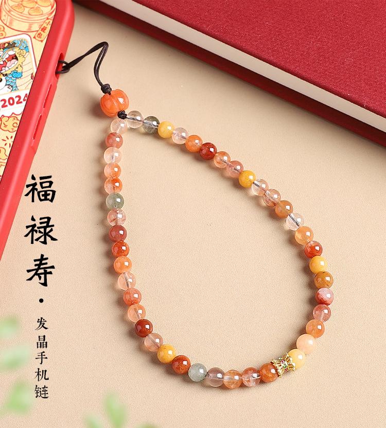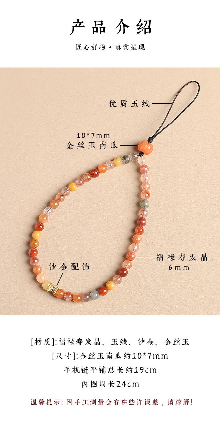 Colgante de cadena para teléfono móvil con cristales naturales Fu Lu Shou para mujer, exquisito cordón para teléfono móvil, accesorio simple antipérdida para colgar en la muñeca.