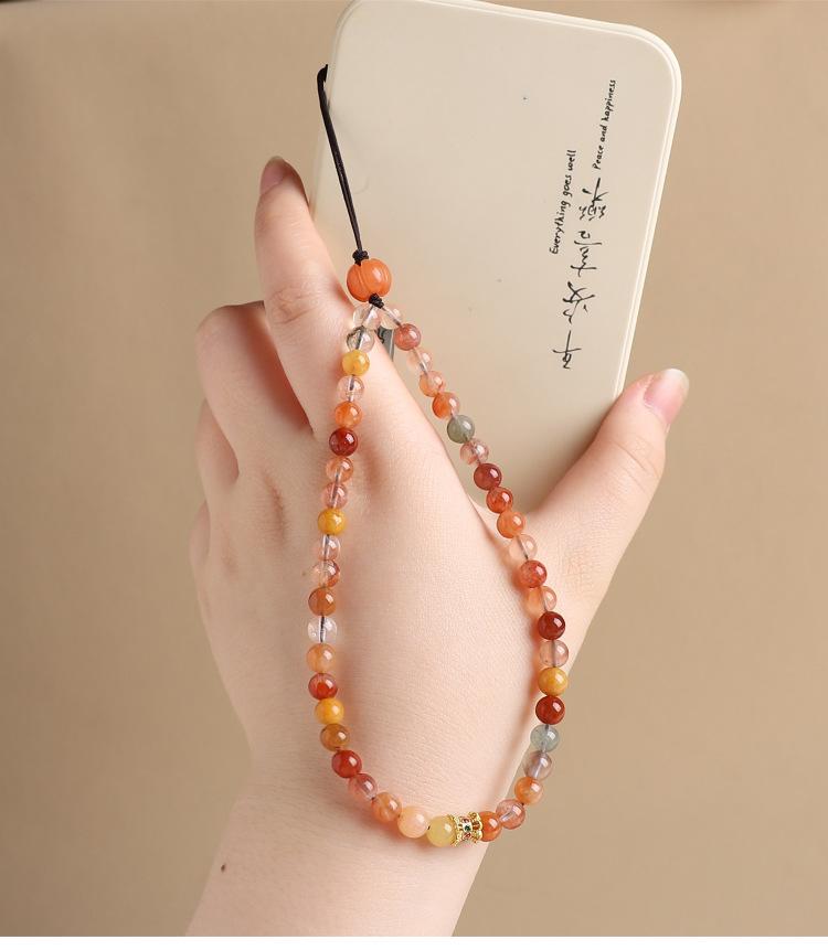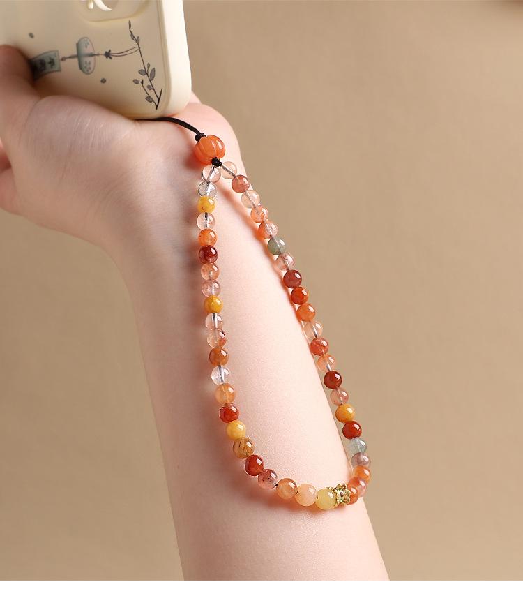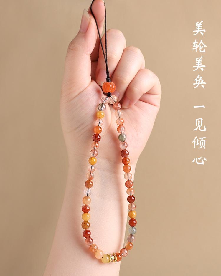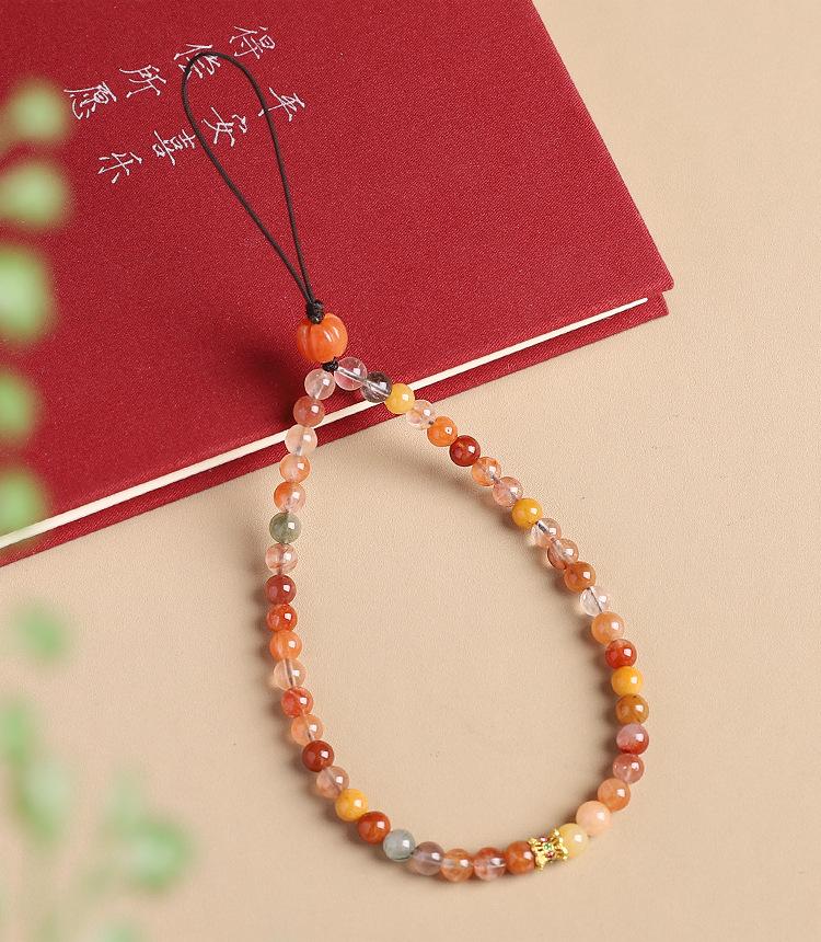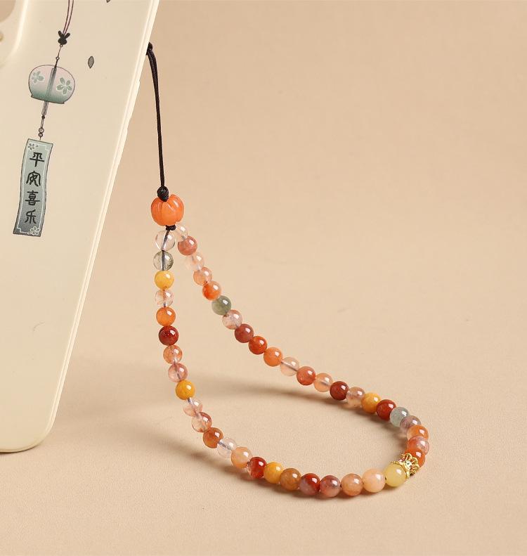 Colgante de cadena para teléfono móvil con cristales naturales Fu Lu Shou para mujer, exquisito cordón para teléfono móvil, accesorio simple antipérdida para colgar en la muñeca.