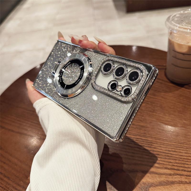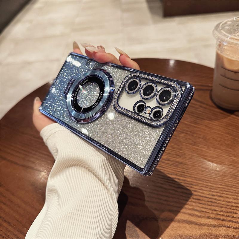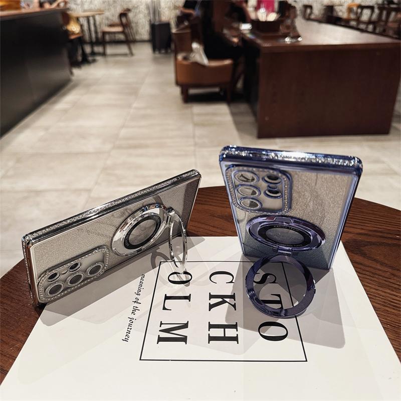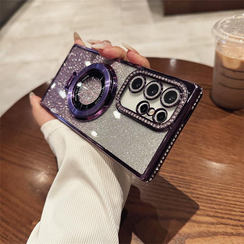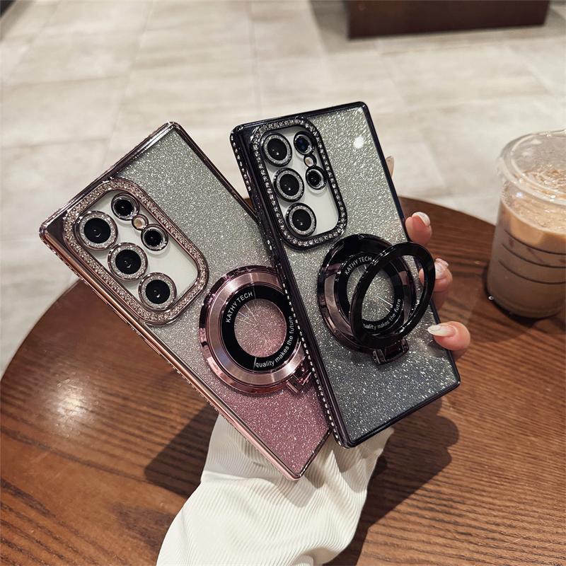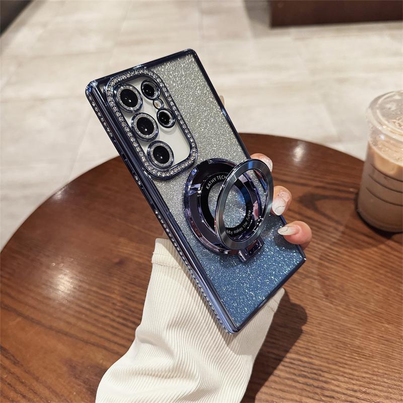Lujosa funda con purpurina degradada y diamantes de imitación para Samsung S24 Ultra, con soporte magnético, A55, galvanizada, A16