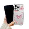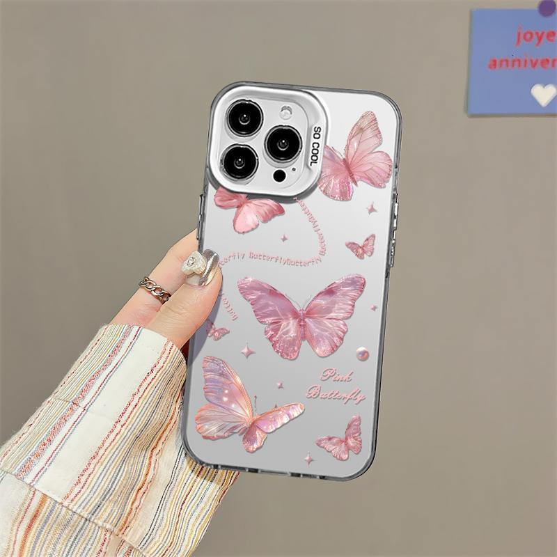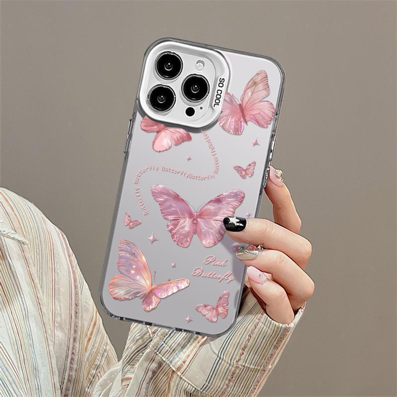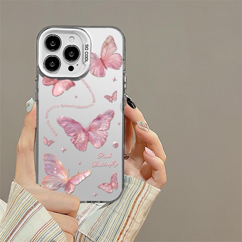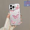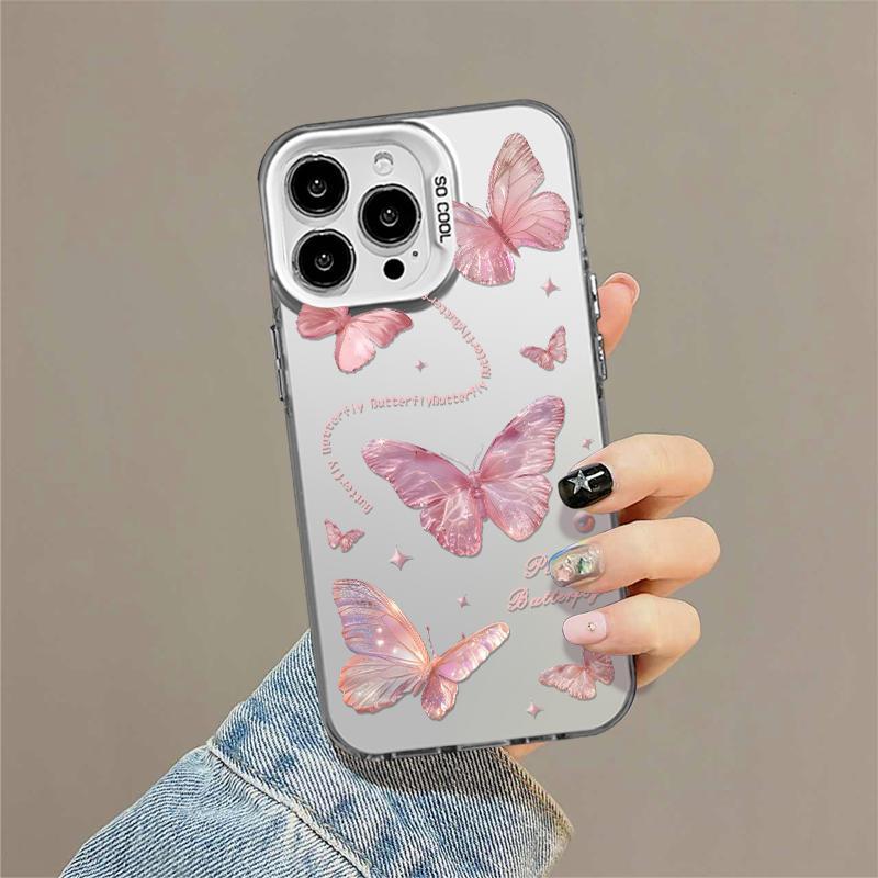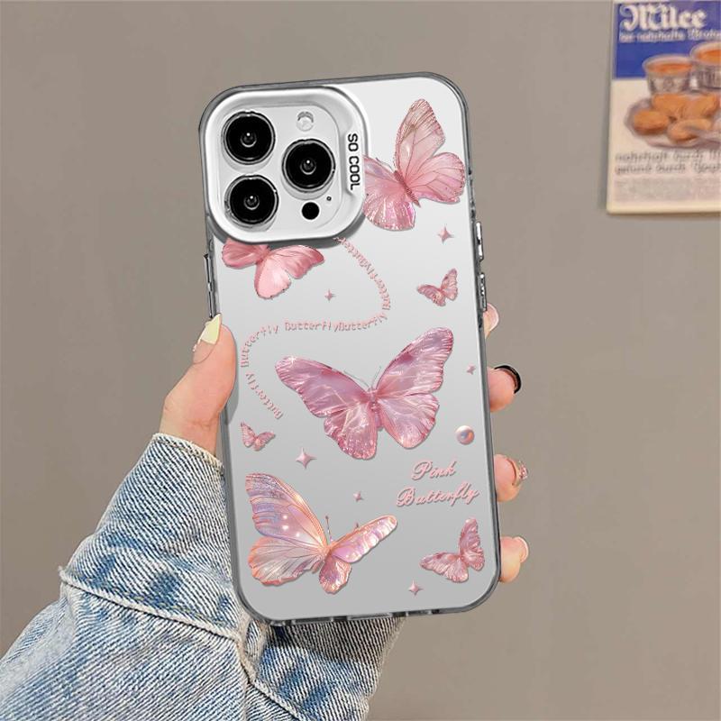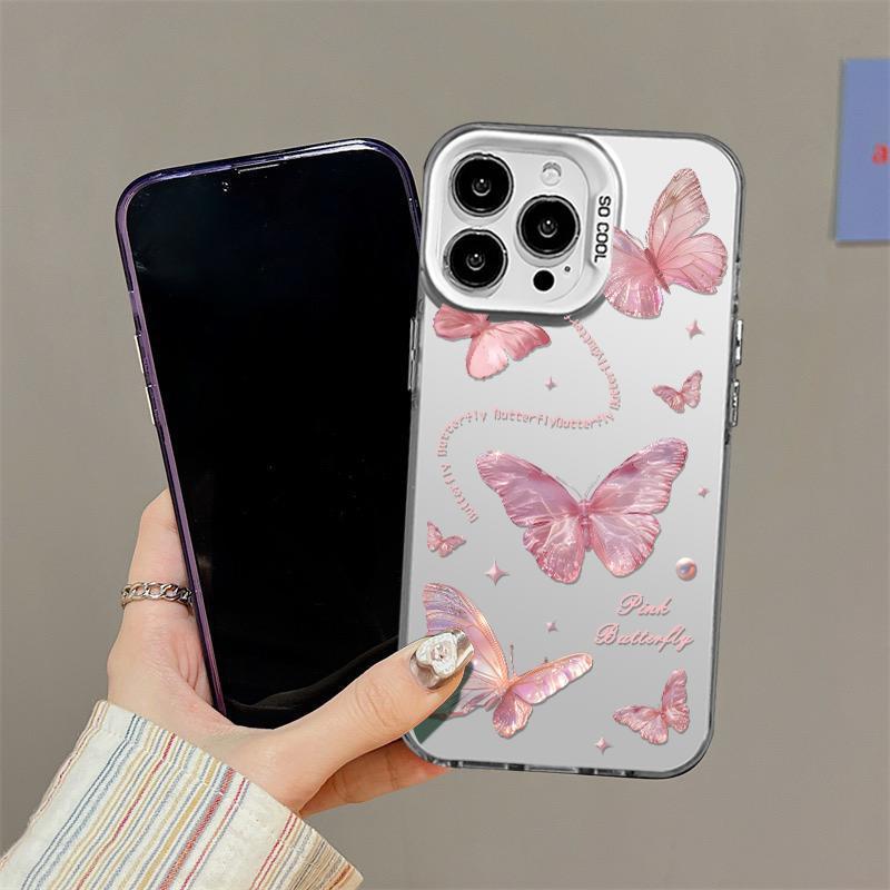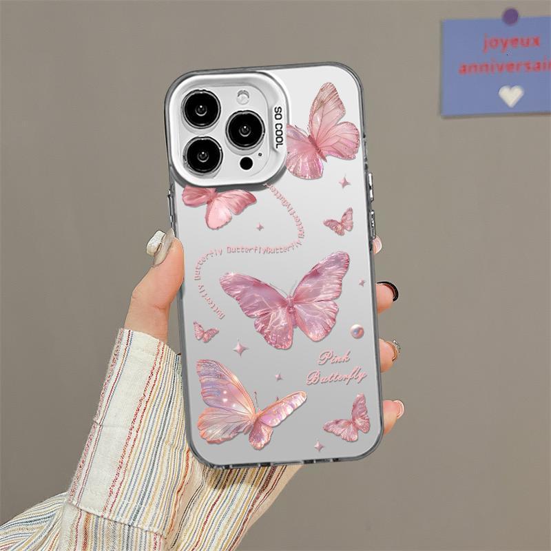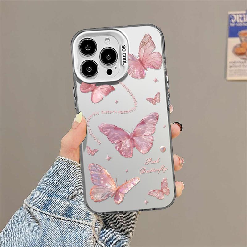 Funda para teléfono Apple 16 Pro, diseño de mariposa con ondas de agua rosa, 14/13 Premium Sense 12, color plateado, resistente a caídas, rígida y esmerilada, L