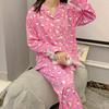 Pijama de verano para mujer, cárdigan de manga larga, pantalón, traje de verano para mujer 2024, nueva ropa de dibujos animados para primavera, otoño e invierno para el hogar.