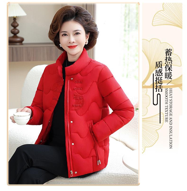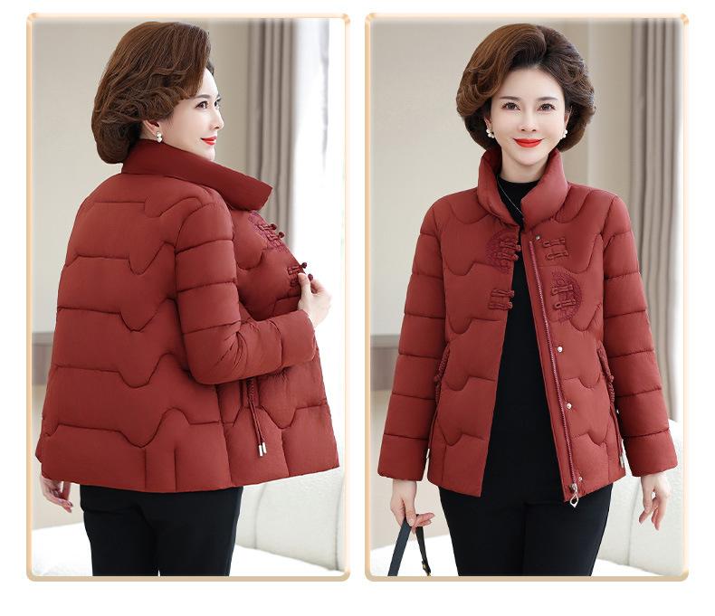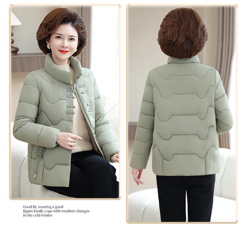 Abrigo acolchado de algodón para madre, otoño e invierno, nuevo abrigo acolchado de algodón de plumón para mujer de talla grande para mediana edad y mayores, abrigo acolchado de algodón con botones cortos pequeños