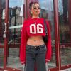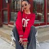 Otoño e Invierno Vintage Y2K Calle Estampado Digital Color en Contraste Cuello Redondo Manga Larga Suéter Pulóver Holgado Combinable Ropa de Mujer con Ombligo Descubierto