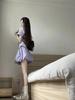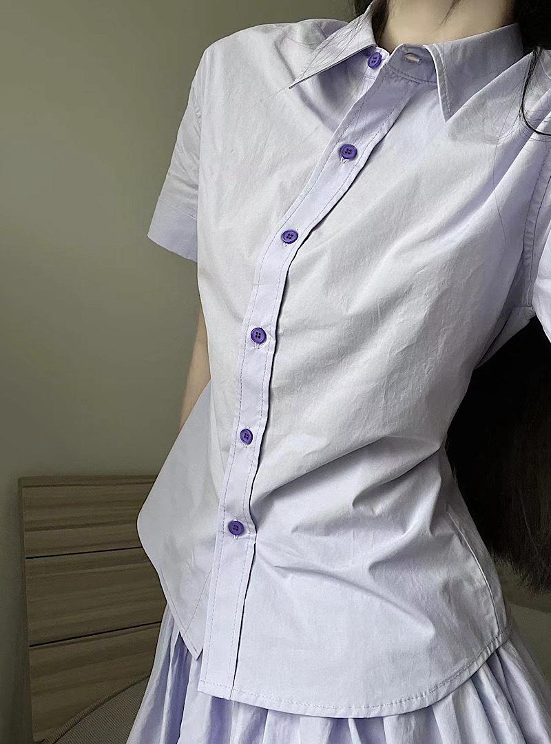 Traje Morado Solapa Camisa Elegante Falda Lápiz de Cintura Alta Verano para Mujer Falda Línea A Falda Corta Conjunto Trendy de Dos Piezas