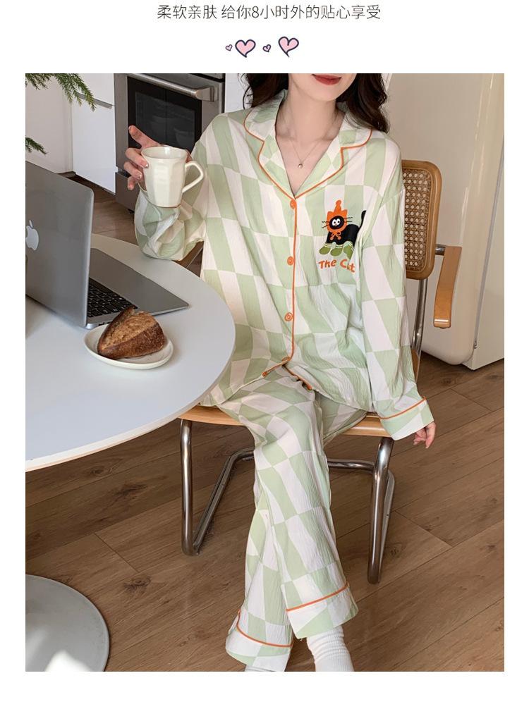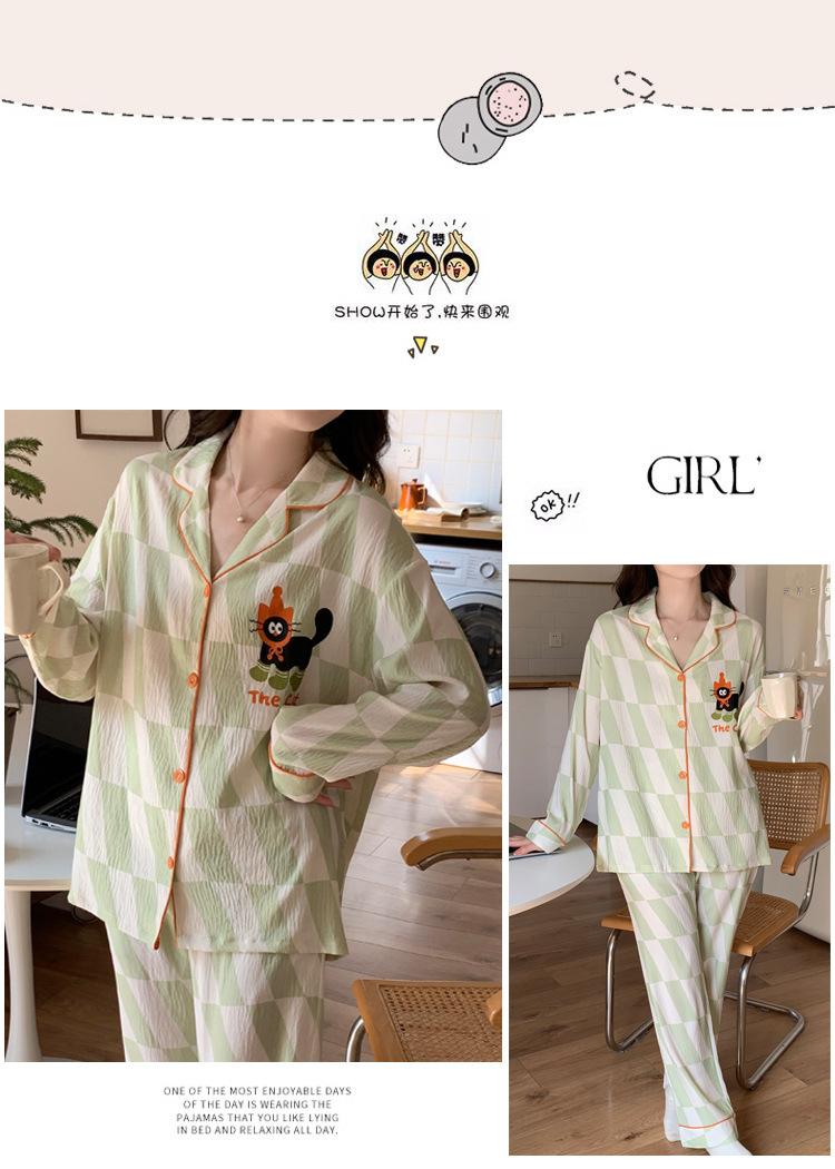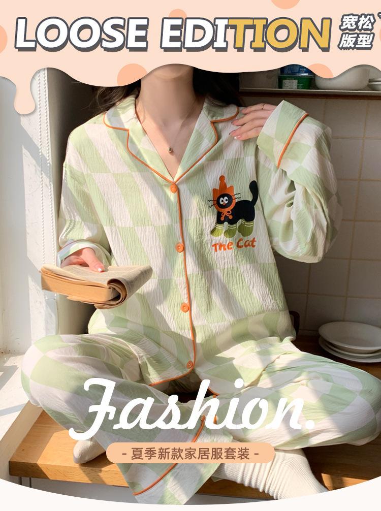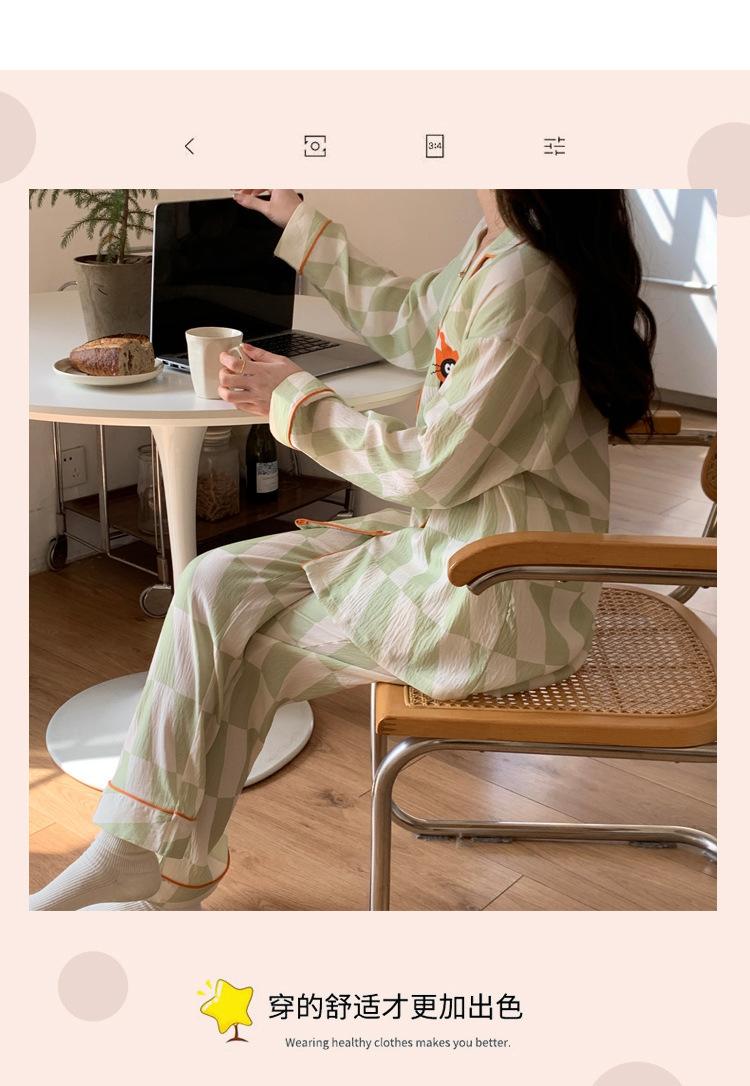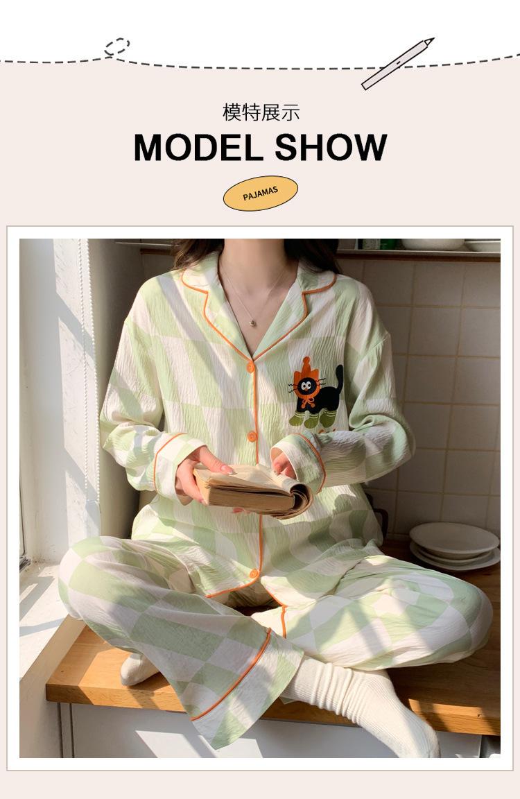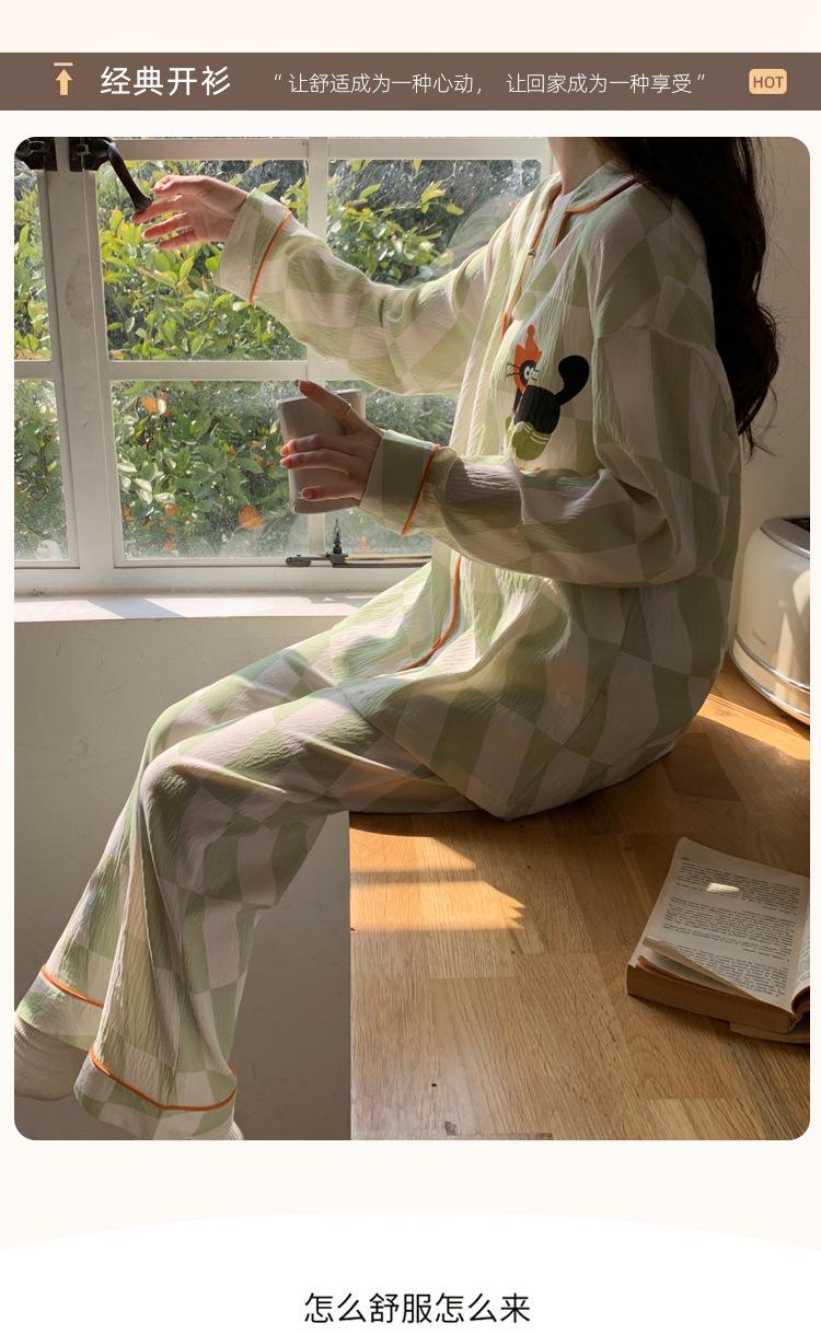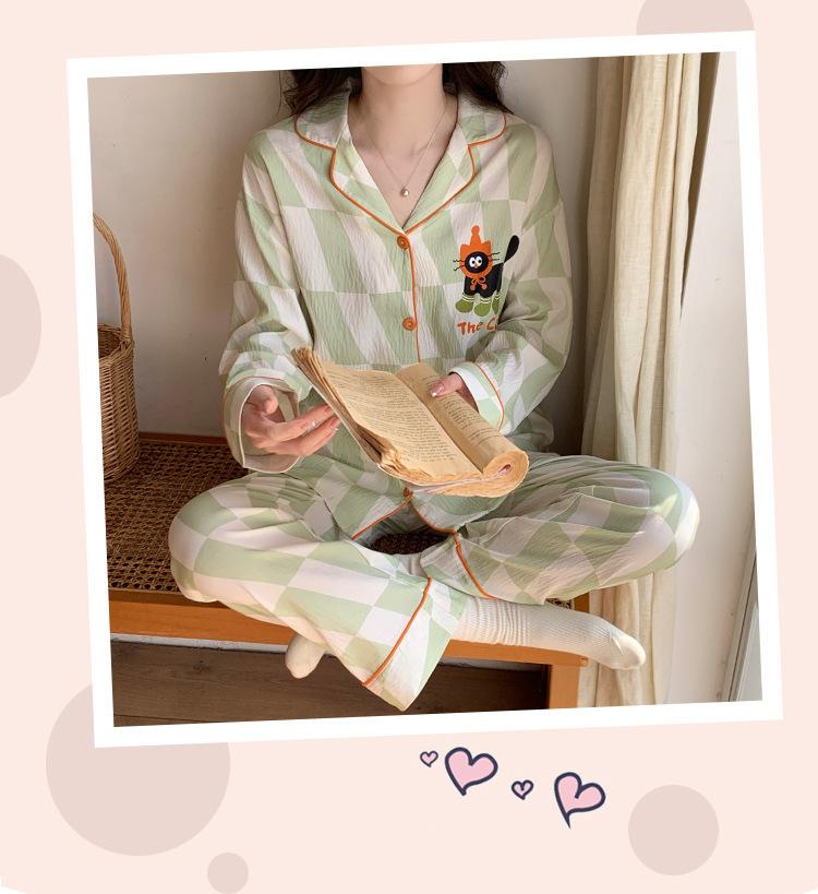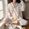 Pijama nuevo de primavera para mujer, cárdigan de solapa de algodón con nubes, pantalones de manga larga, traje de ropa de casa para niña linda y dulce