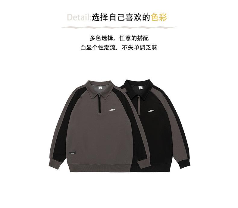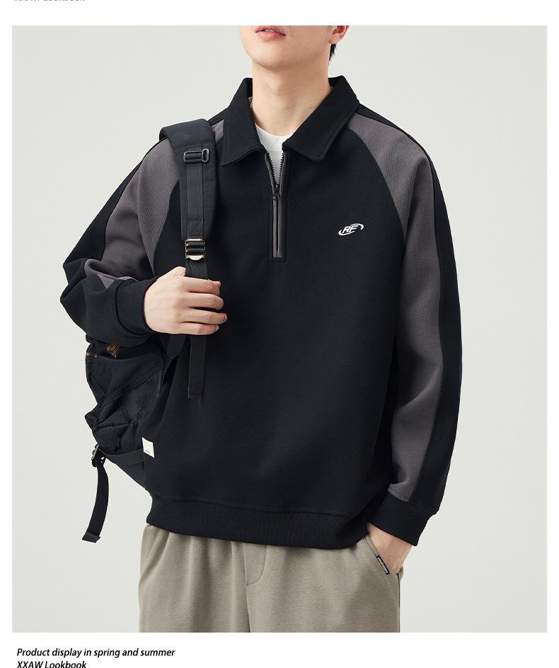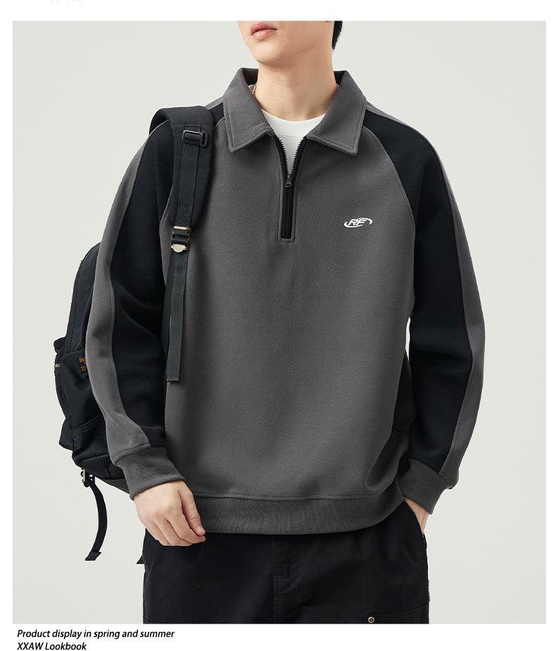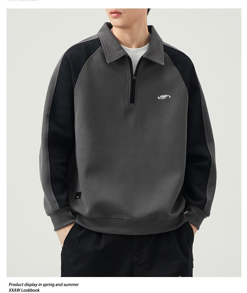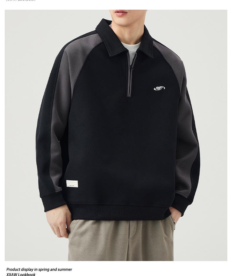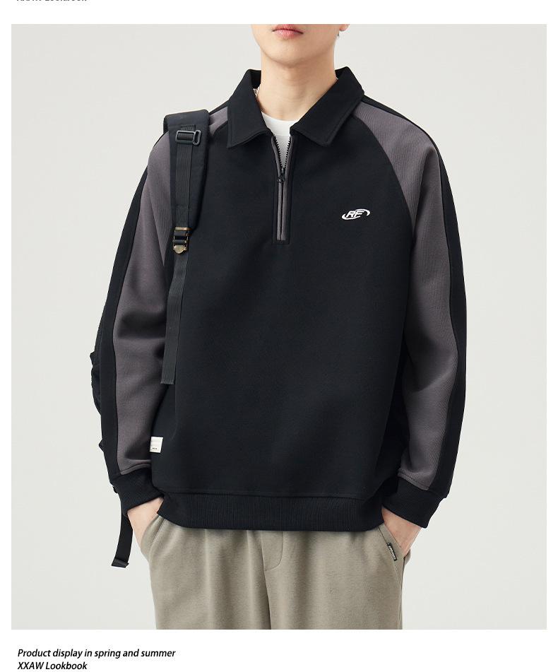 Compra Sudadera con cuello polo y costuras de color para hombre, otoño 2024, nueva marca de moda, retro, informal, holgada, de manga larga al por mayor en Joom.pro