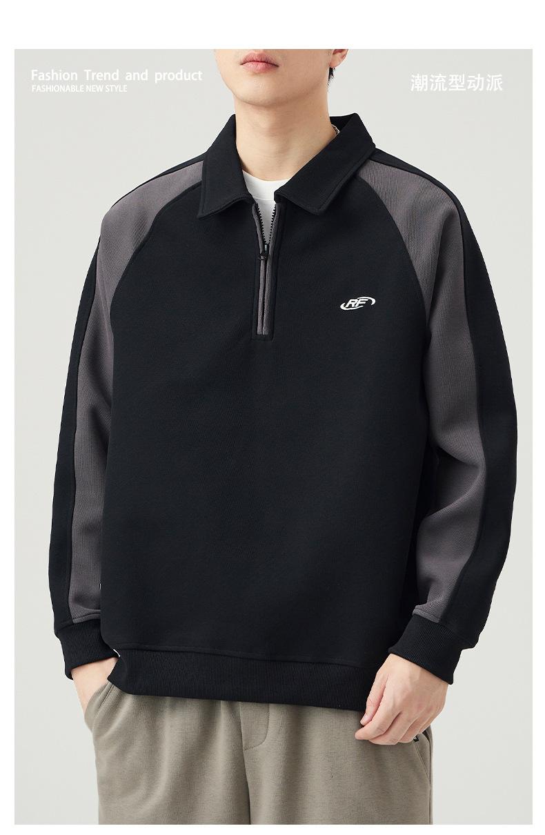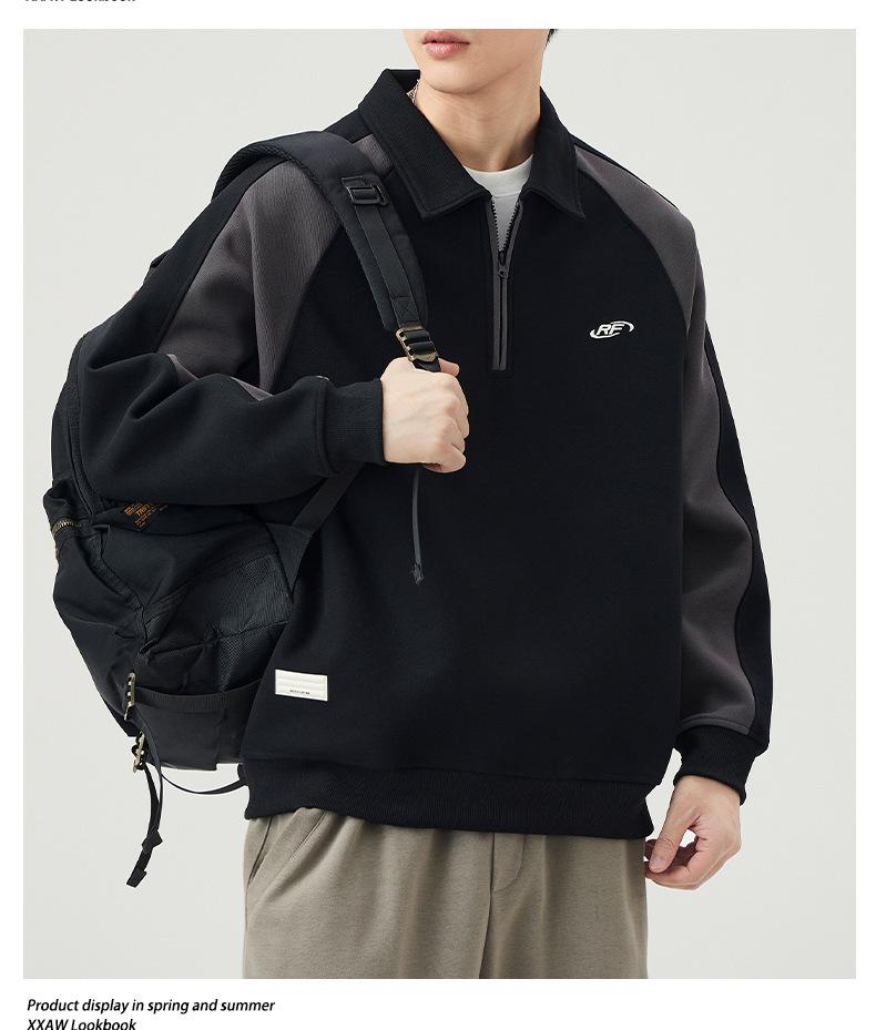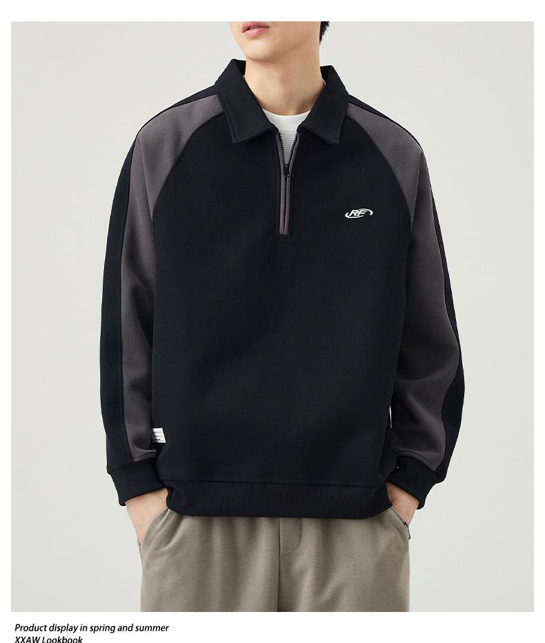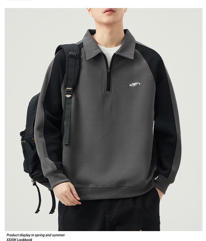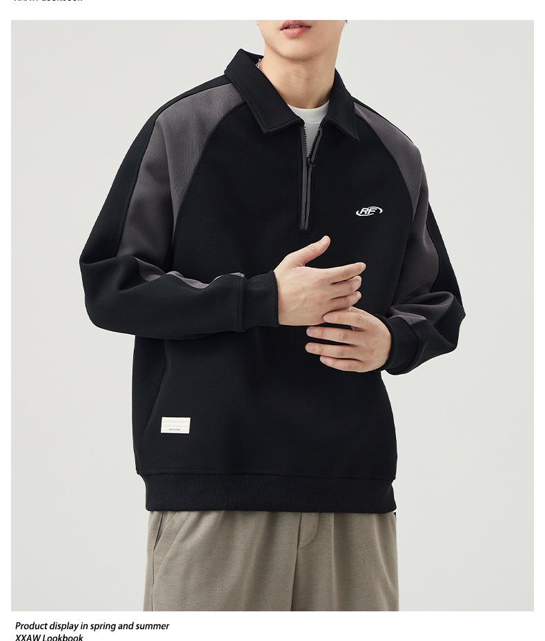 Compra Sudadera con cuello polo y costuras de color para hombre, otoño 2024, nueva marca de moda, retro, informal, holgada, de manga larga al por mayor en Joom.pro