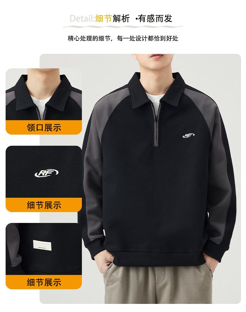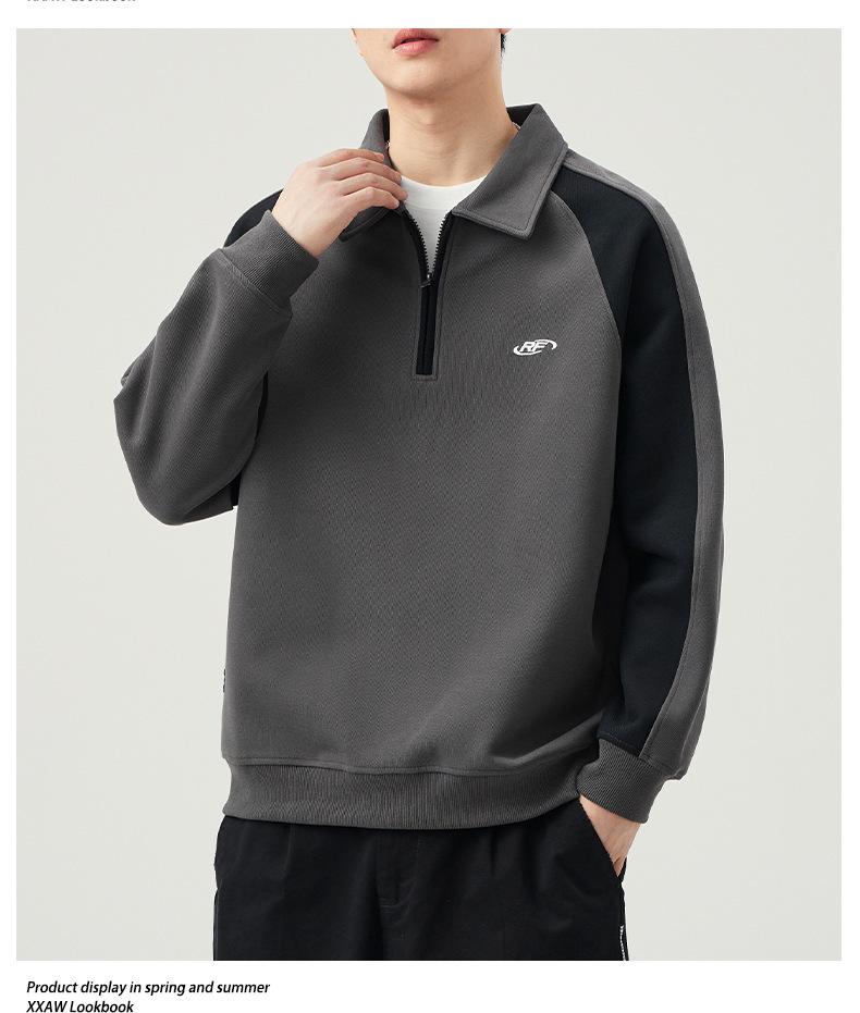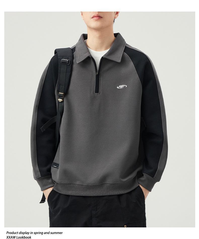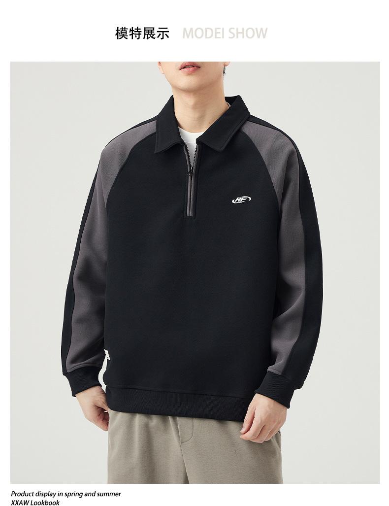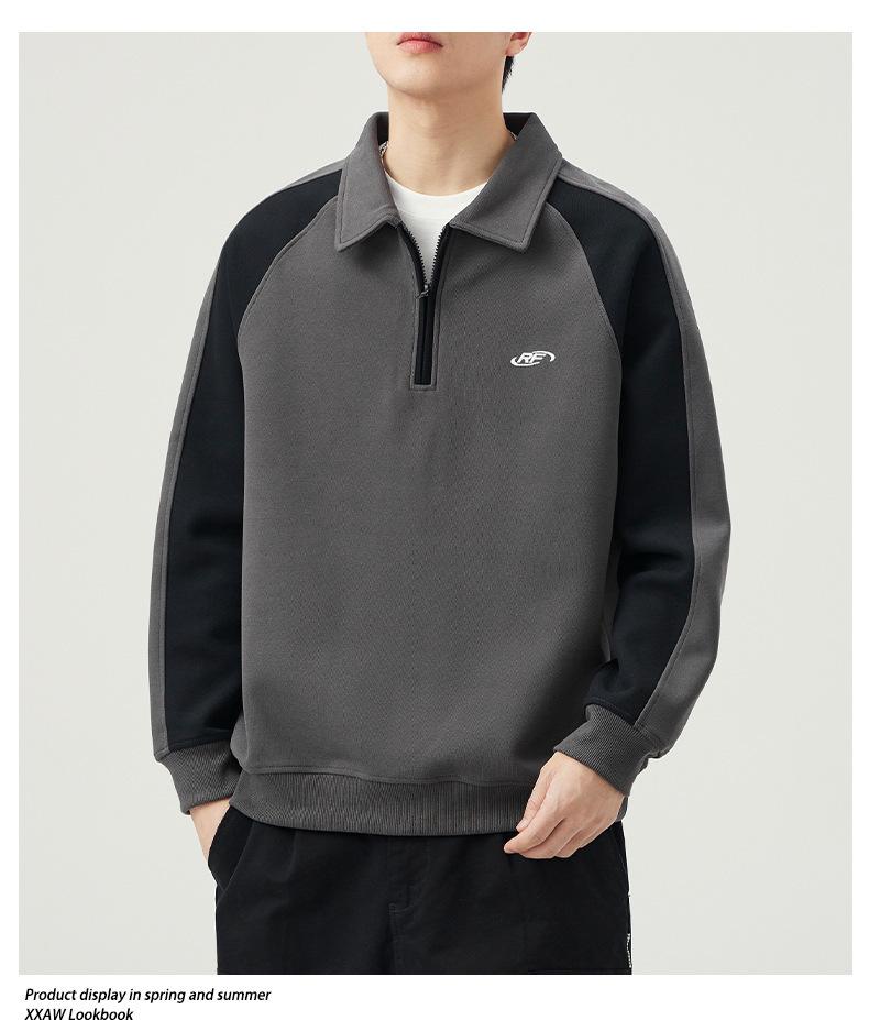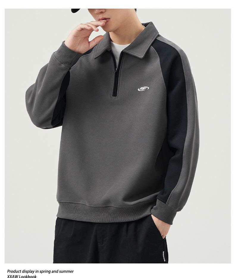 Compra Sudadera con cuello polo y costuras de color para hombre, otoño 2024, nueva marca de moda, retro, informal, holgada, de manga larga al por mayor en Joom.pro
