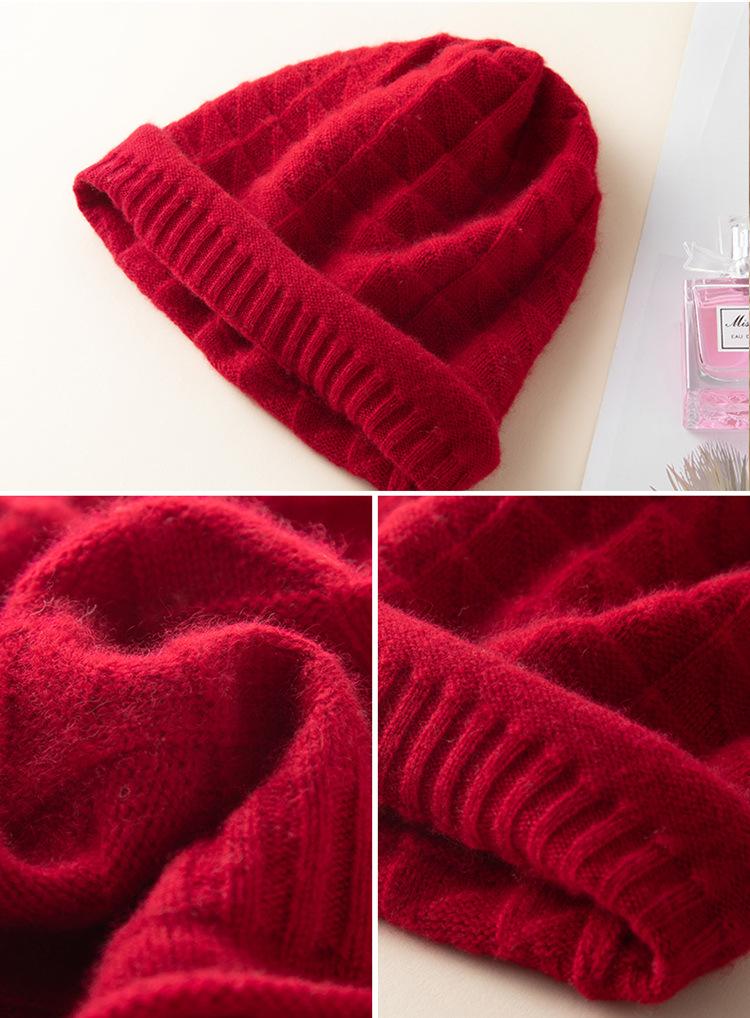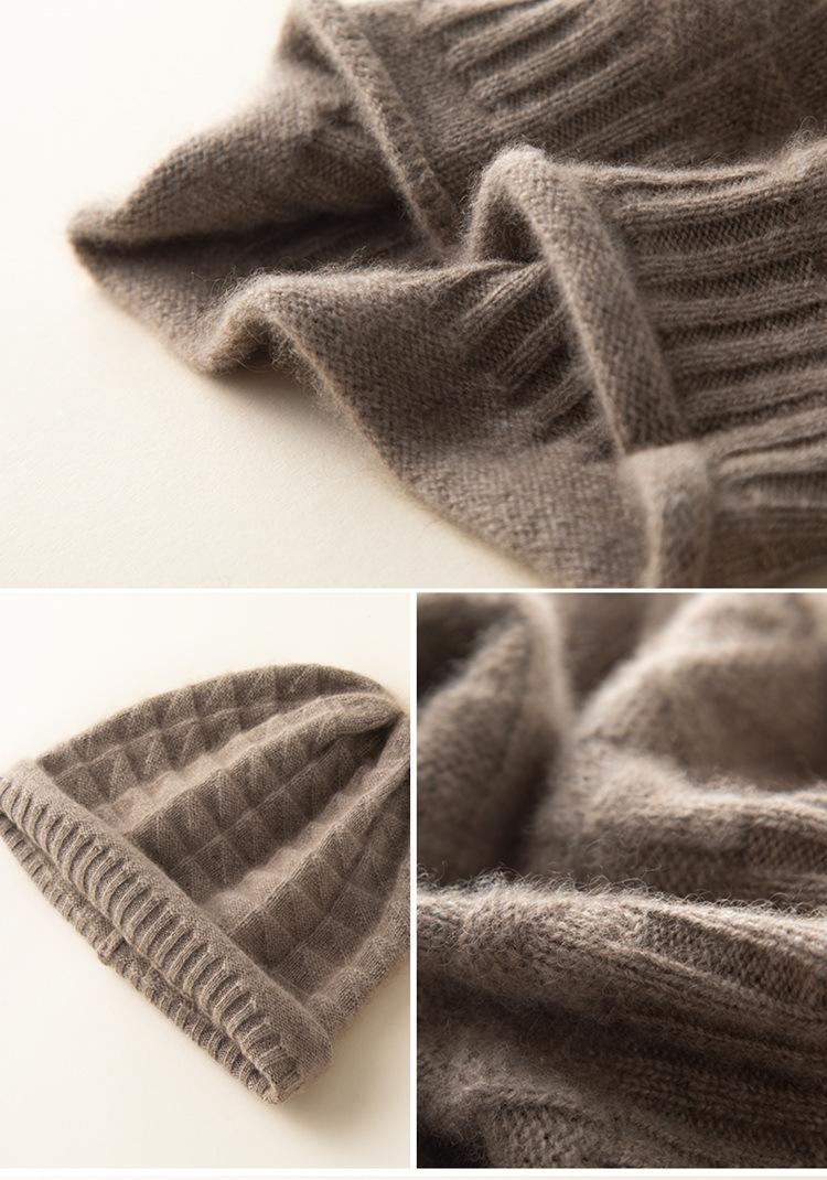 Gorro de cachemira para mujer, 100% cachemira pura, otoño e invierno, nuevo gorro de punto cálido con cuello y orejeras.
