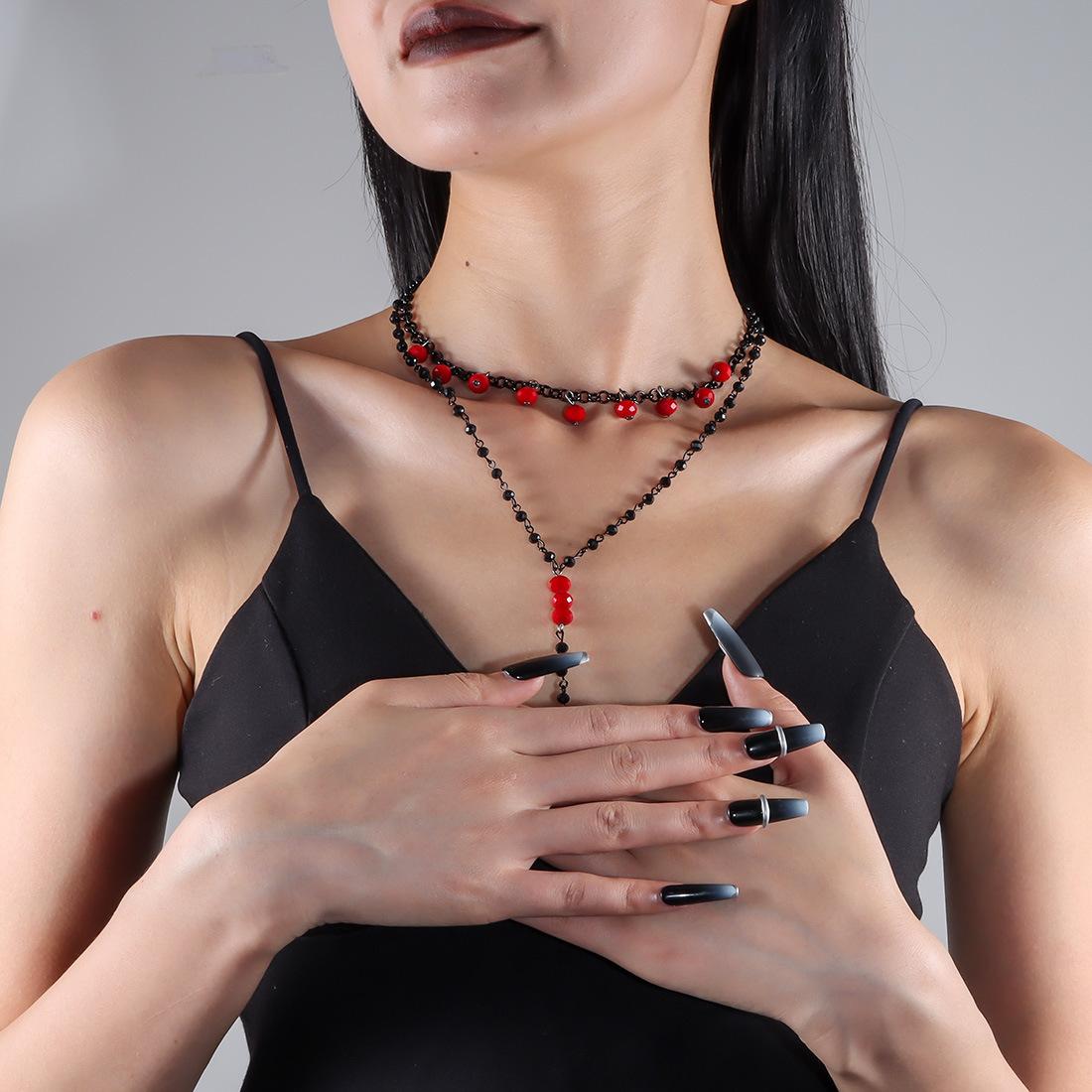 Collar de cuentas de doble capa con colgante de borla gótica retro, joyería transfronteriza europea y americana NK24780