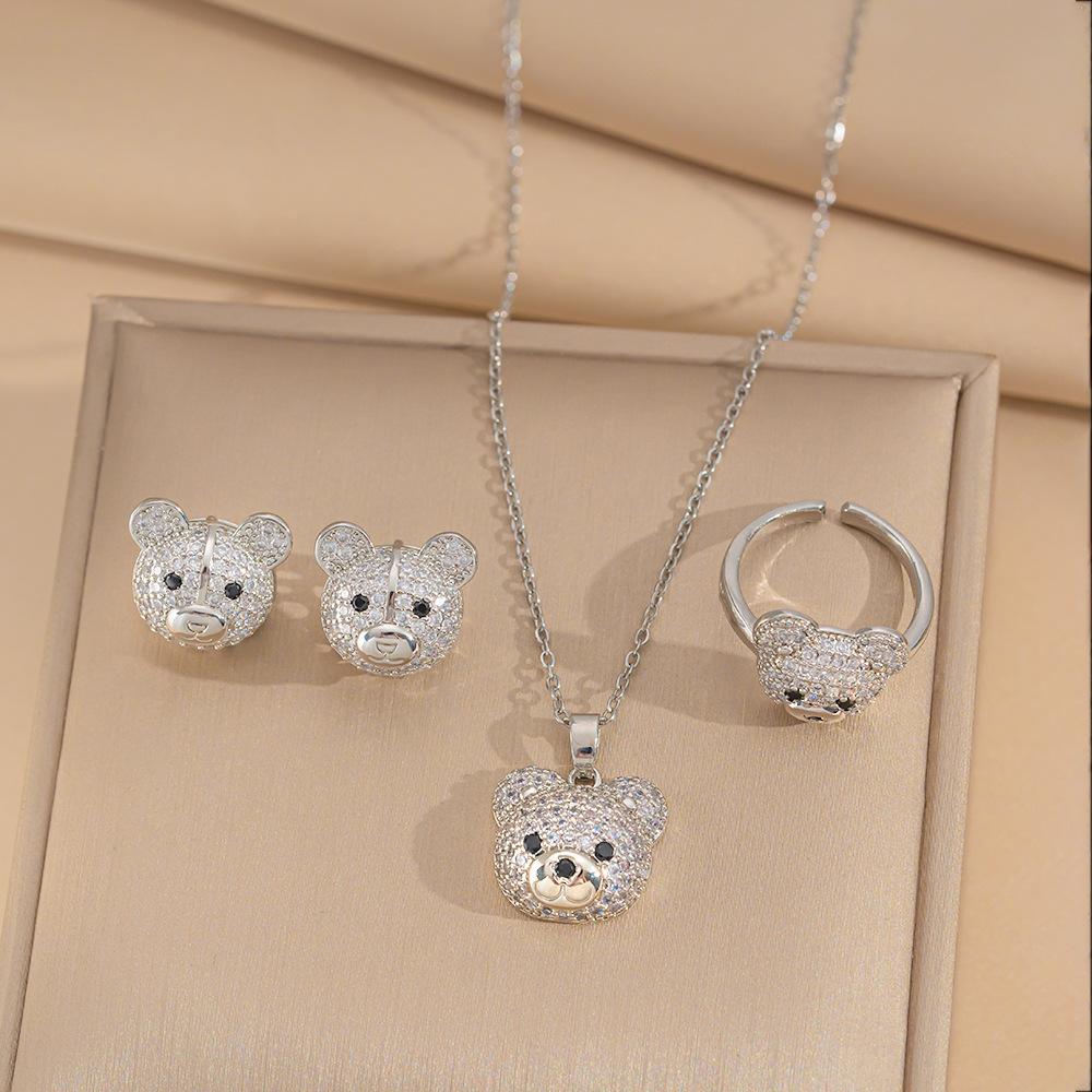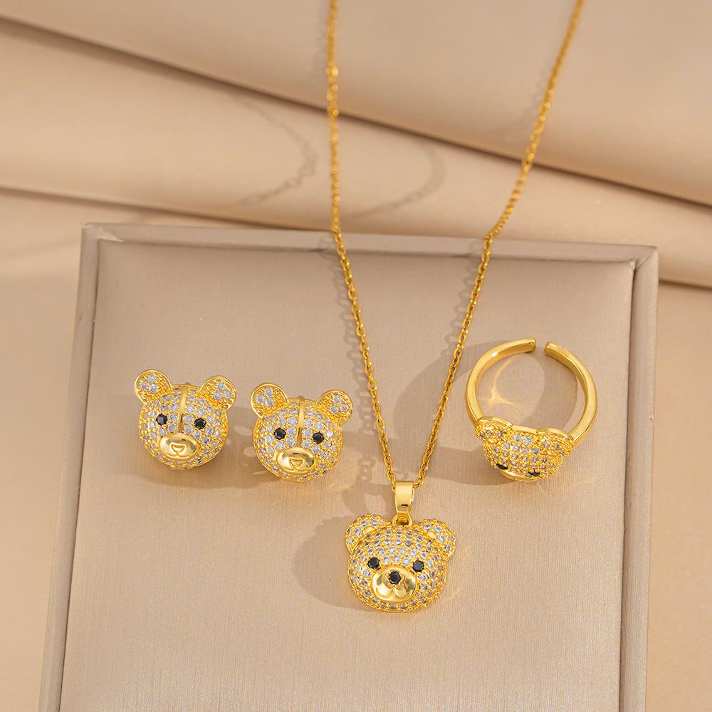 395 golden bear-necklace, 395 golden bear-earrings, 395 golden bear-ring, 395 golden bear-set, 395 steel color...
