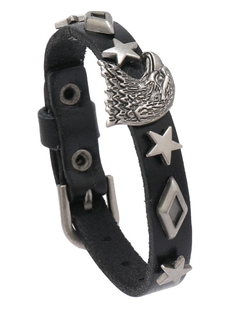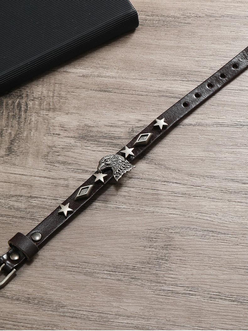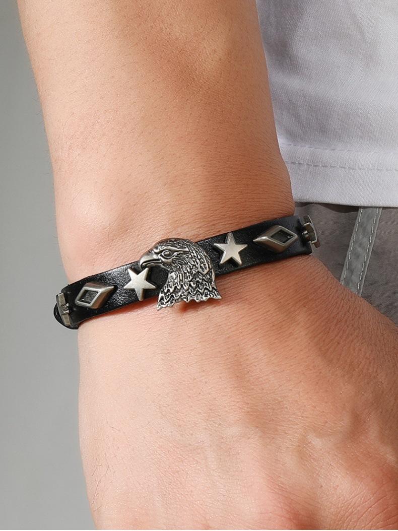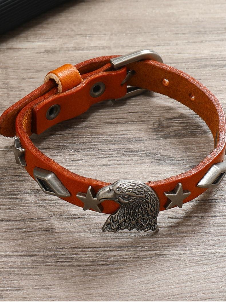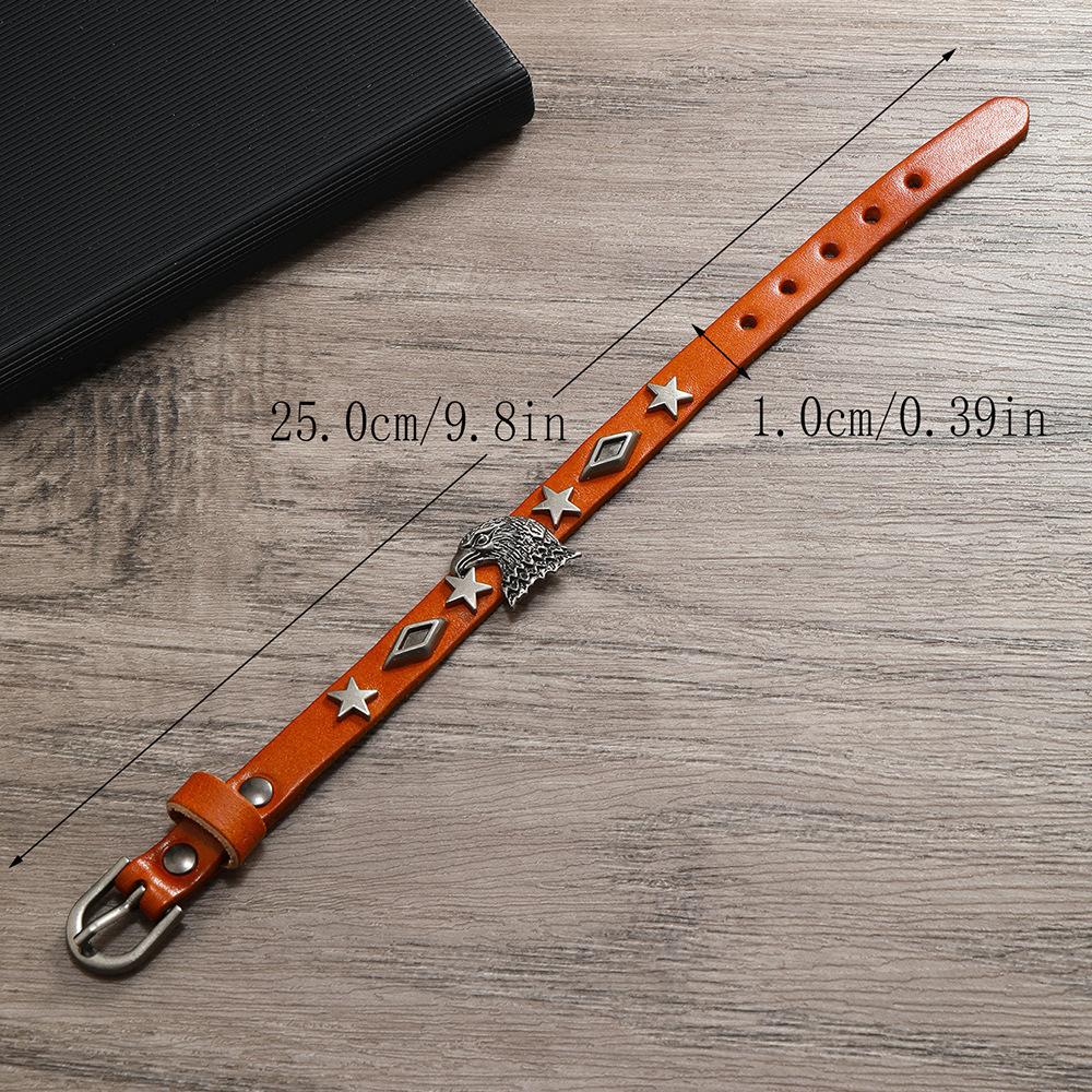 Pulsera de cuero con remaches geométricos de estrella de alta venta europea y americana, pulsera de cuero con cabeza de águila de aleación vintage, pulsera punk callejera