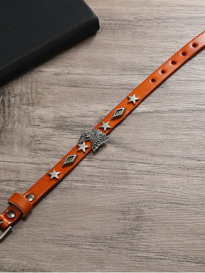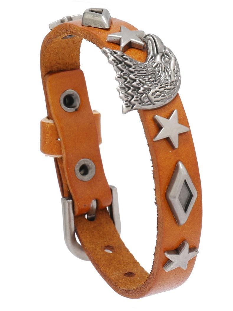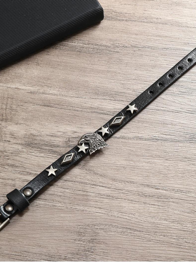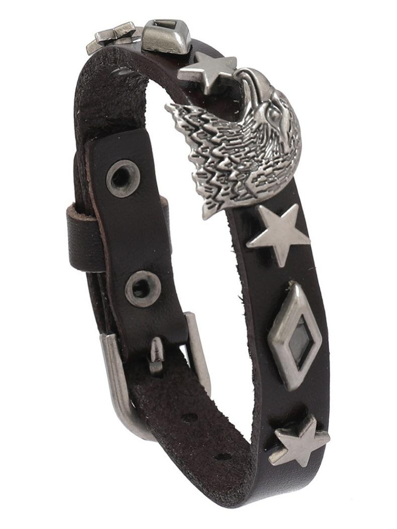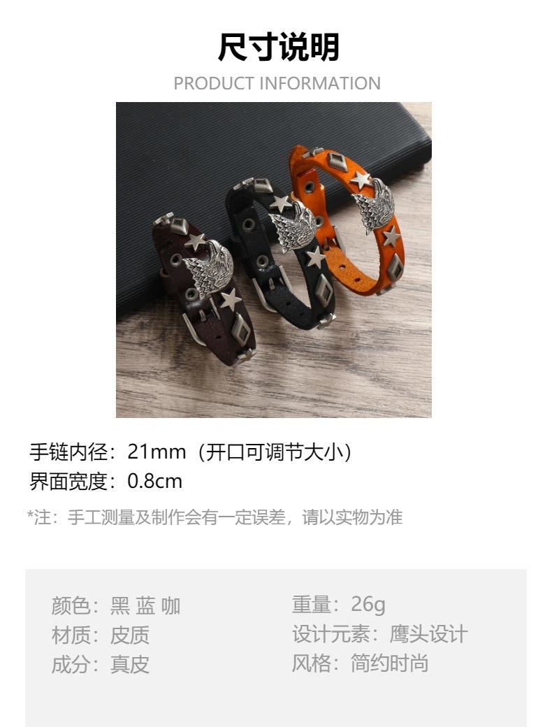 Pulsera de cuero con remaches geométricos de estrella de alta venta europea y americana, pulsera de cuero con cabeza de águila de aleación vintage, pulsera punk callejera