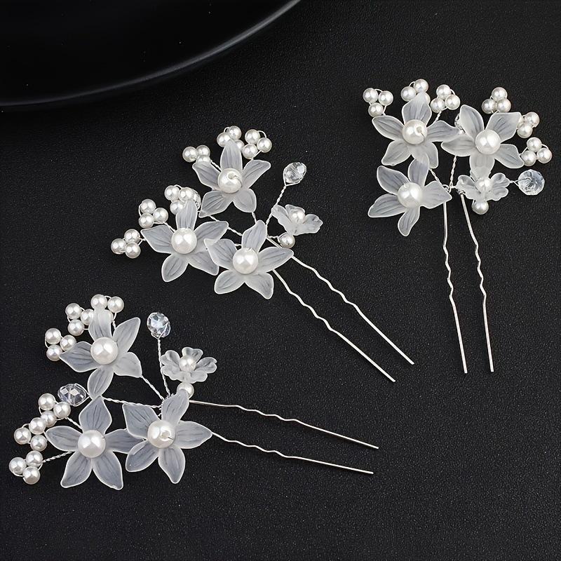 Horquilla para el pelo sencilla para vestido de novia, adorno de flores para el pelo con cuentas hecho a mano, horquilla en forma de U, accesorios para el cabello