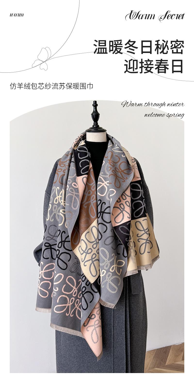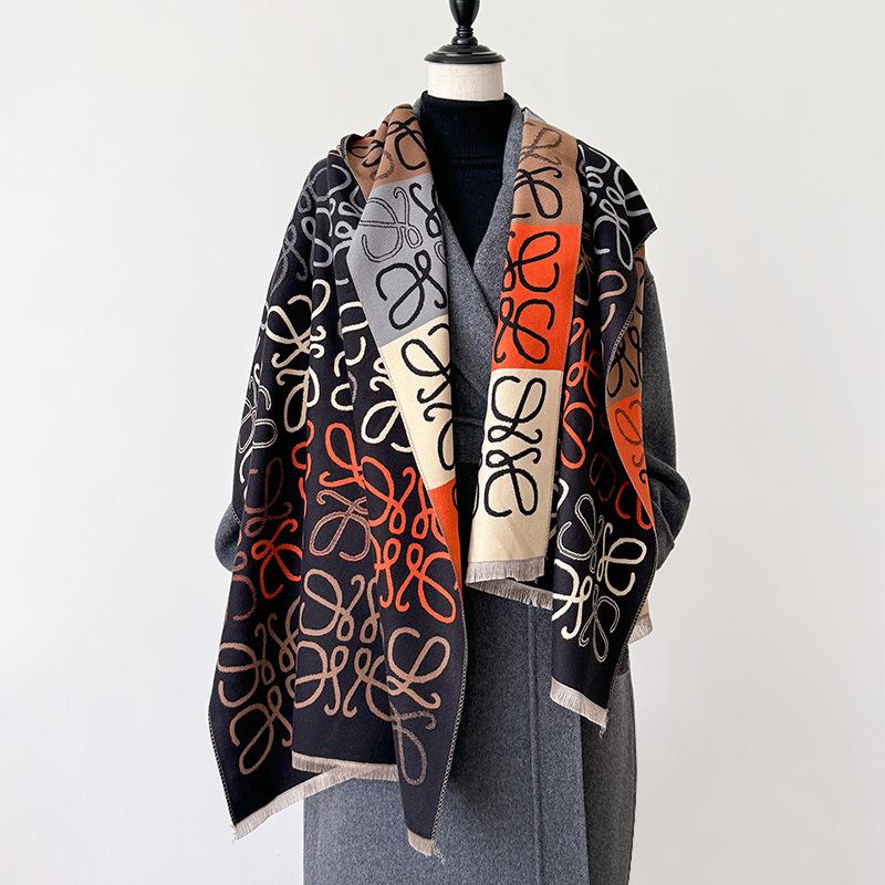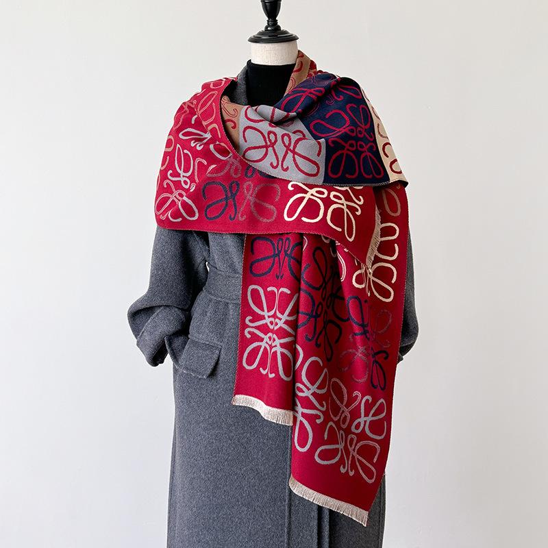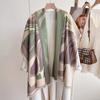 Bufanda de cachemira con estampado de líneas de otoño e invierno de estilo coreano para mujer, cálida bufanda de cachemira a cuadros de colores a juego, chal de aire acondicionado de jacquard de doble cara