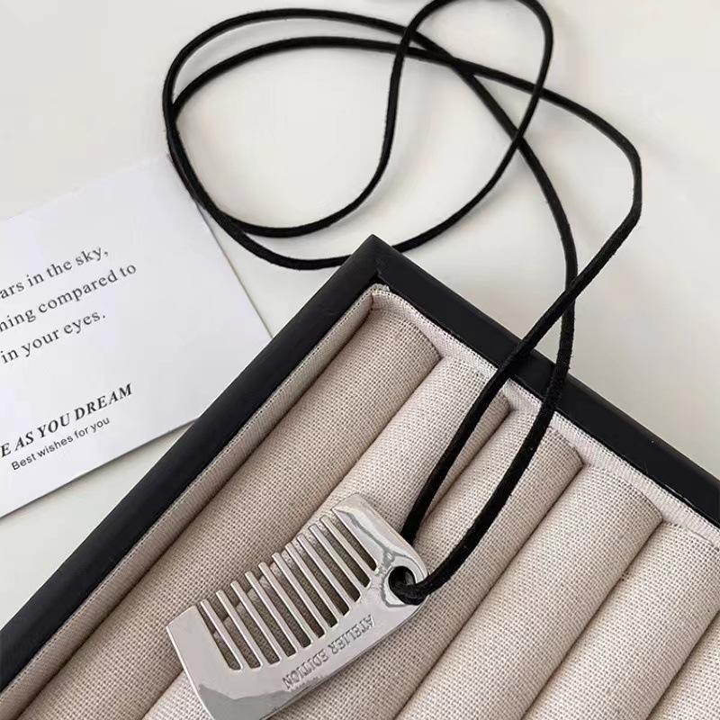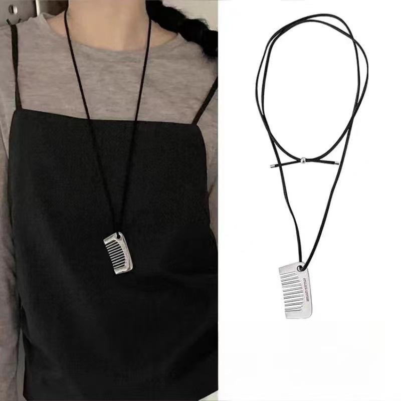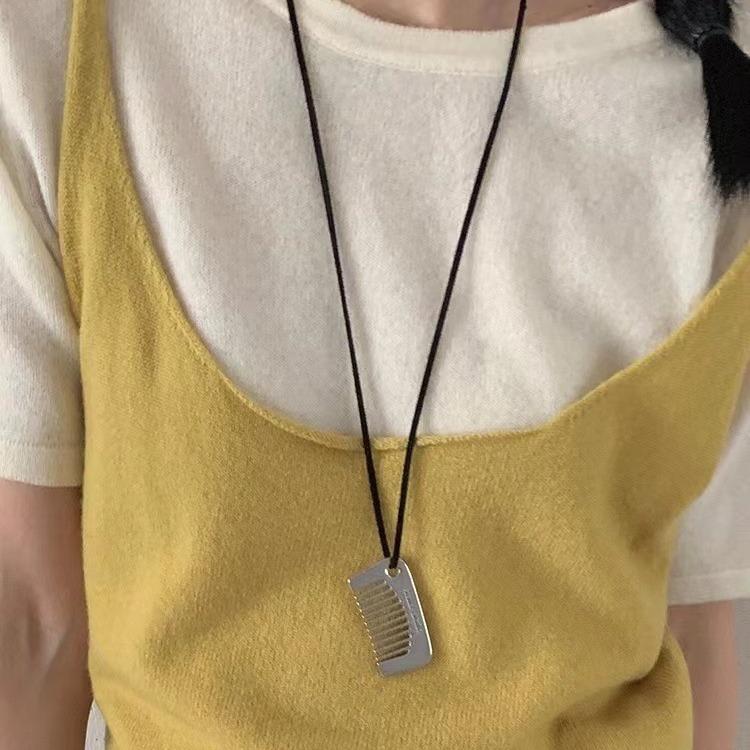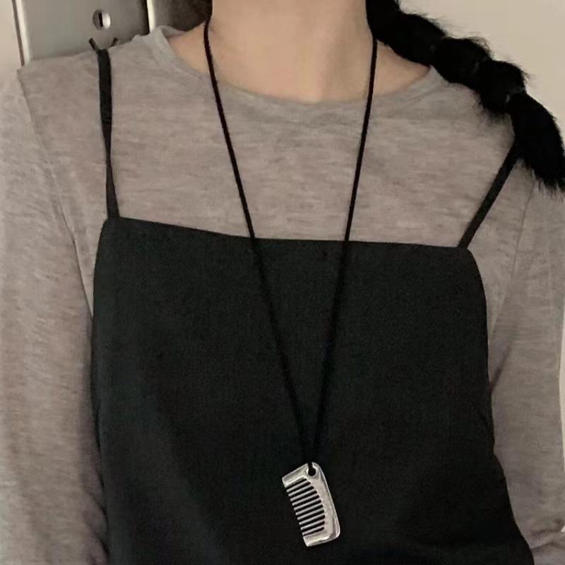 Collar de Peine Pequeño Vintage Colgante Largo Diseño Nicho para Mujer Collar plateado 2024 Nuevo Cadena para Suéter Suéter