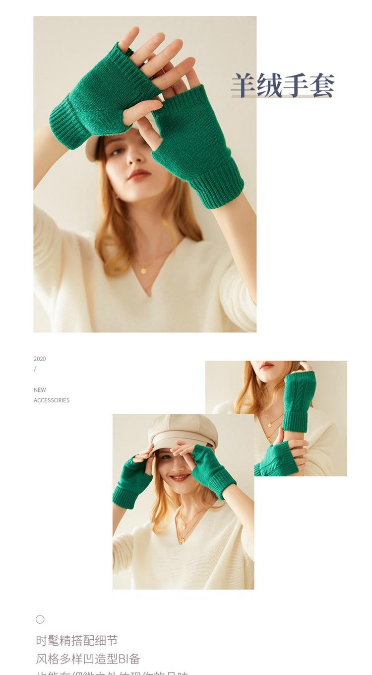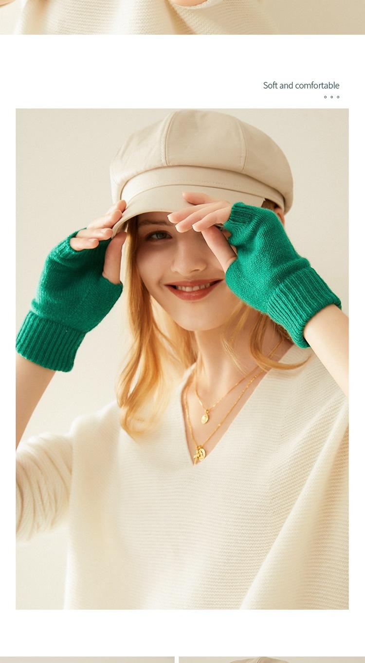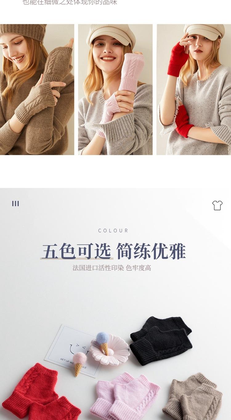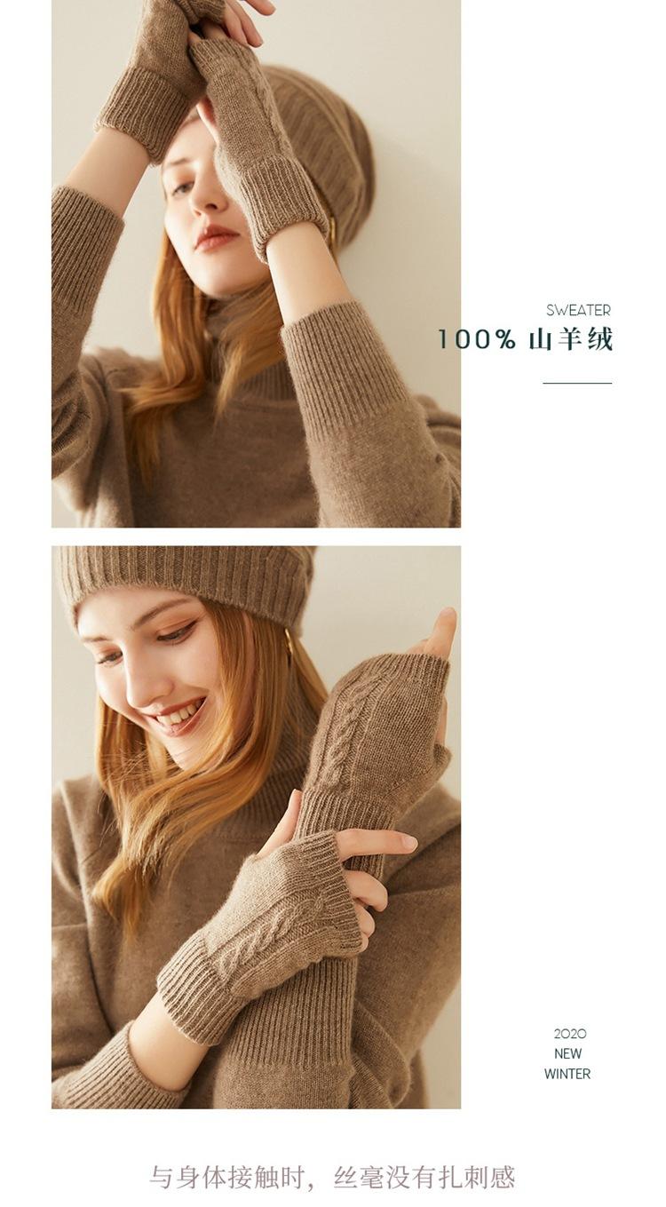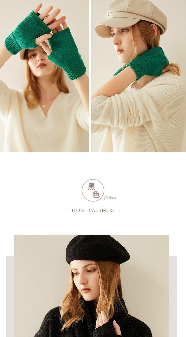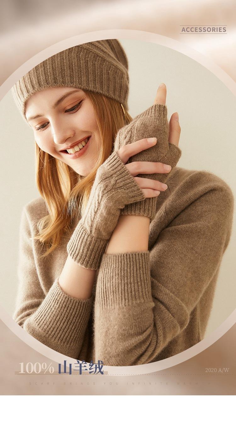 Guantes de cachemira para mujer, 100% cachemira pura, otoño e invierno, nuevos guantes cálidos de medio dedo con tejido trenzado que faltan.