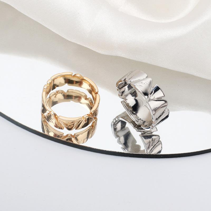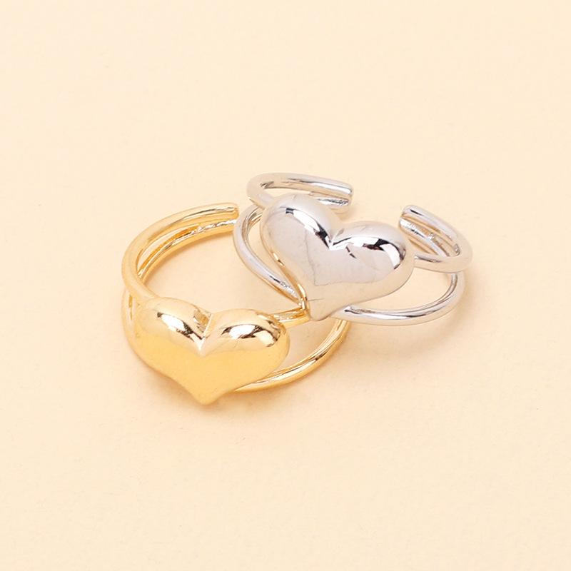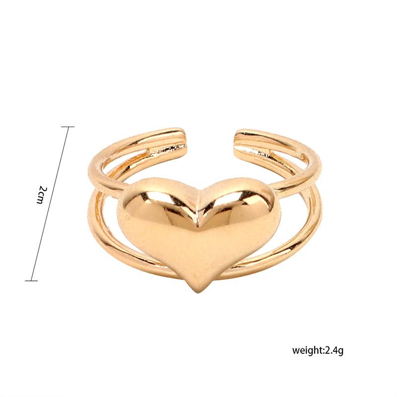 Anillo de amor abierto con diseño de red de viento frío rojo del mismo estilo, anillo de metal simple retro en forma de corazón para mujer, anillo de unión