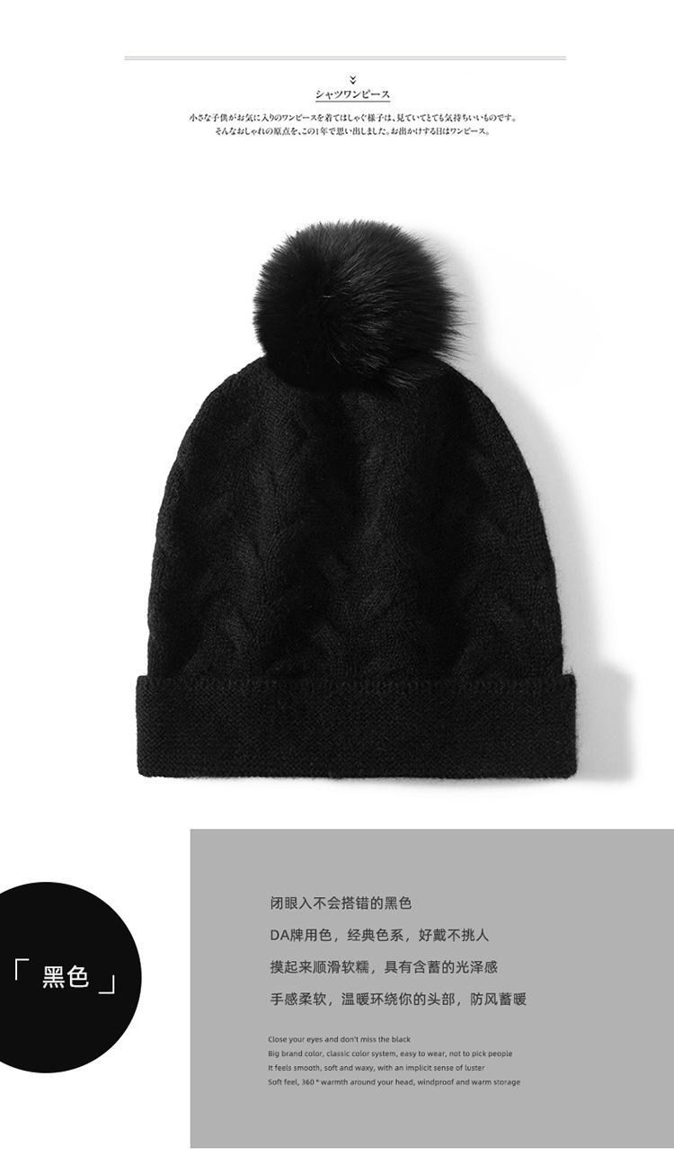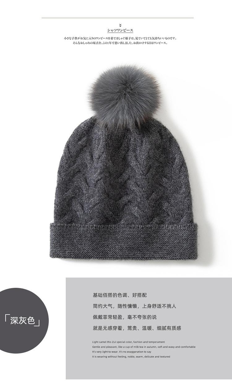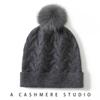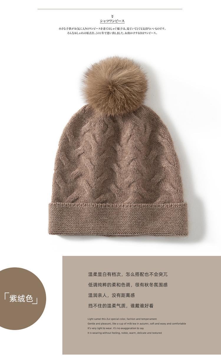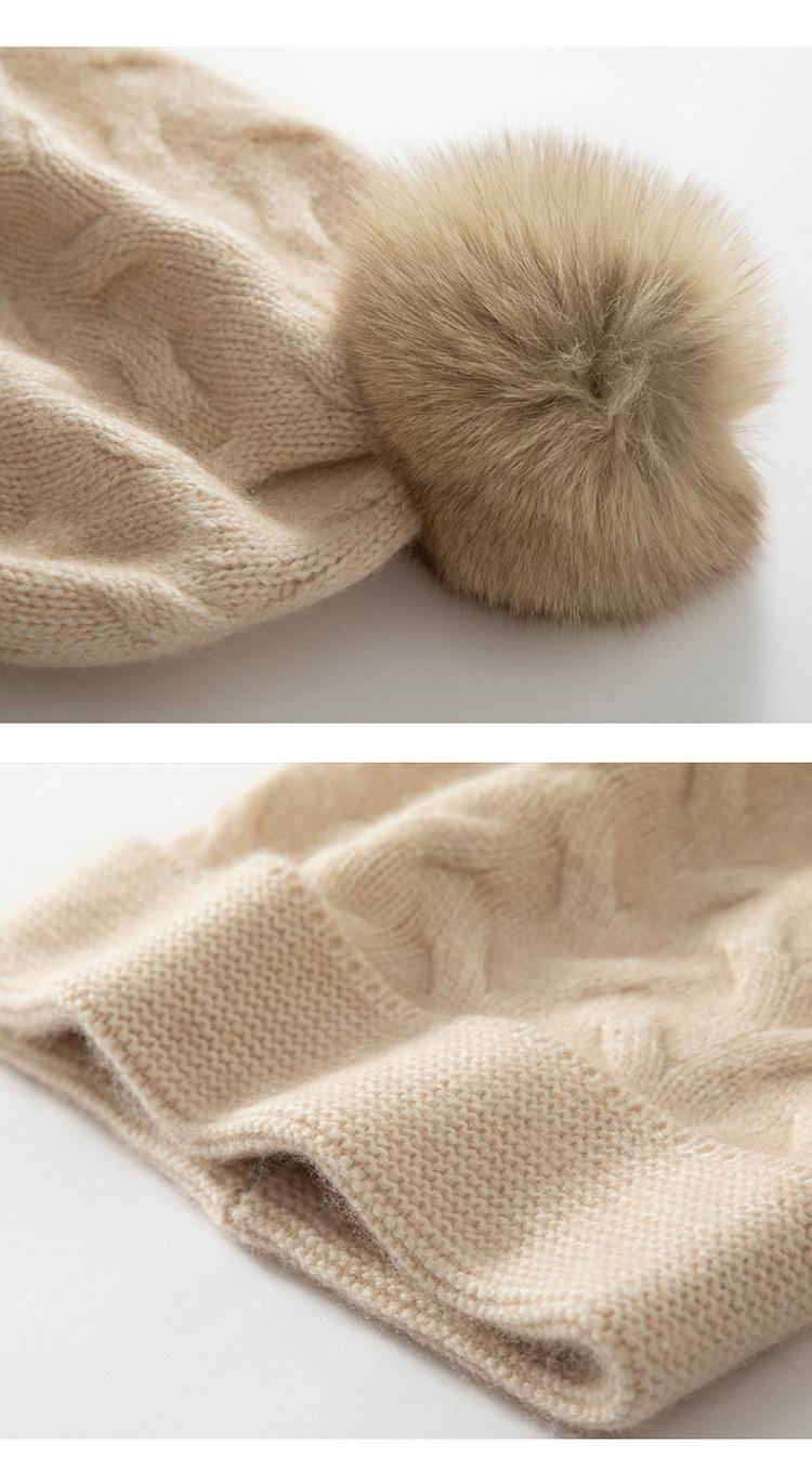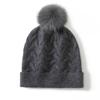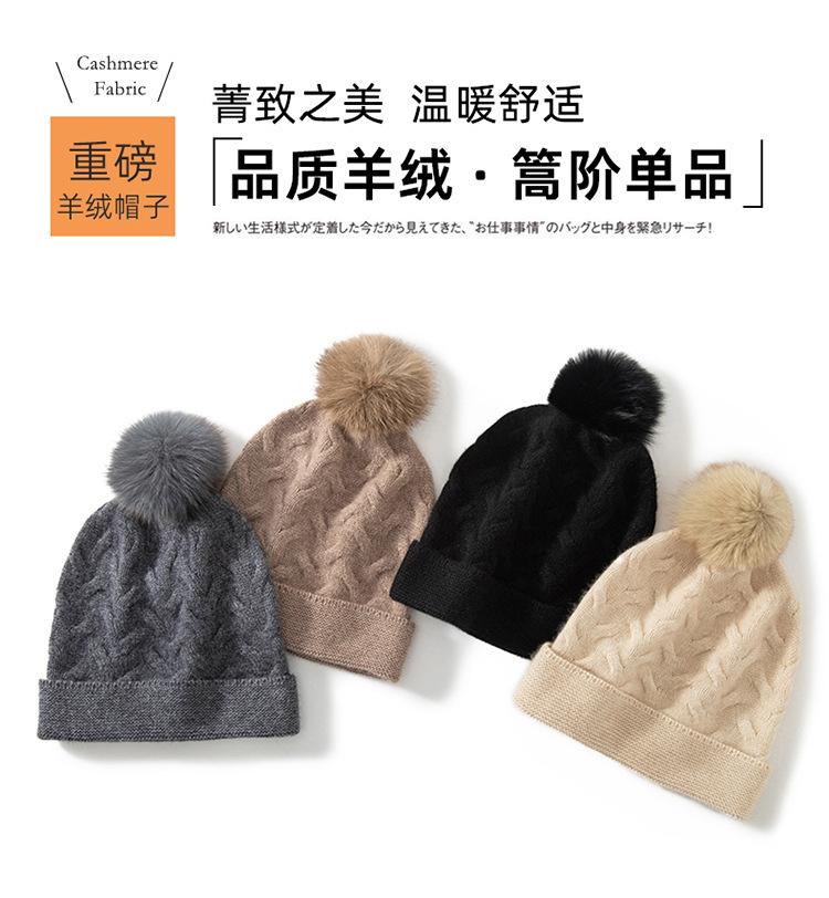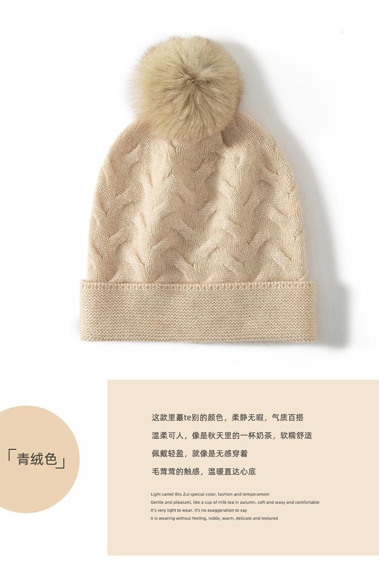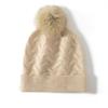 Gorro de bola de pelo tejido de cachemira para otoño e invierno, grueso, de color sólido, con bolsa de lana de cachemira, gorro para la cabeza, informal, cálido, de moda pura