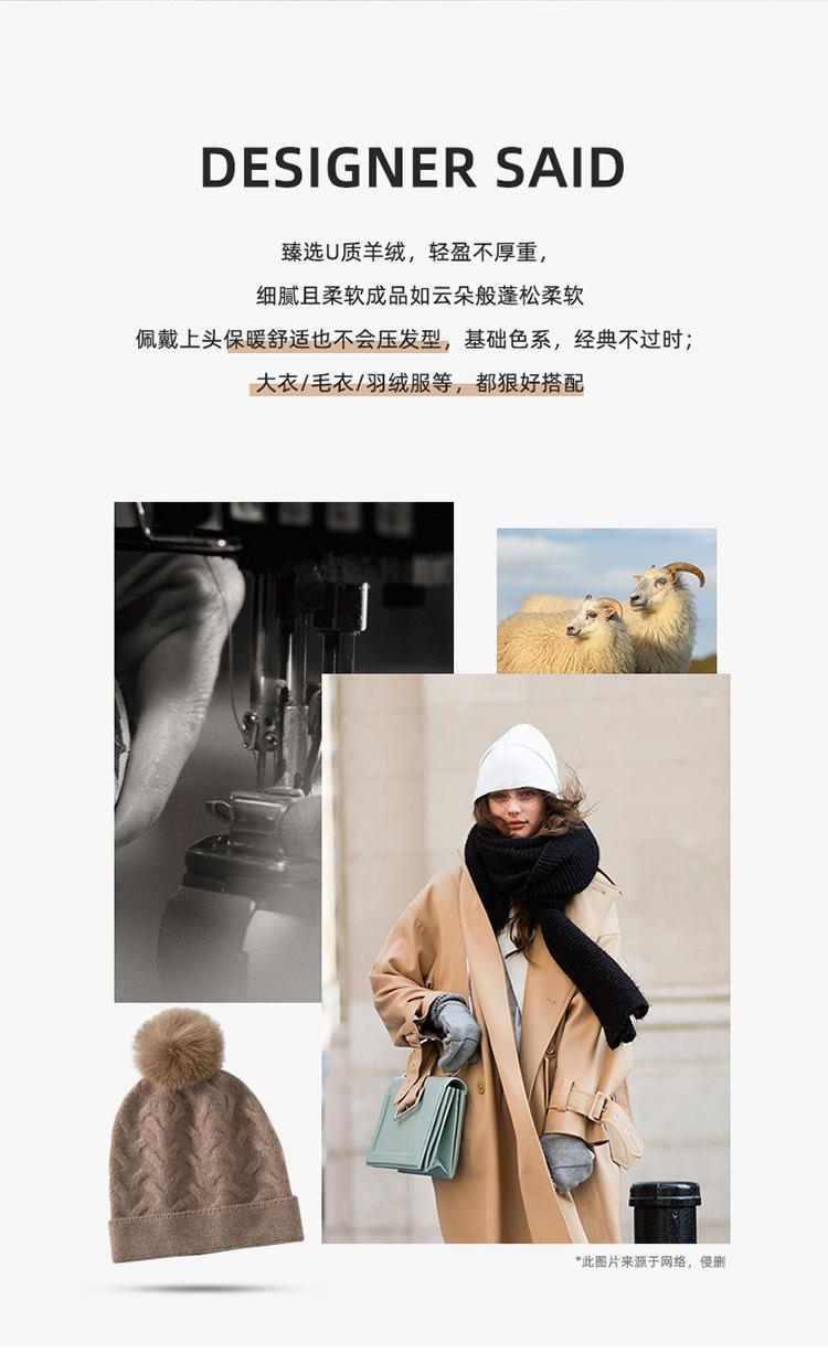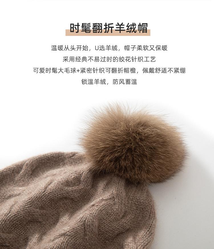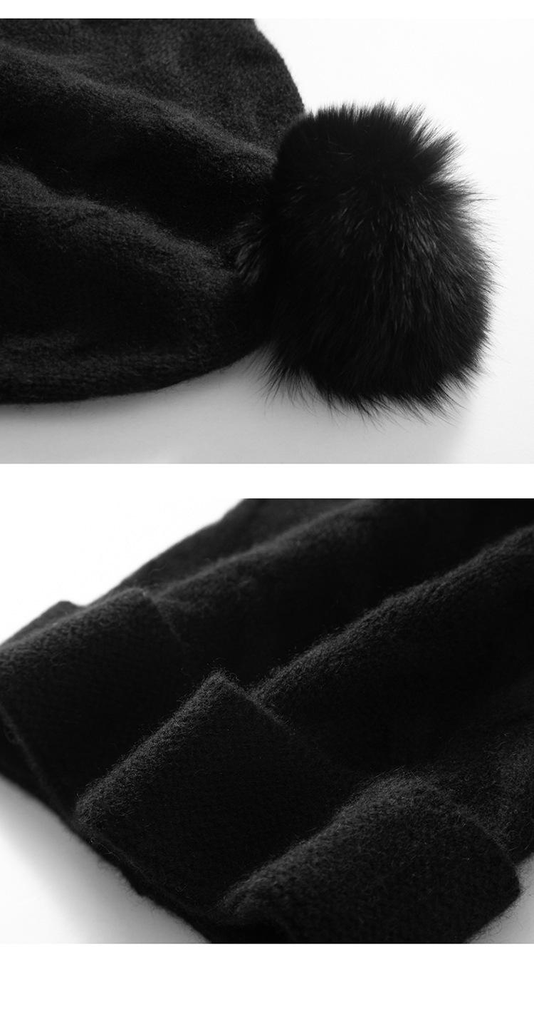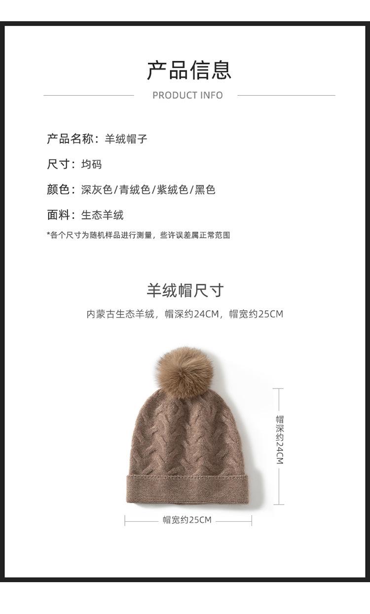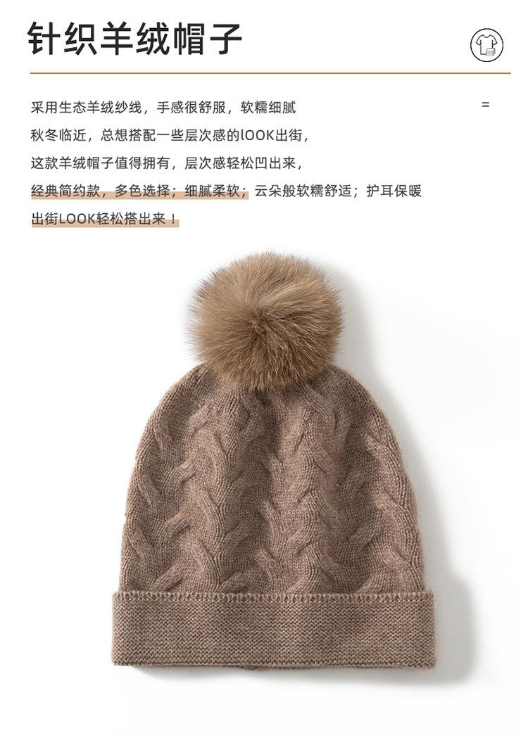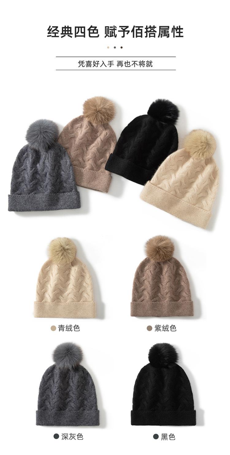Gorro de bola de pelo tejido de cachemira para otoño e invierno, grueso, de color sólido, con bolsa de lana de cachemira, gorro para la cabeza, informal, cálido, de moda pura