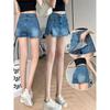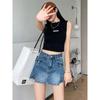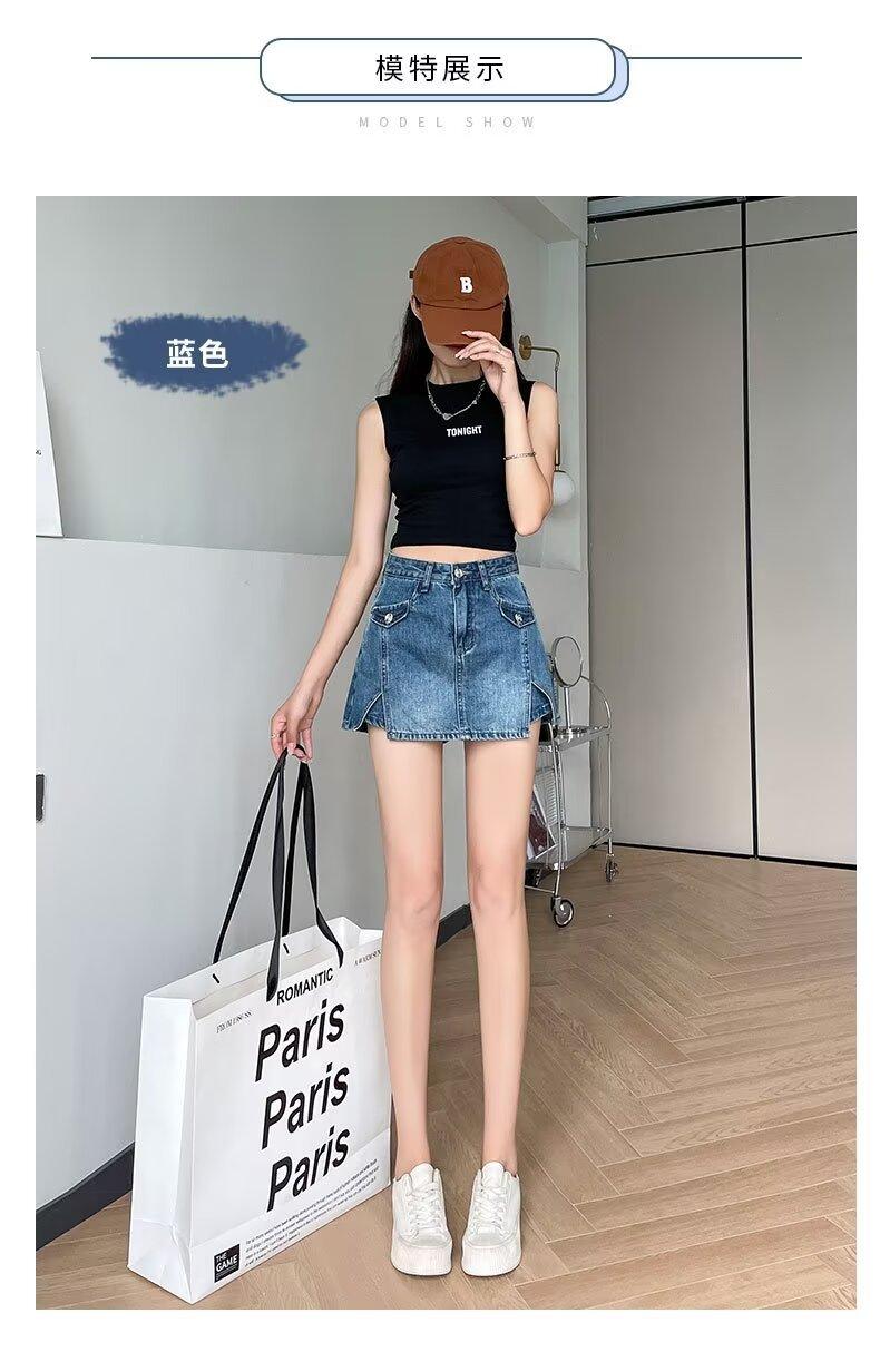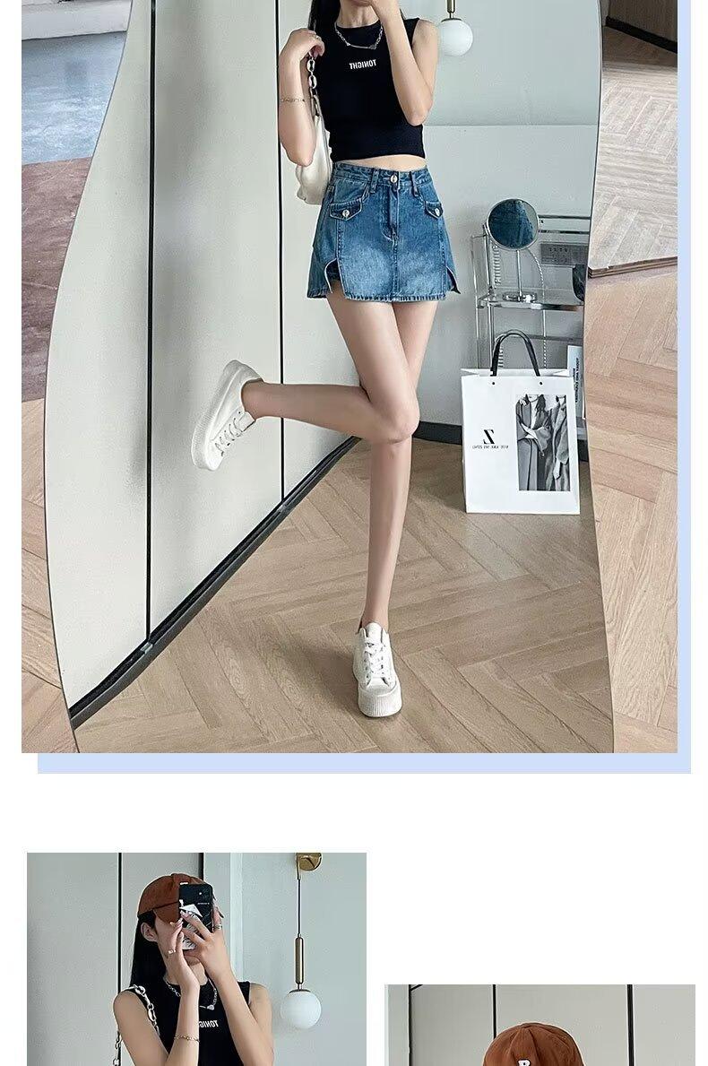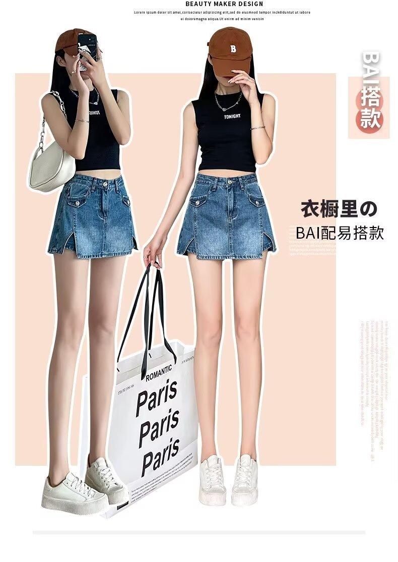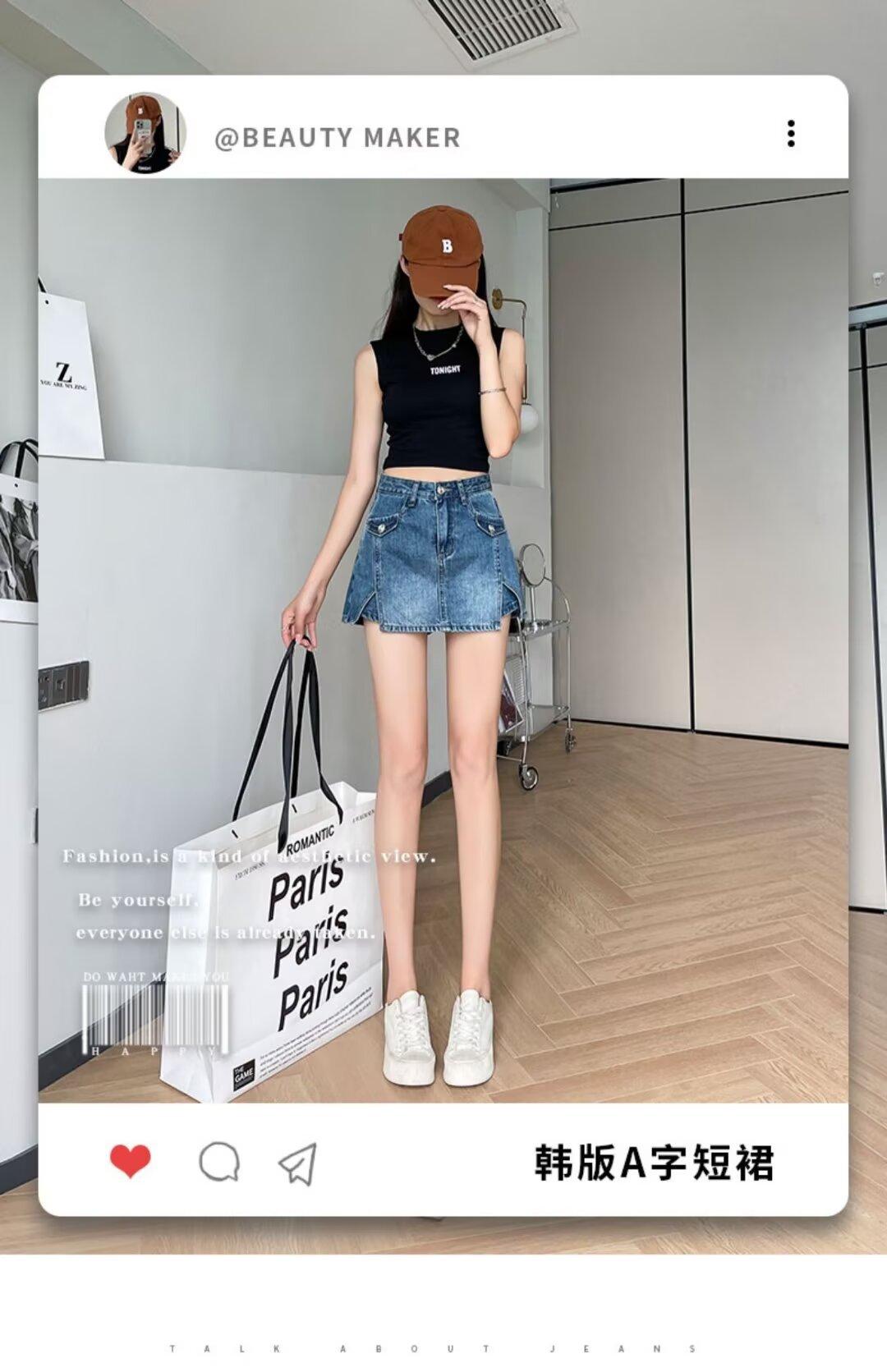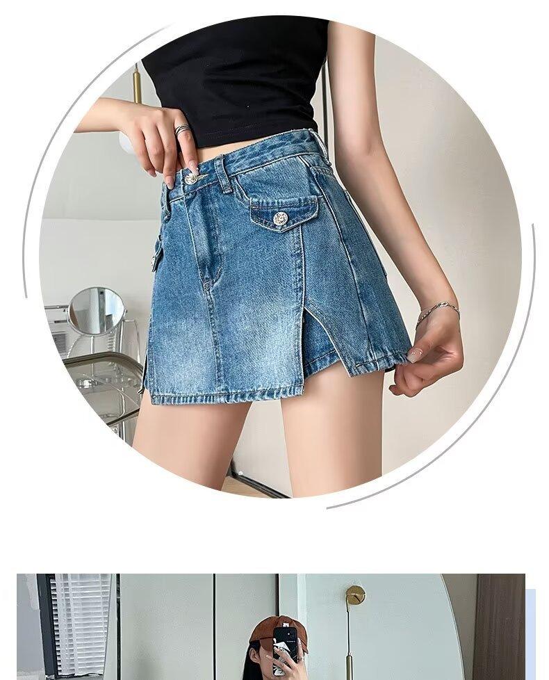 Falda corta de mezclilla para mujer verano 2024 nueva retro cintura alta delgada antiexposición línea A falda de cadera de chica hot