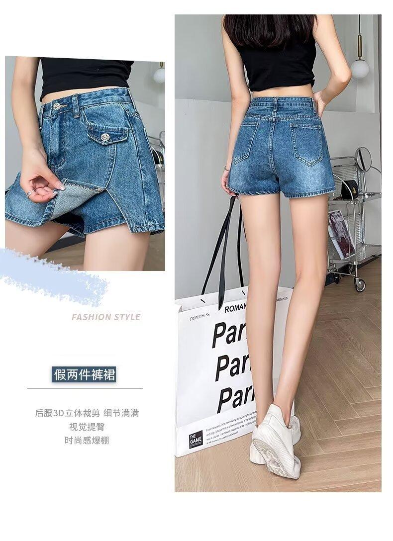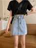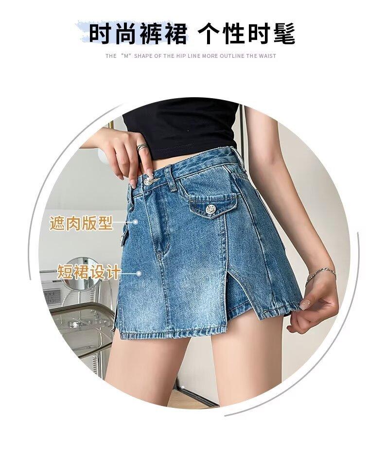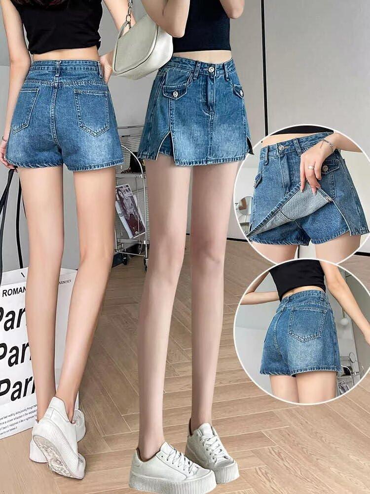 Falda corta de mezclilla para mujer, verano 2024, nueva, cintura alta, adelgazante, pequeña, línea A, falda de cadera, falda de media longitud, hakama