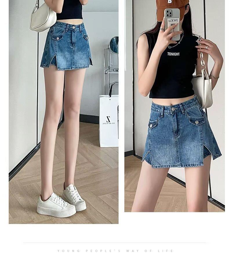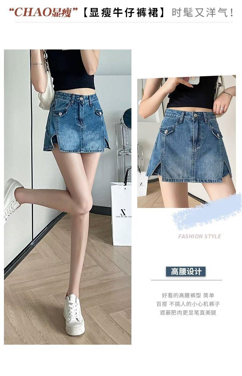 Falda vaquera con abertura para mujer, novedad de verano 2024, cintura alta, entrepierna cubierta, talla grande mm, falda de línea A de longitud media para chica sexy