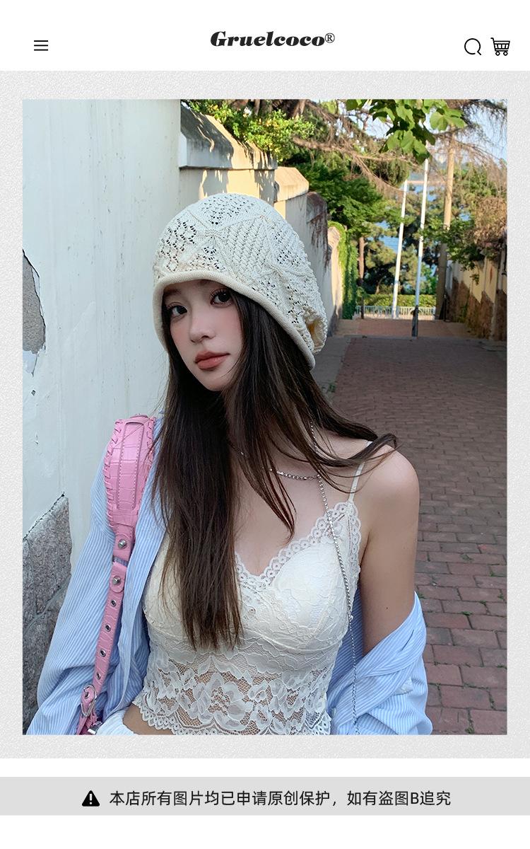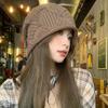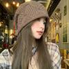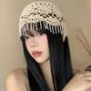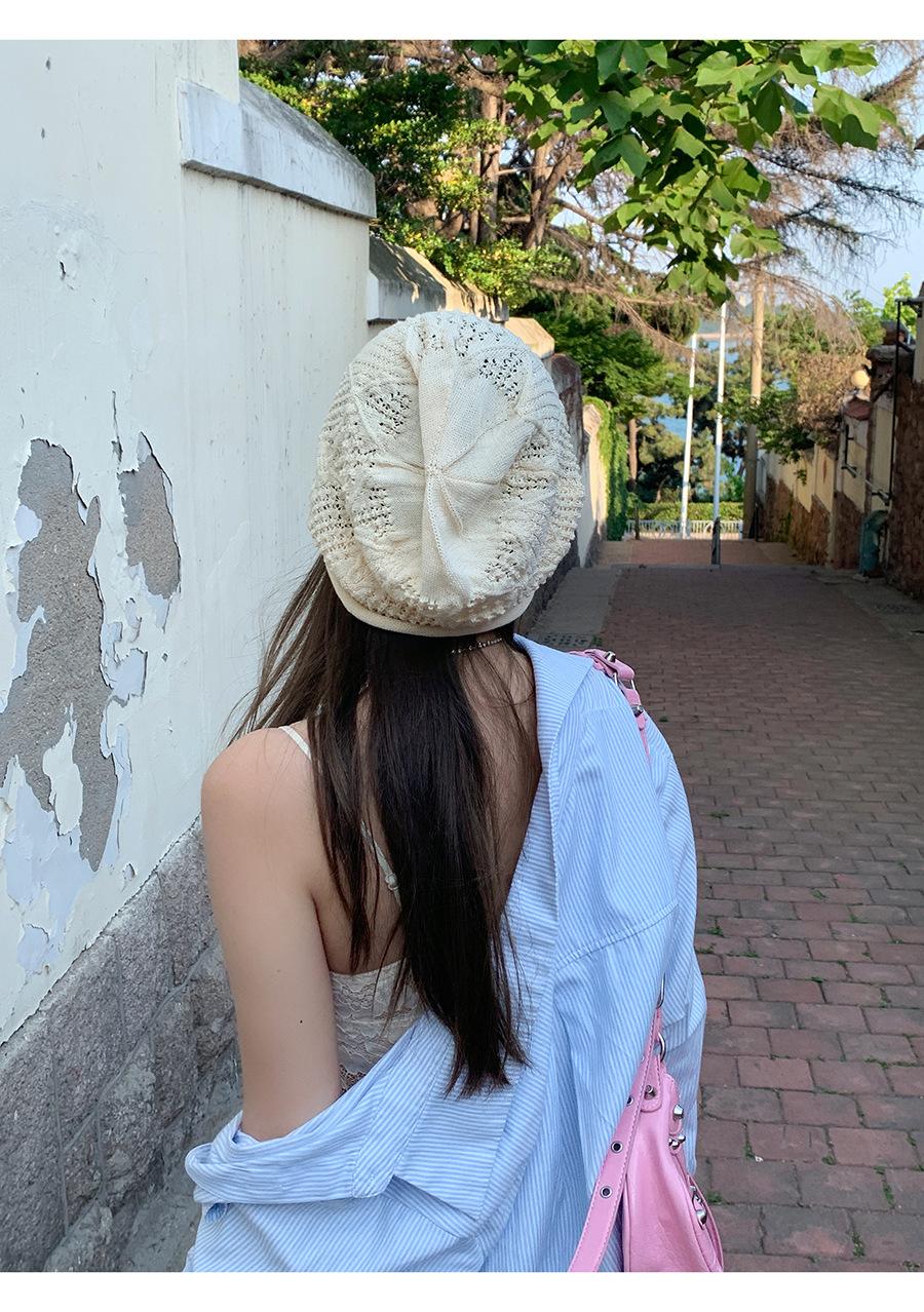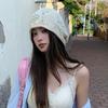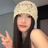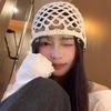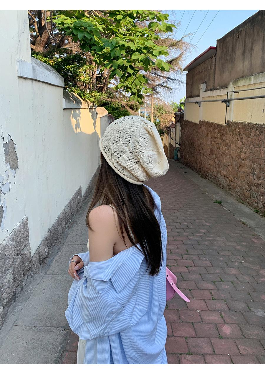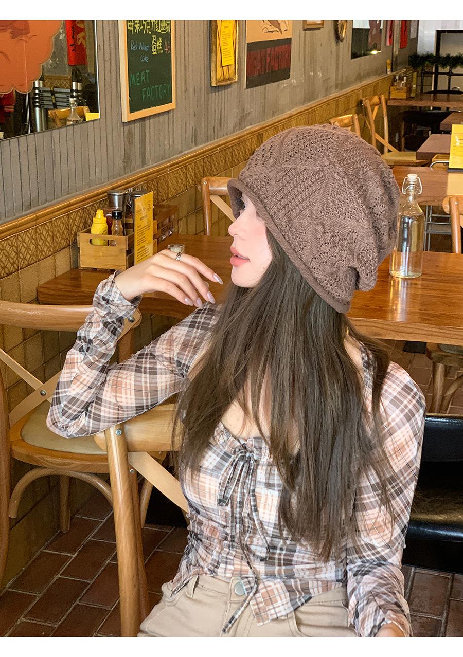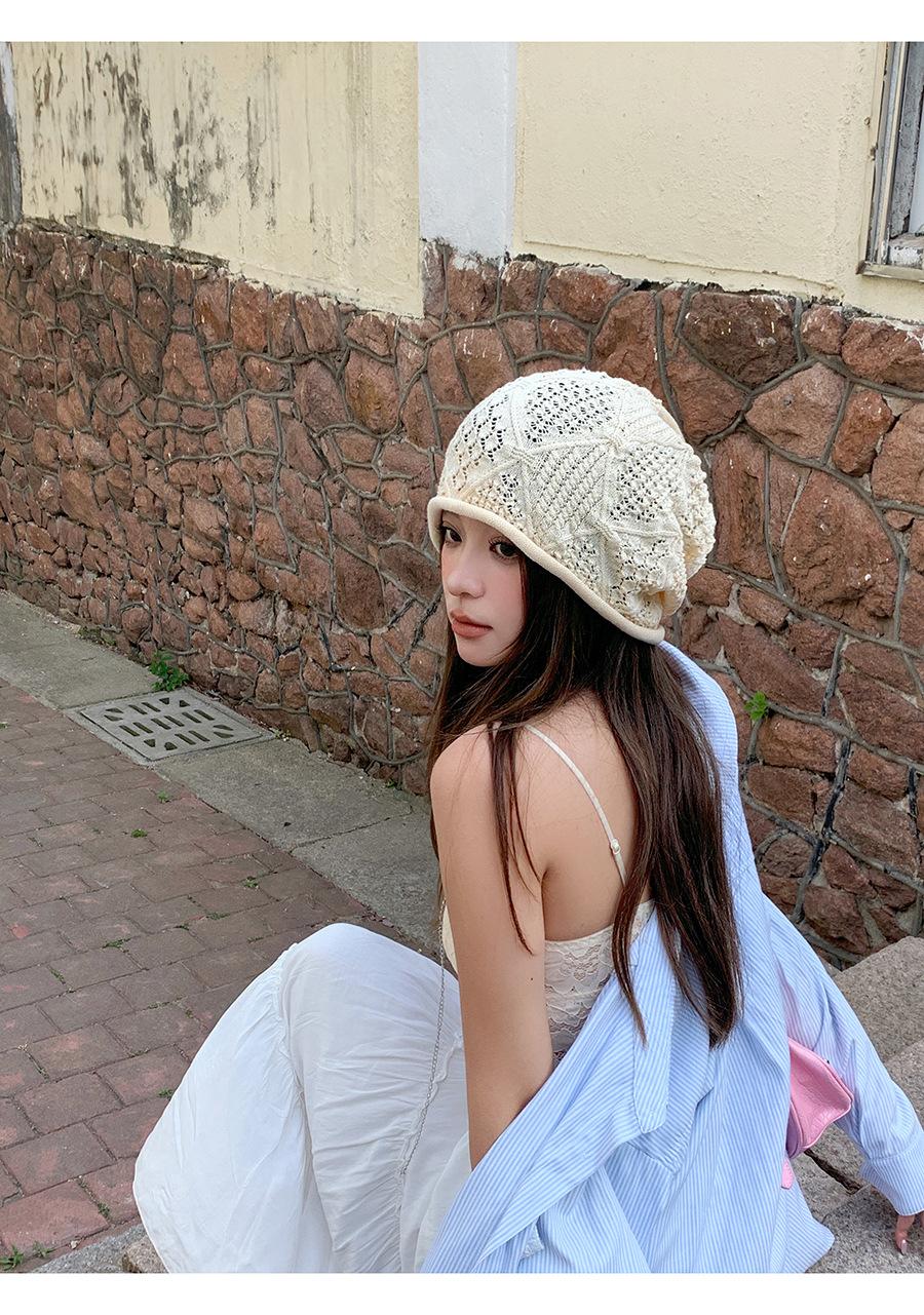 Sombrero Holgado de Crochet Hecho a Mano Japonés para Mujer Verano Fino Color Sólido Cabeza Grande que Muestra la Cara Pequeña Simple Baotou Sombrero para el Frío