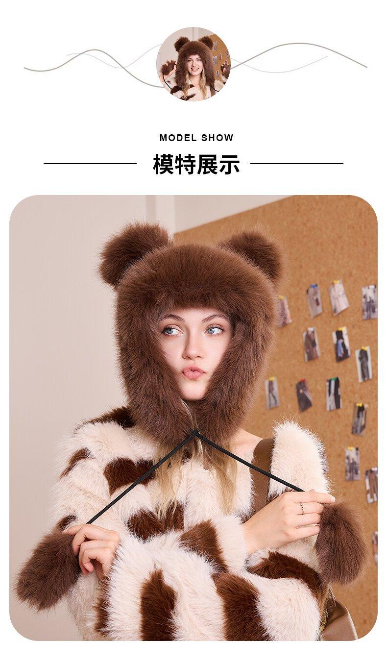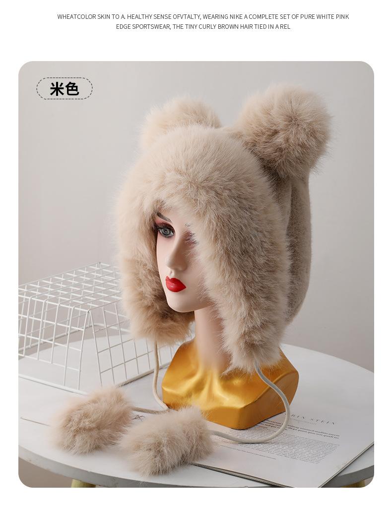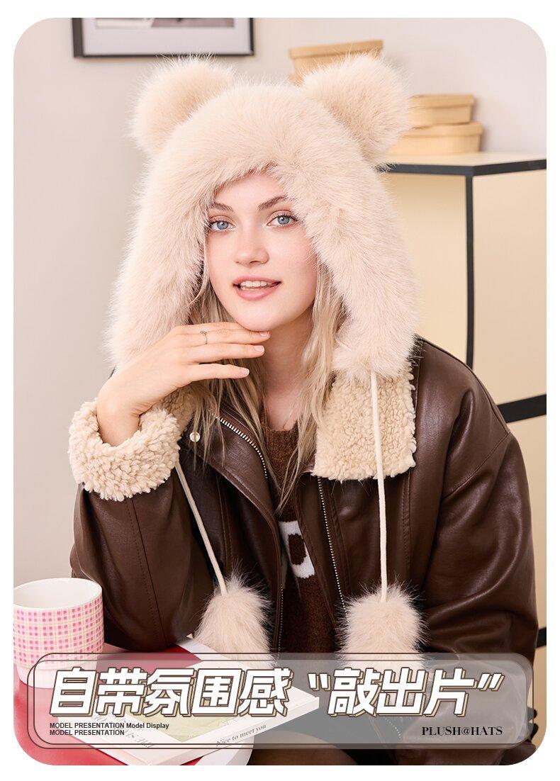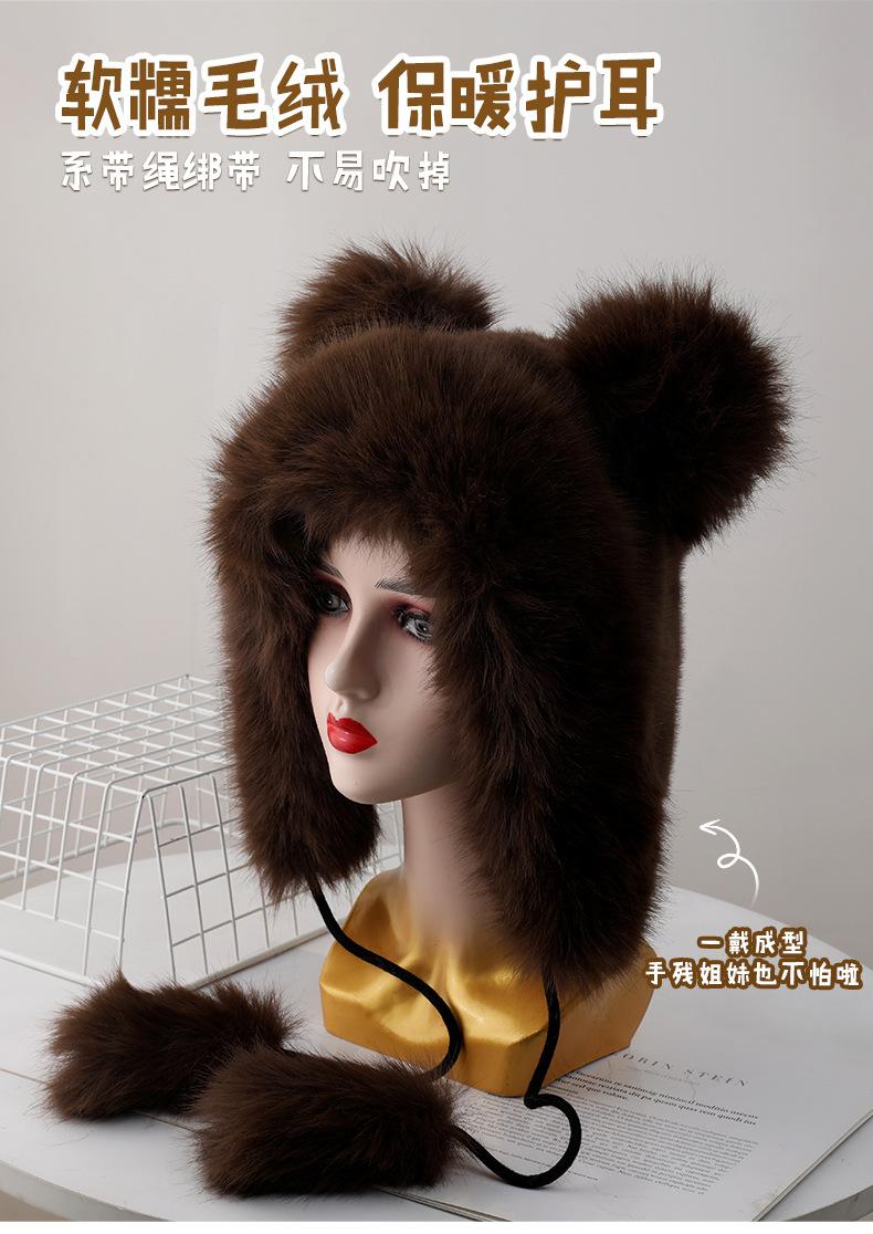 Gorro grueso de oso para otoño e invierno, gorro de peluche de zorro cálido, gorro con orejas de felpa, gorro rojo de red de nueva moda al por mayor