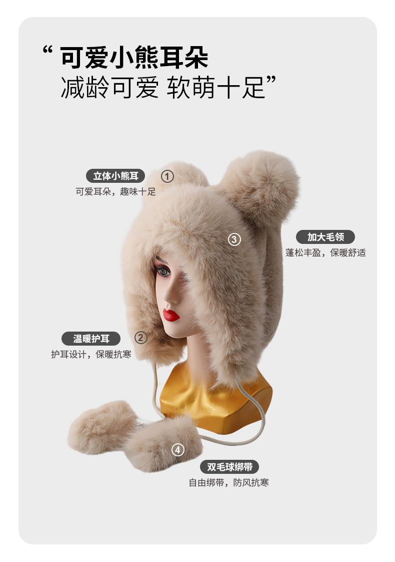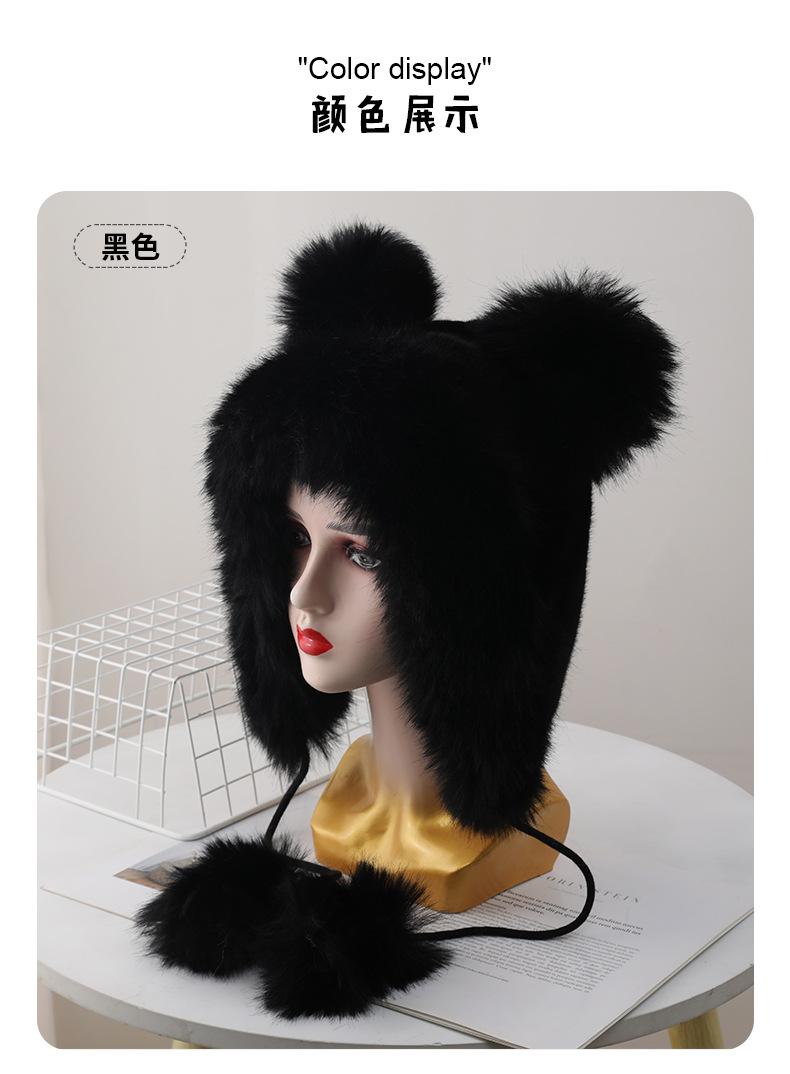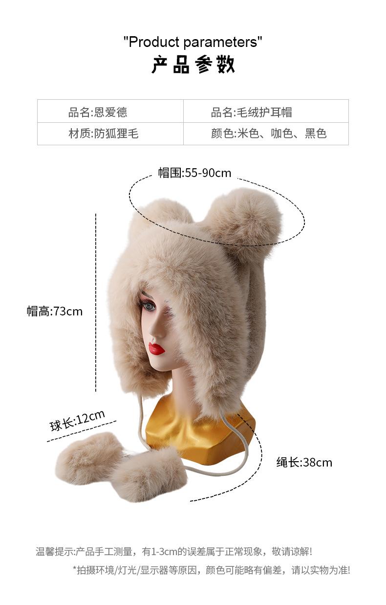 Gorro grueso de oso para otoño e invierno, gorro de peluche de zorro cálido, gorro con orejas de felpa, gorro rojo de red de nueva moda al por mayor