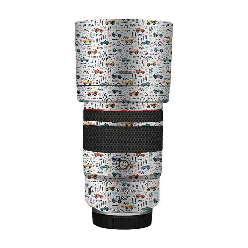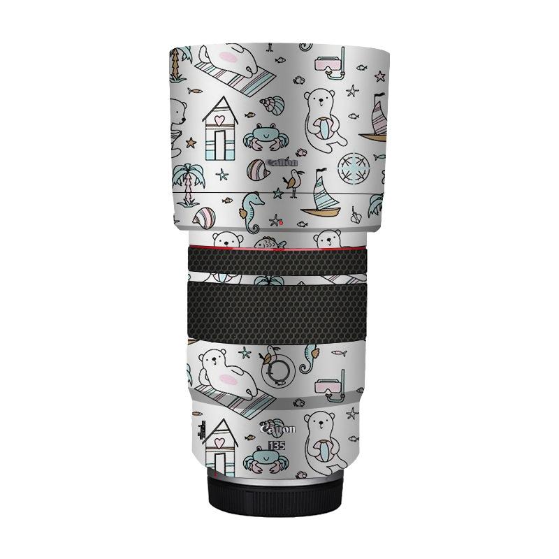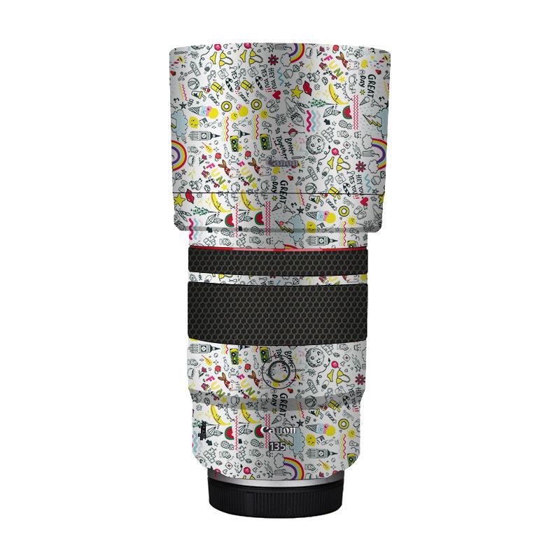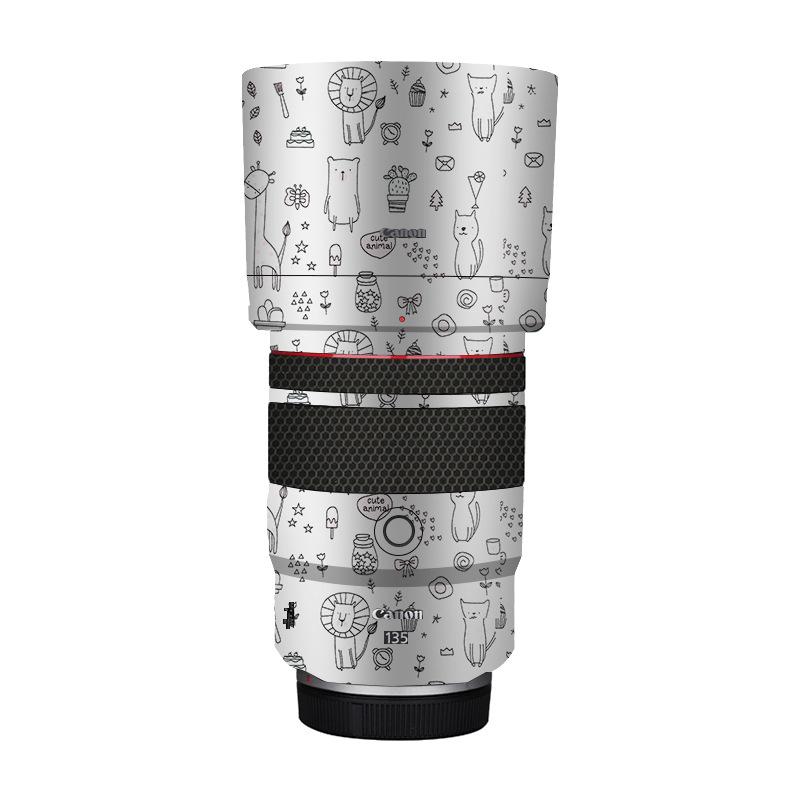 Película protectora de lente Canon RF135 F1.8 con forma de burro caminante, color transparente, adhesivo que cambia de color, papel 3M.