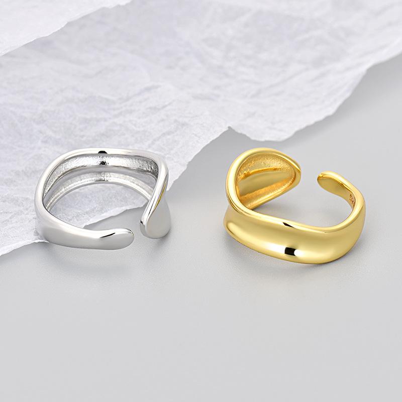 Anillo Cóncavo Curvado de Doble Capa Transfronterizo, Anillo de Banda Ancha Irregular, Popular en el Comercio Exterior, Anillo Ajustable Simple y Único, Diseño Geométrico