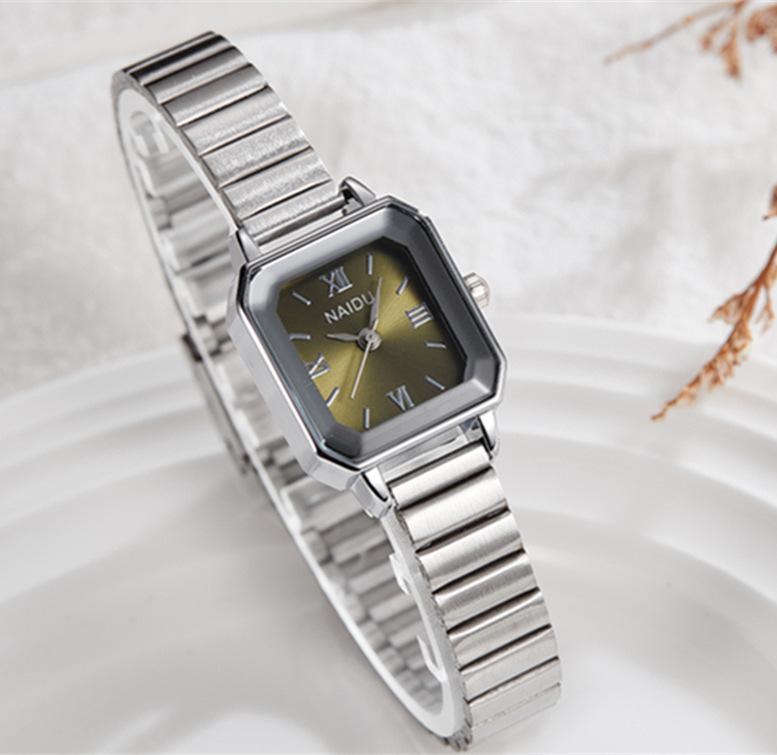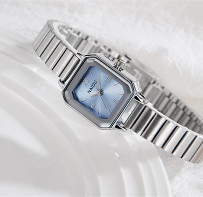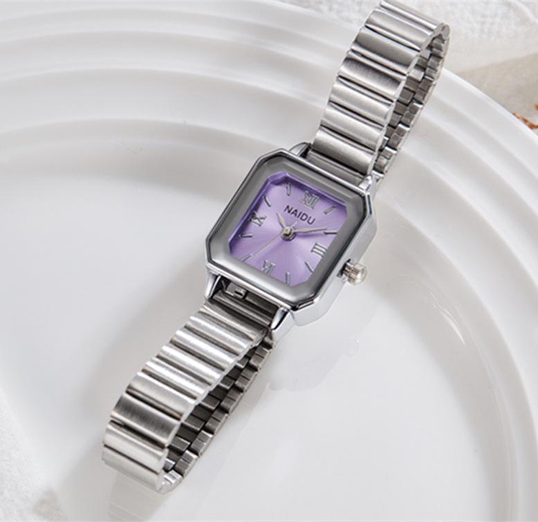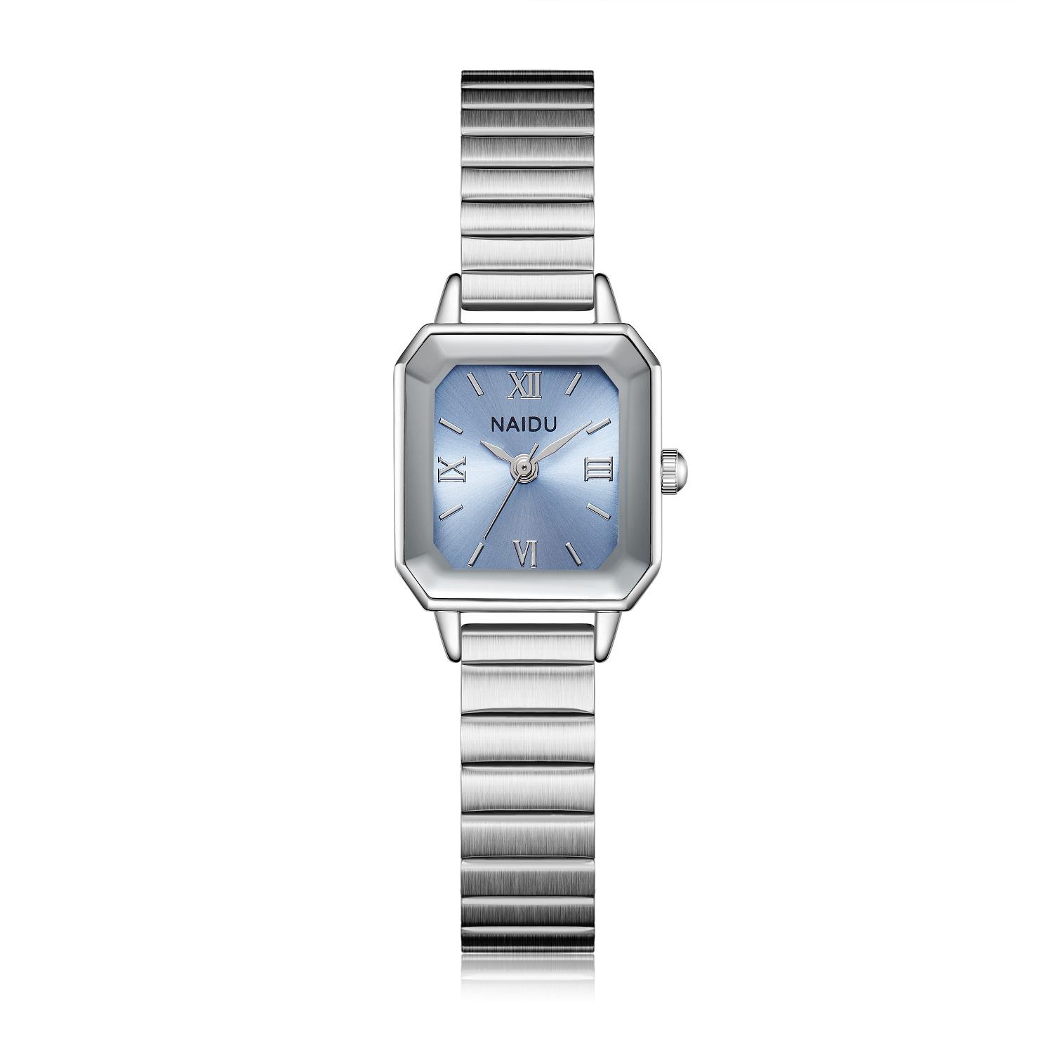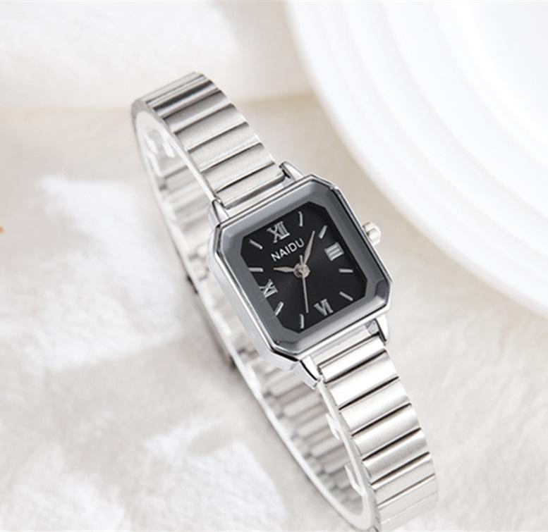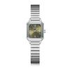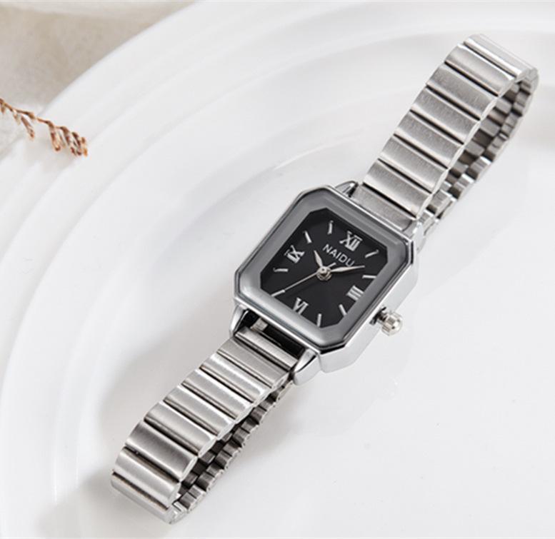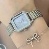 Reloj de pulsera de acero de aleación cuadrada con correa de acero, reloj de cuarzo, reloj de moda informal con drenaje en vivo, fabricantes mayoristas