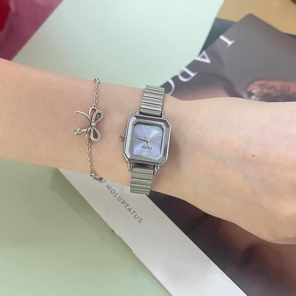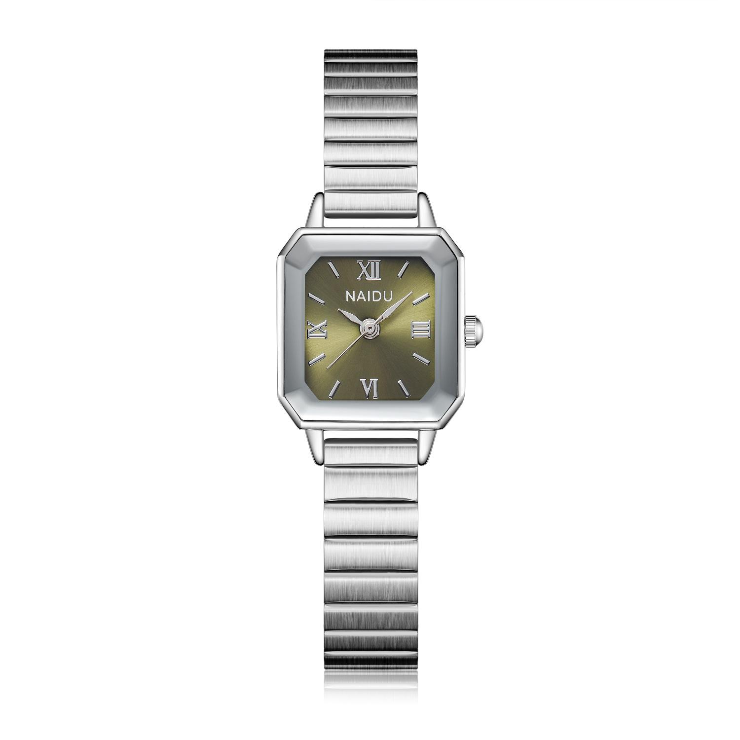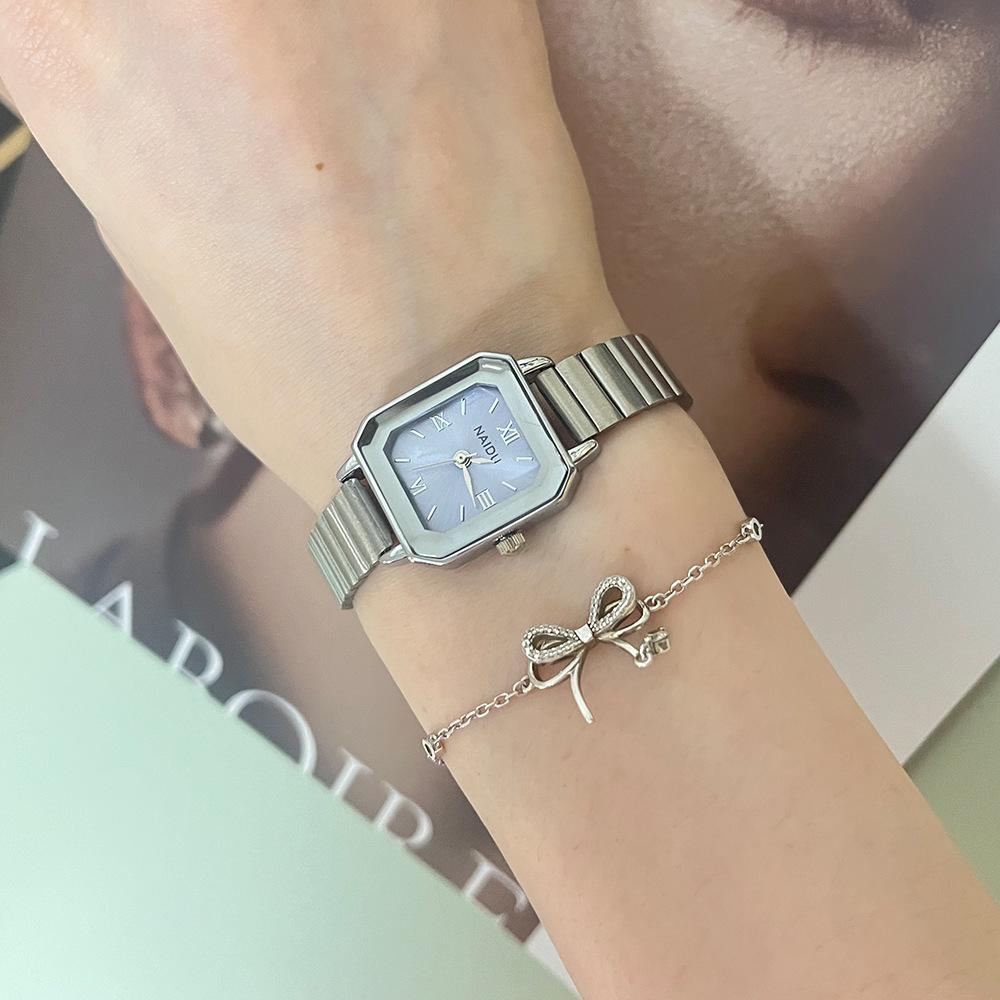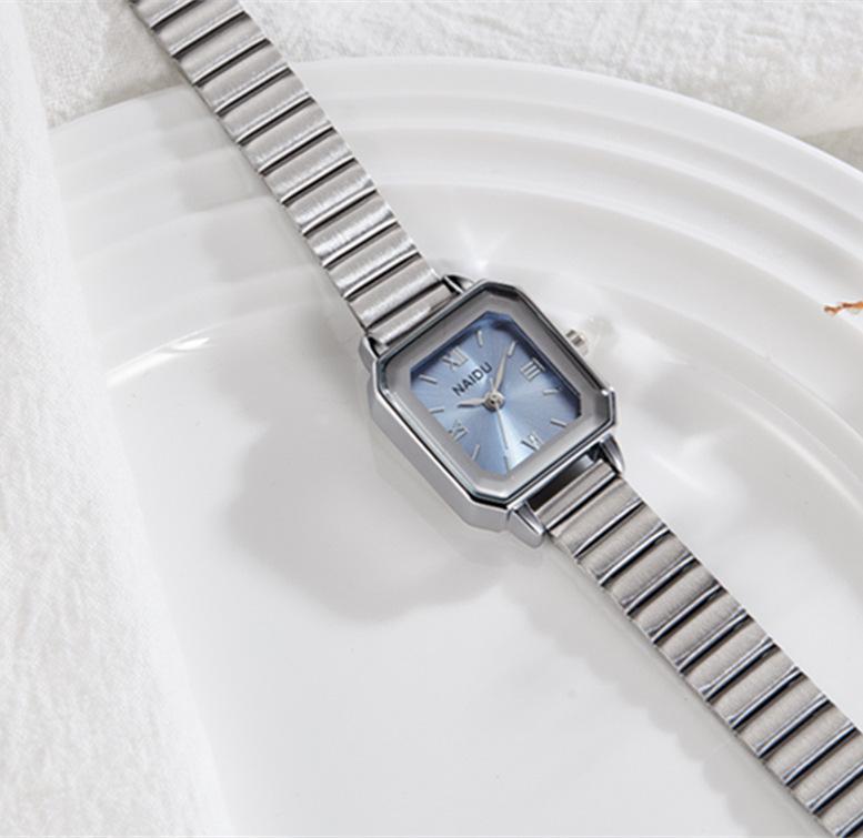 Reloj de pulsera de acero de aleación cuadrada con correa de acero, reloj de cuarzo, reloj de moda informal con drenaje en vivo, fabricantes mayoristas