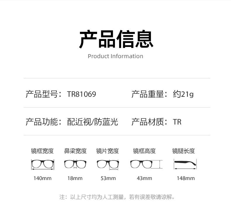 Montura de gafas ultraligera retro TR de gran tamaño para mujer, antiluz azul, combinable con miopía, sentido avanzado de fábrica de gafas para hombre10,5 yuanesComprar ahora>