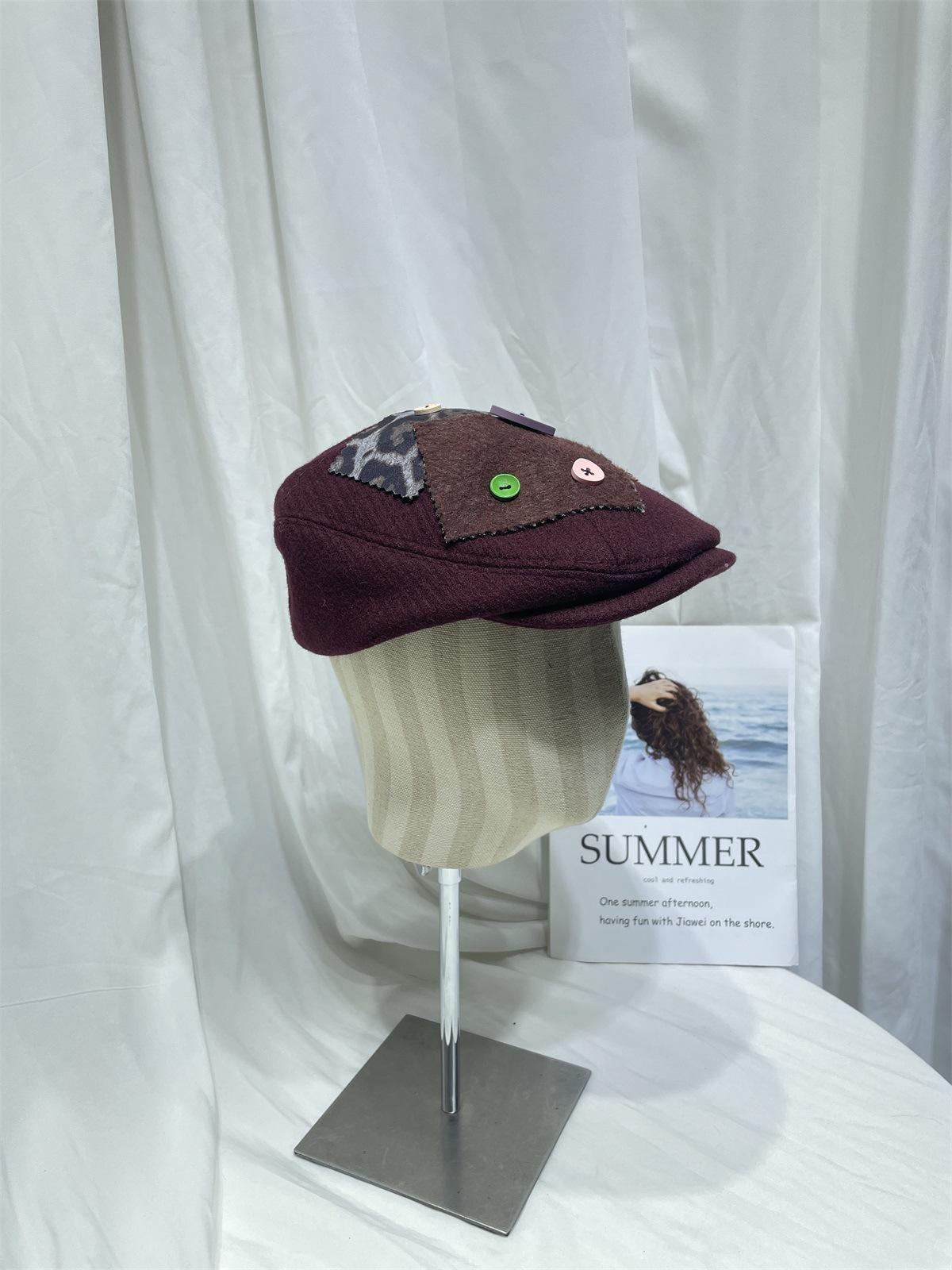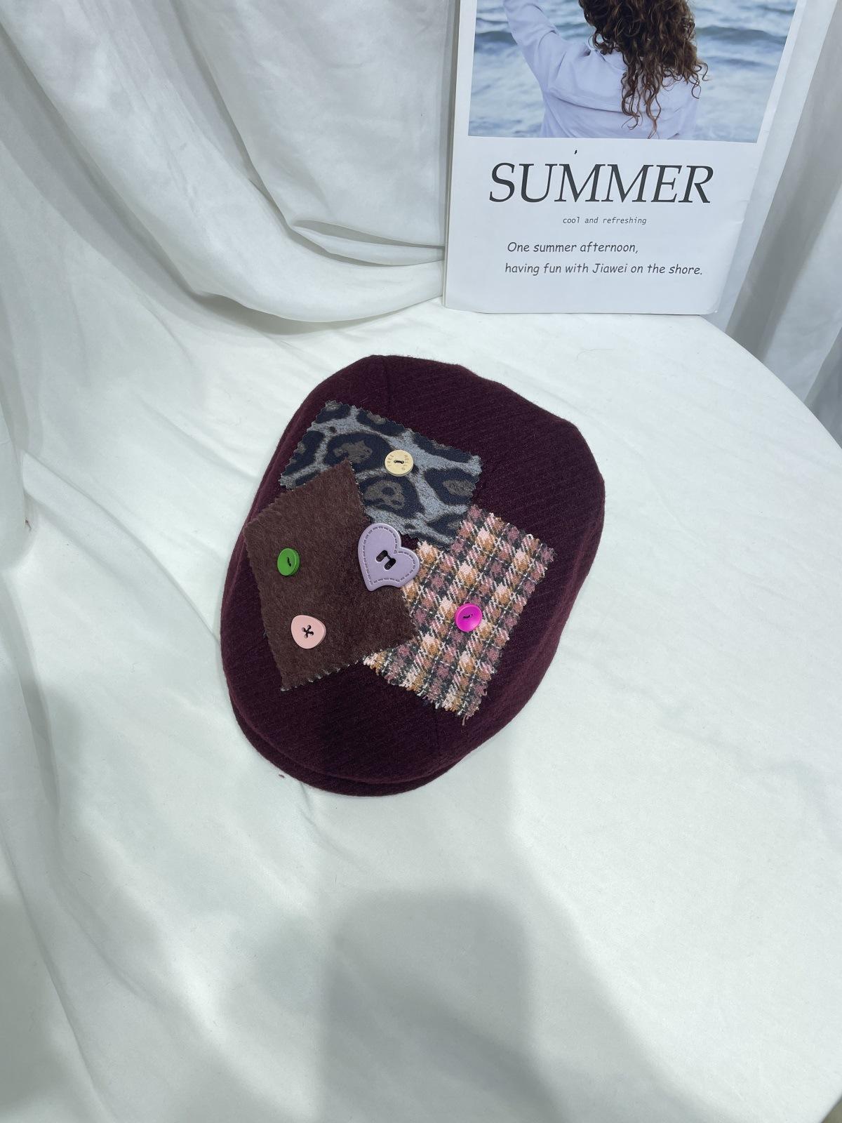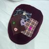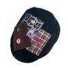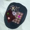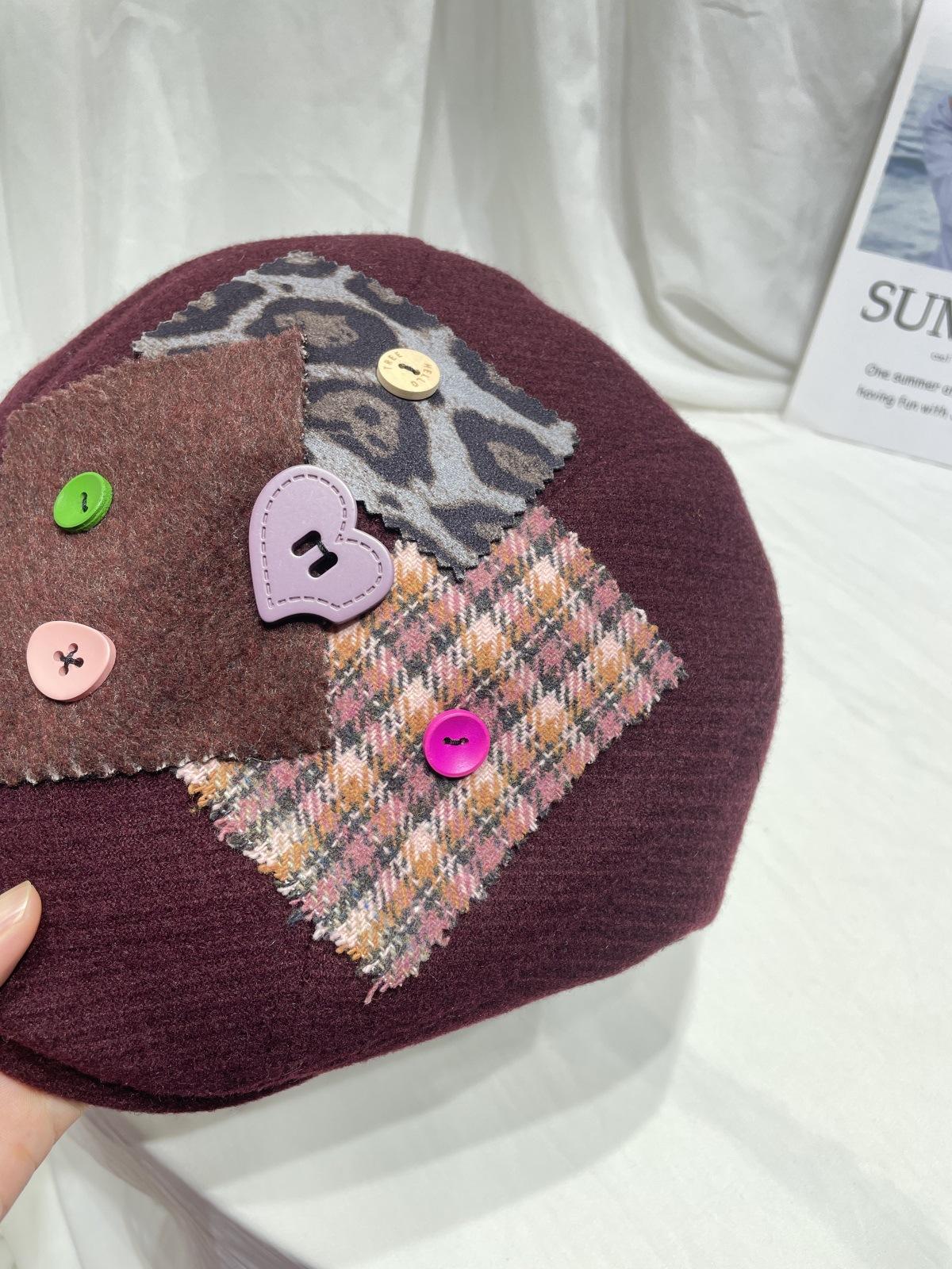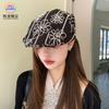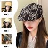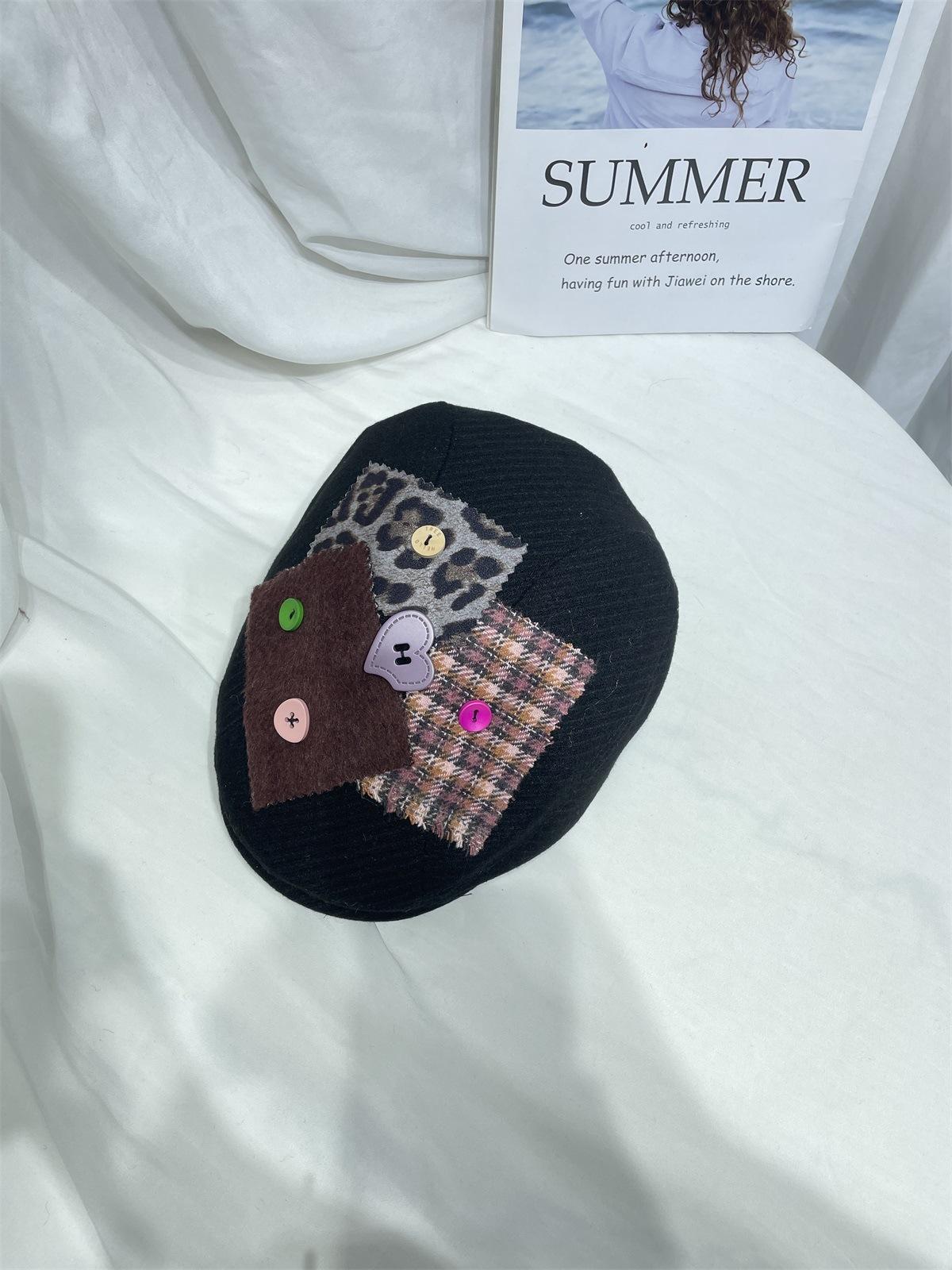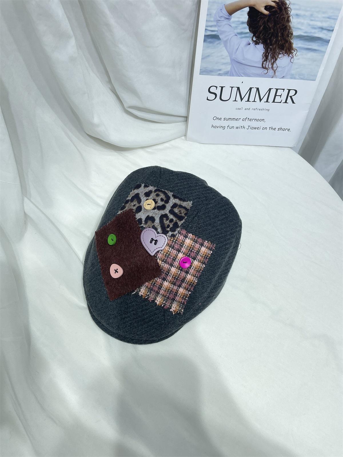Gorro de tela con parche de botón y estampado de leopardo retro de nicho para niños, otoño e invierno, boina de pintor pequeña con cara de chica atractiva, gorro de pico de pato