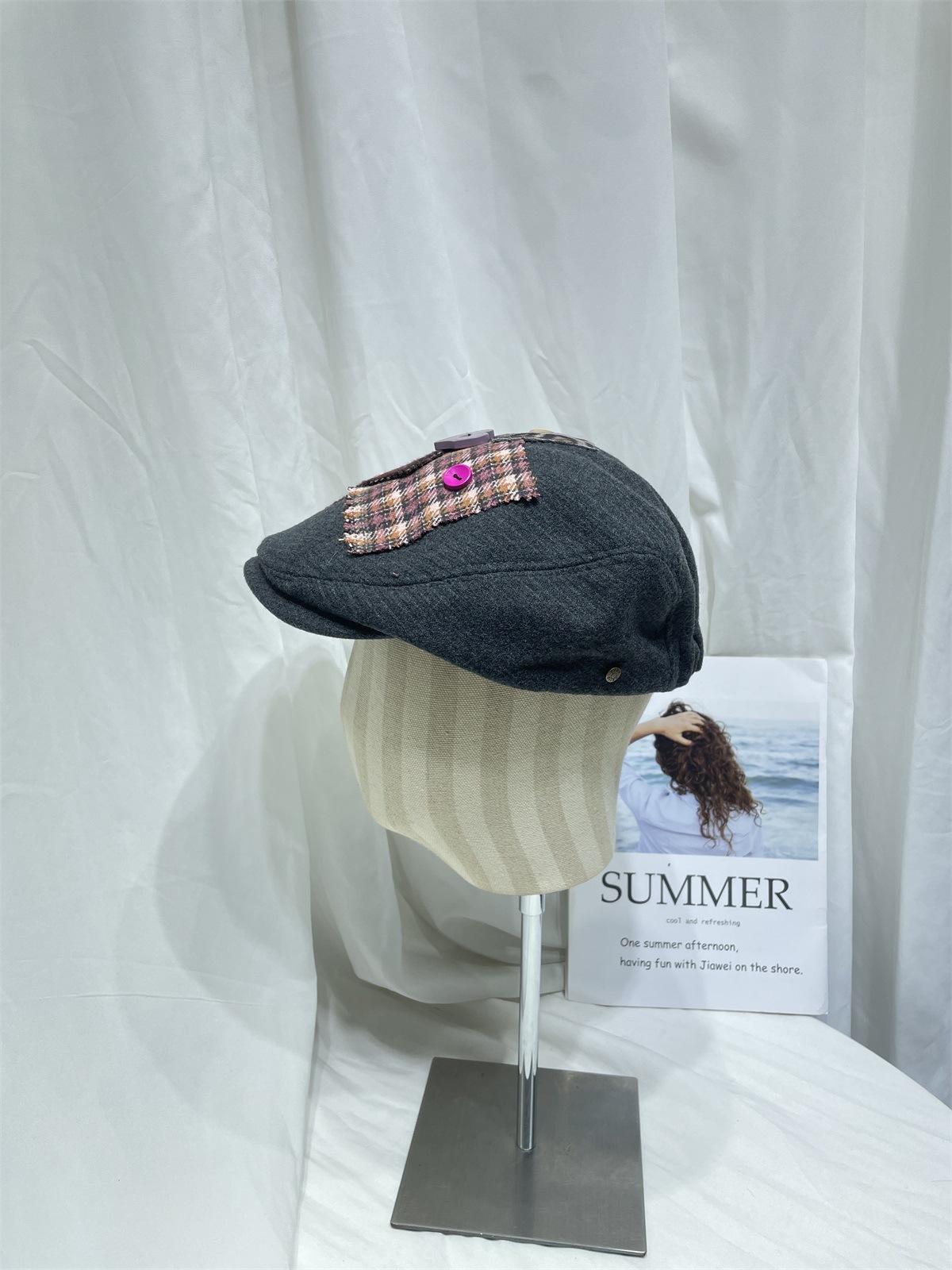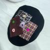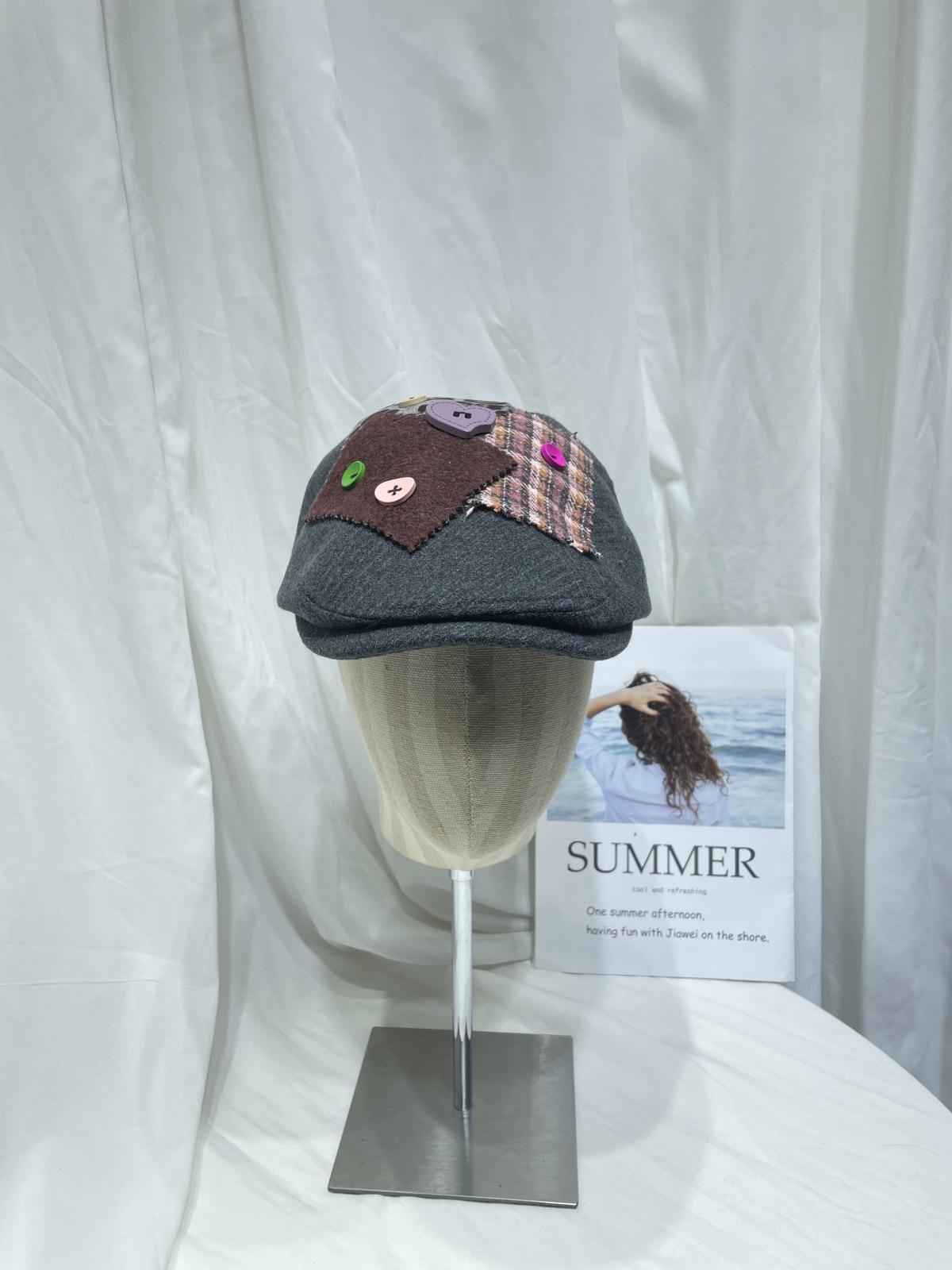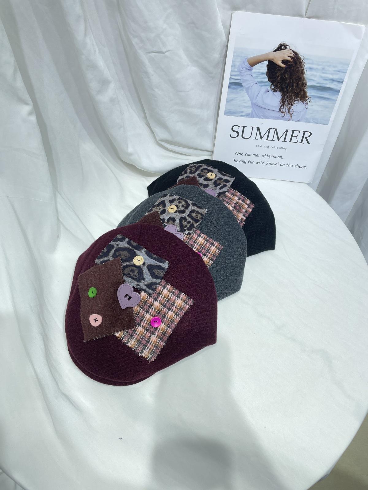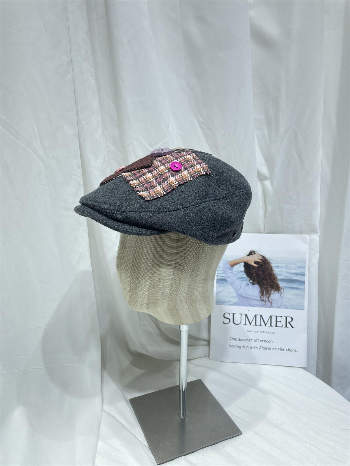 Gorro de tela con parche de botón y estampado de leopardo retro de nicho para niños, otoño e invierno, boina de pintor pequeña con cara de chica atractiva, gorro de pico de pato