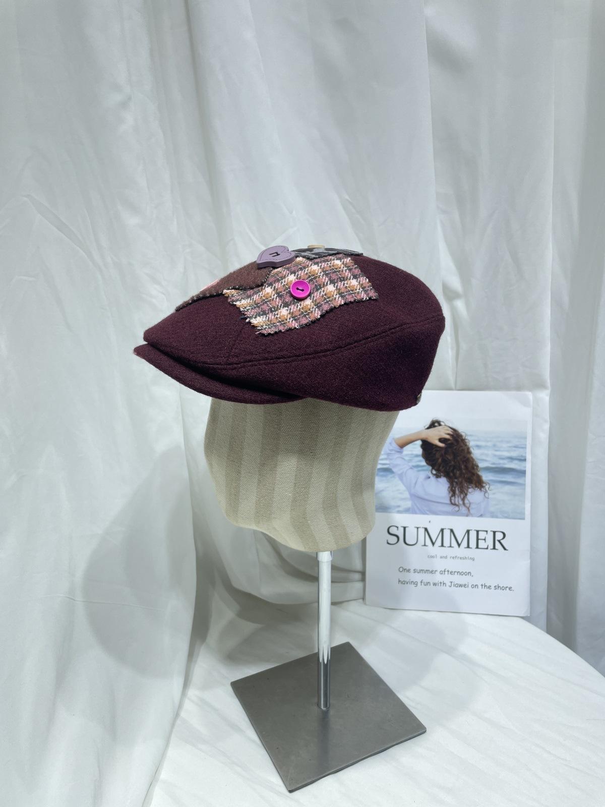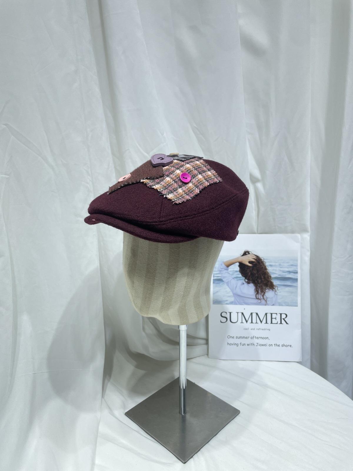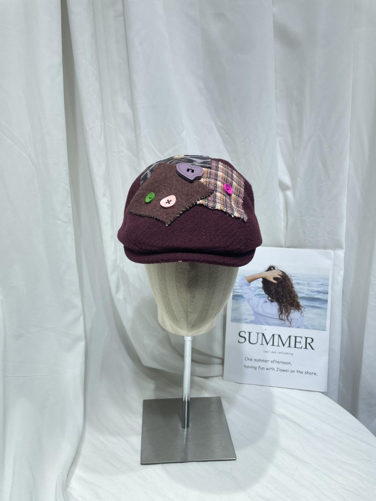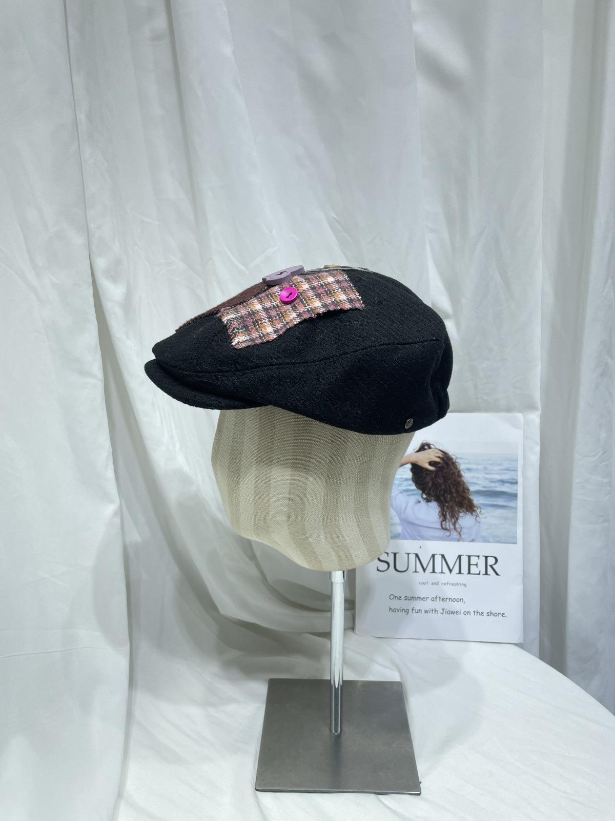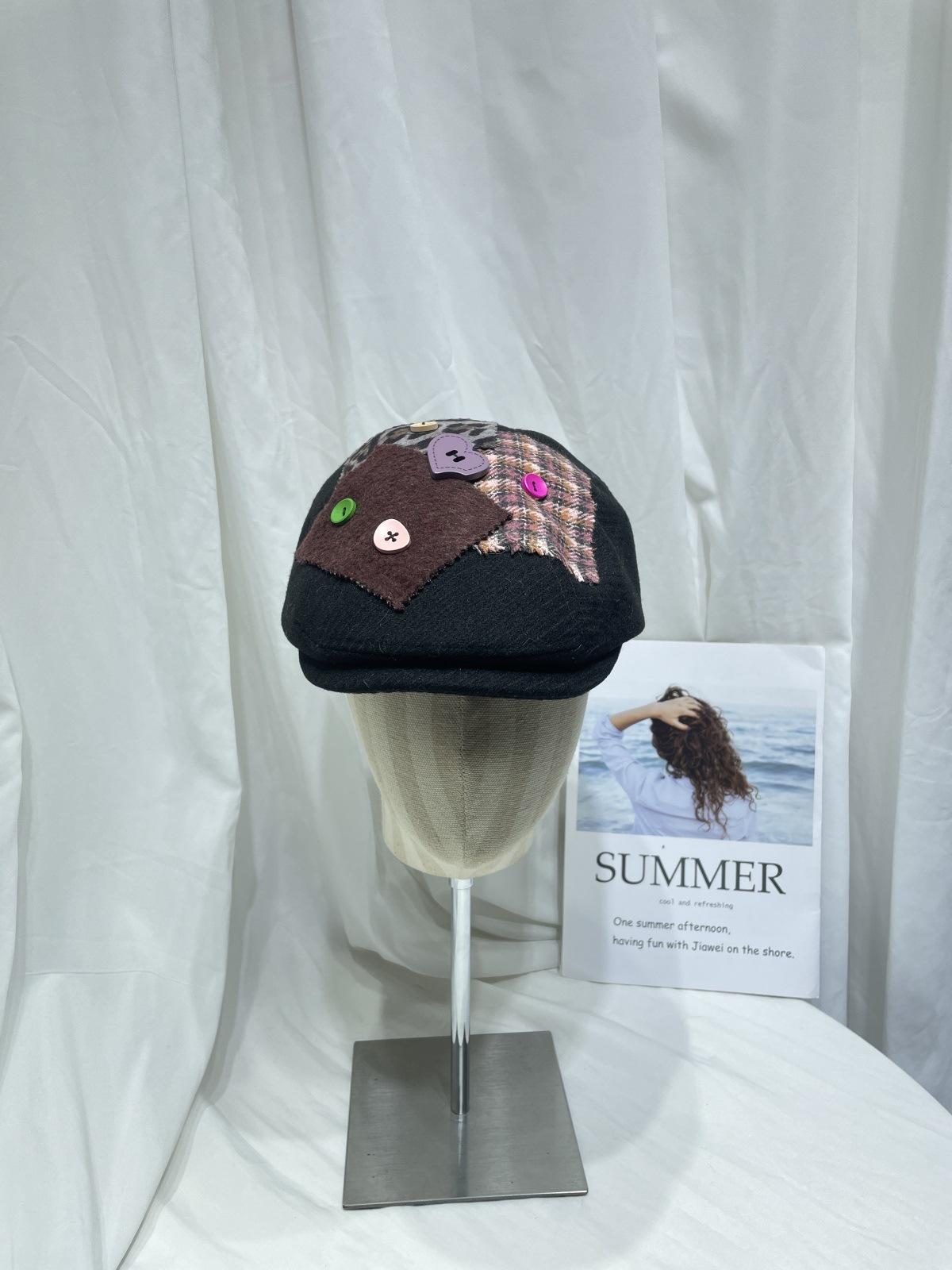Gorro de tela con parche de botón y estampado de leopardo retro de nicho para niños, otoño e invierno, boina de pintor pequeña con cara de chica atractiva, gorro de pico de pato