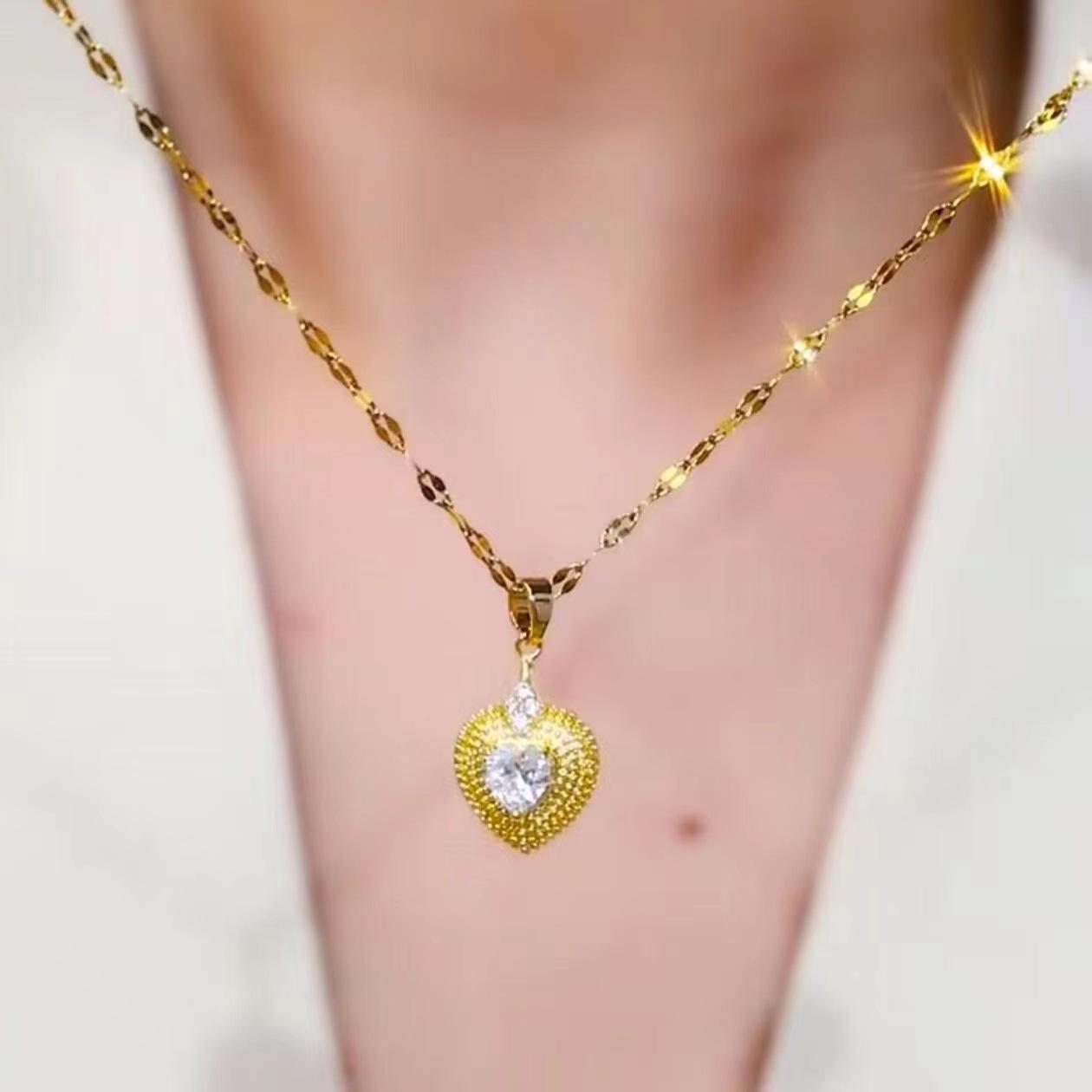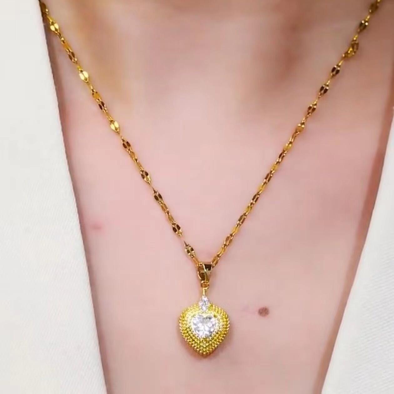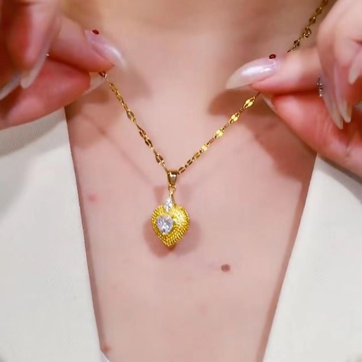 2024 Celebridad de Internet Moda Popular Gotas de Agua Doradas Amor Collar de Durazno Lujo Ligero Combinación con Todo Elegante Exquisito Collar para Mujer