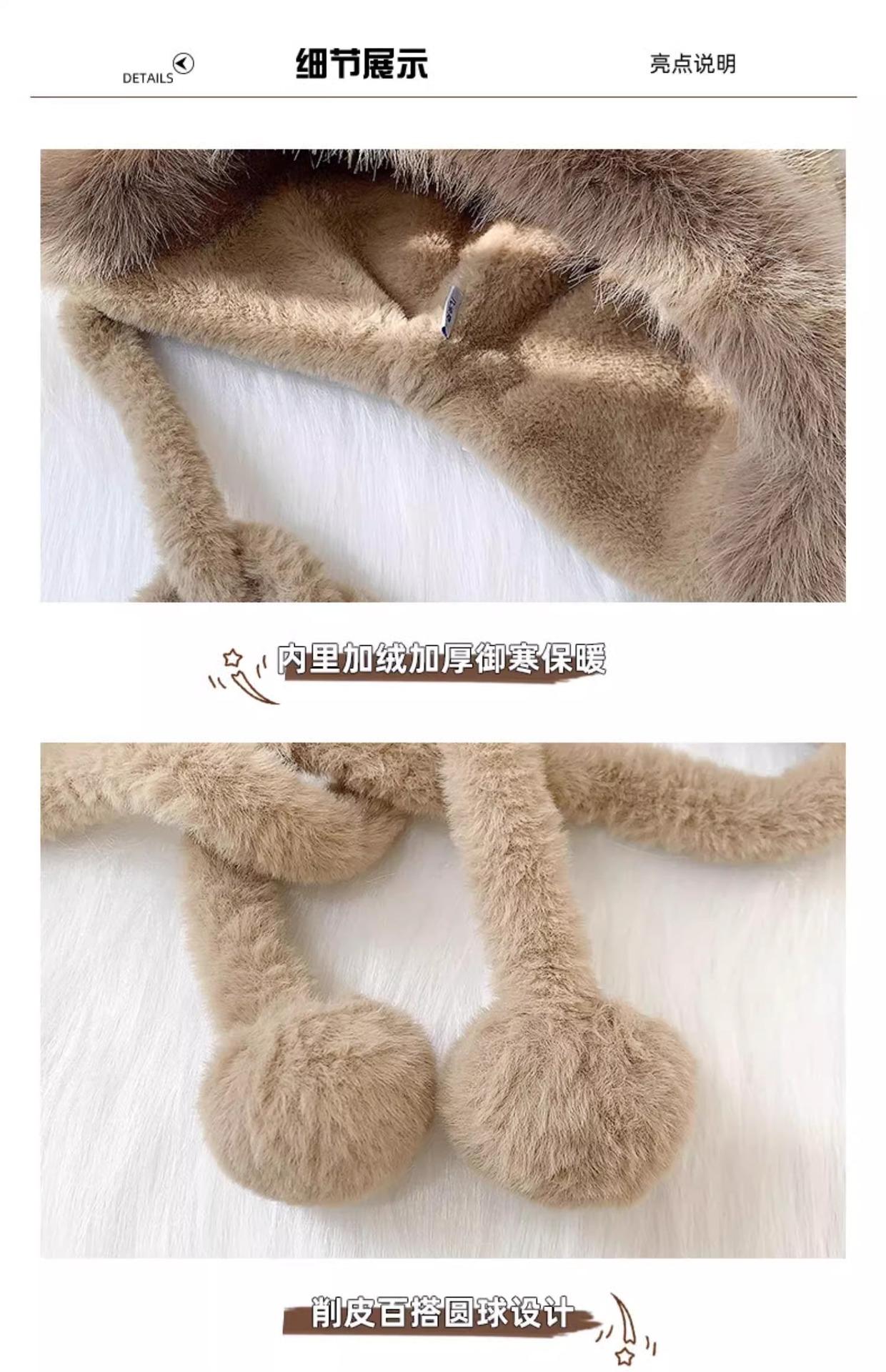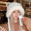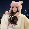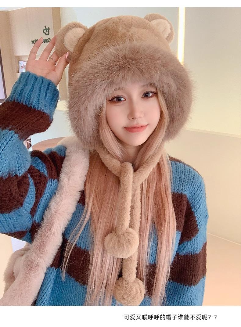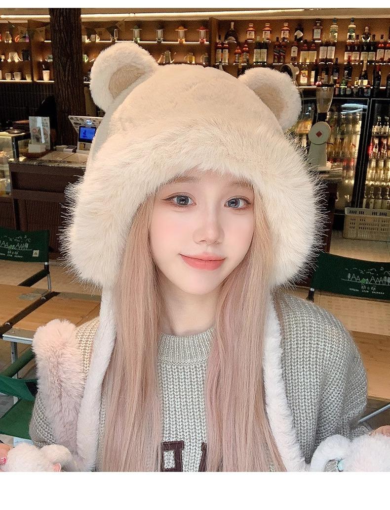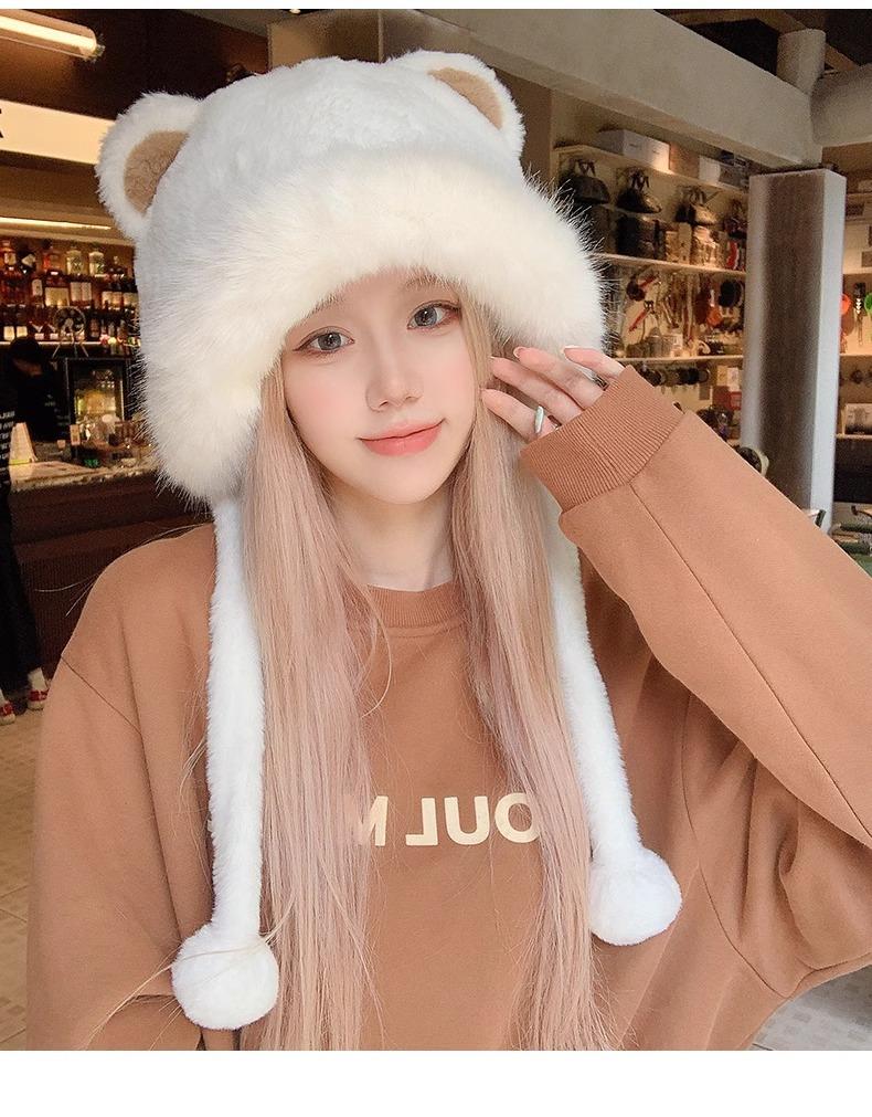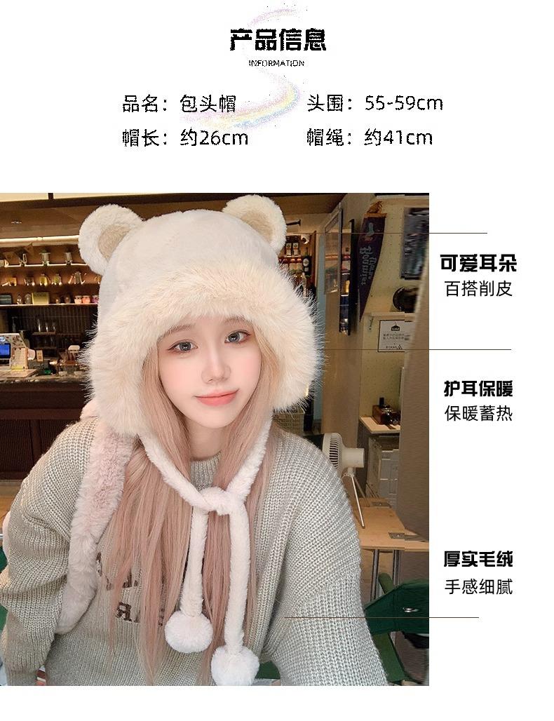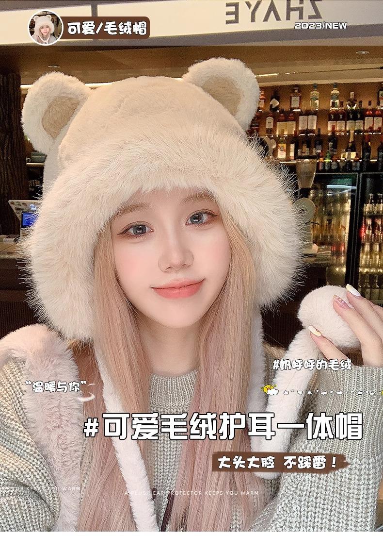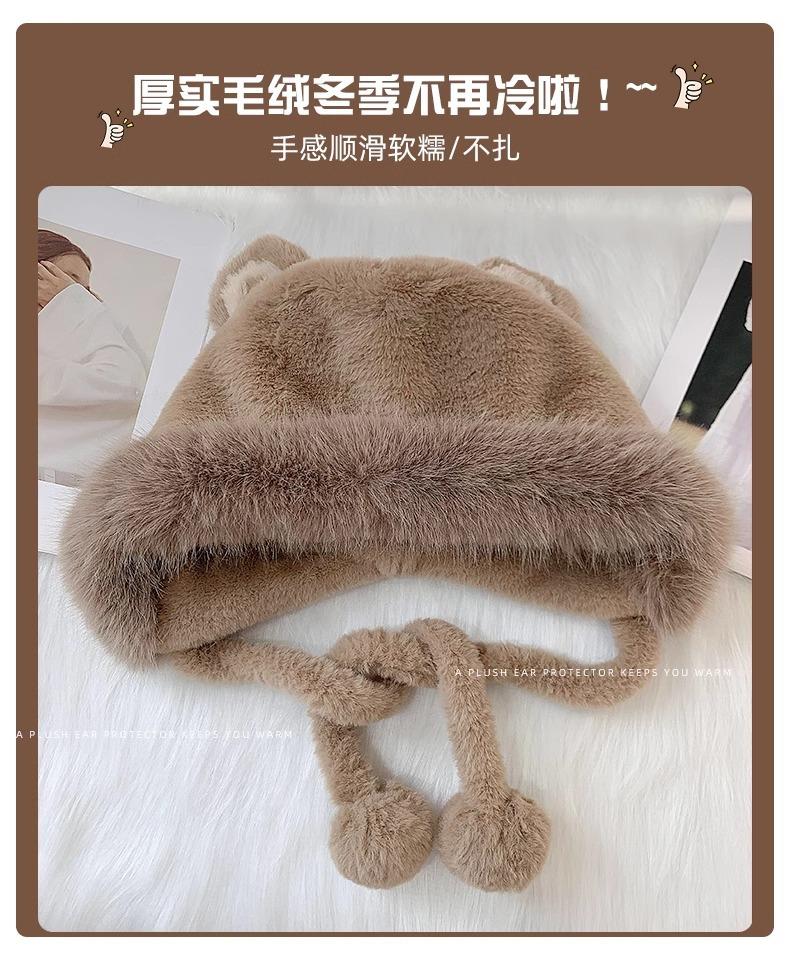 Sombrero Lei Feng de Invierno para Mujer Estilo Coreano con Protección para las Orejas de Oso Integrada para Ciclismo Cálido con Forro Polar Engrosado a Prueba de Viento y Frío