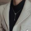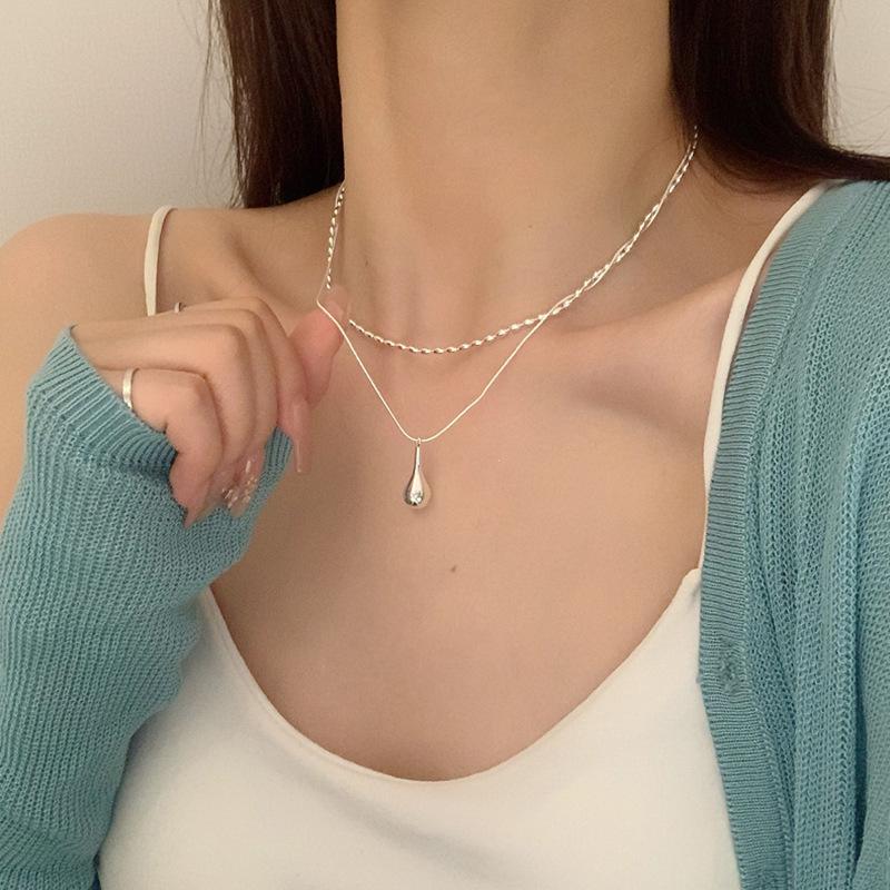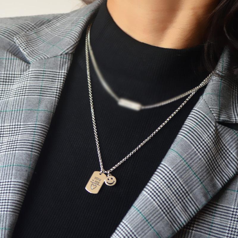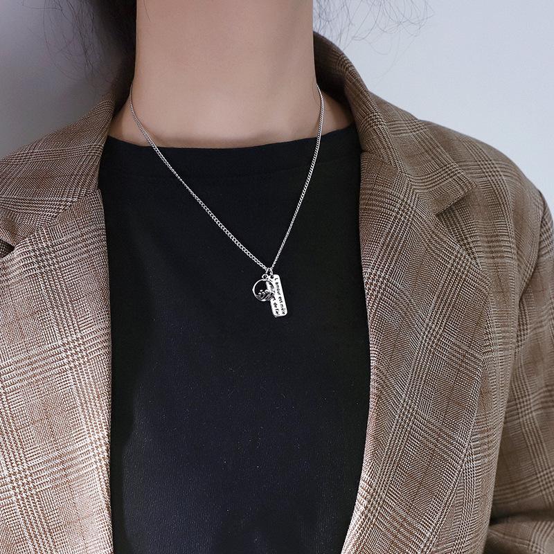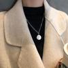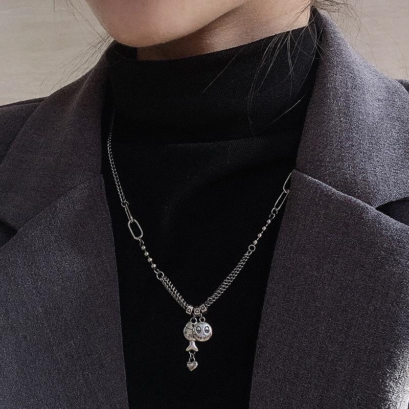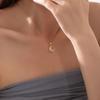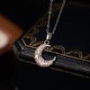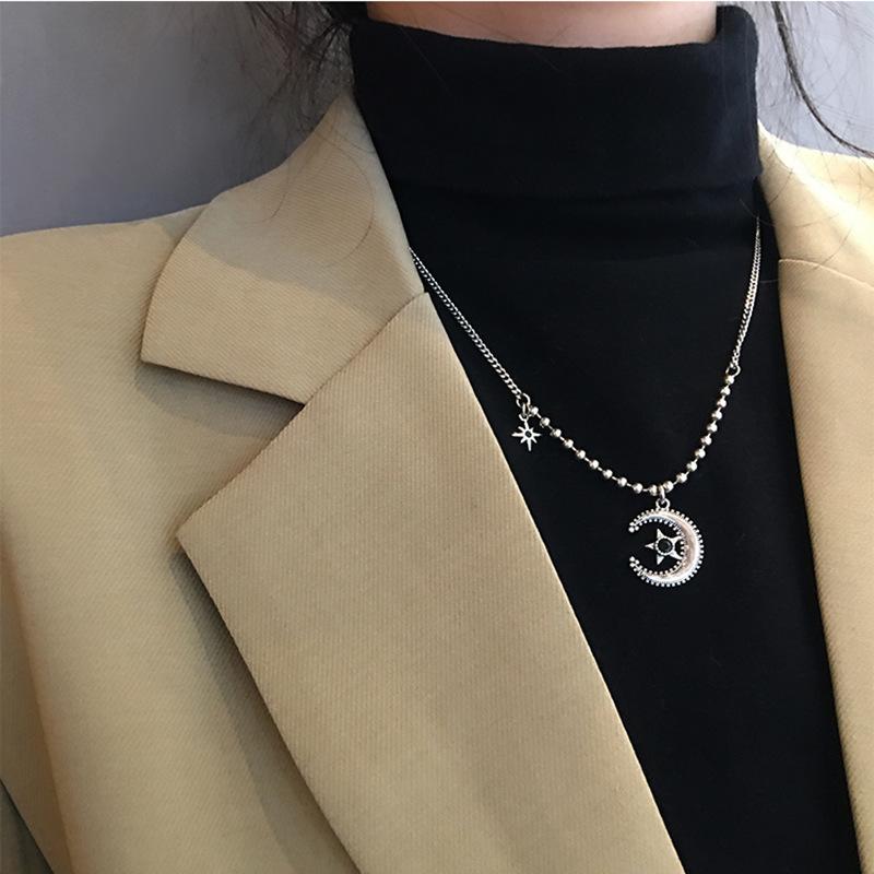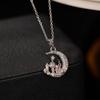 Small waist double layer cross necklace, Interlocking necklace, Golden moon full zircon necklace, Steel color ...