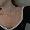 Collar Cadena para Suéter de Mujer Lujo Accesible Nicho Joyería Collar de Perlas Collar de Alta Gama Collar Largo Colgante de Corazón de Cruz