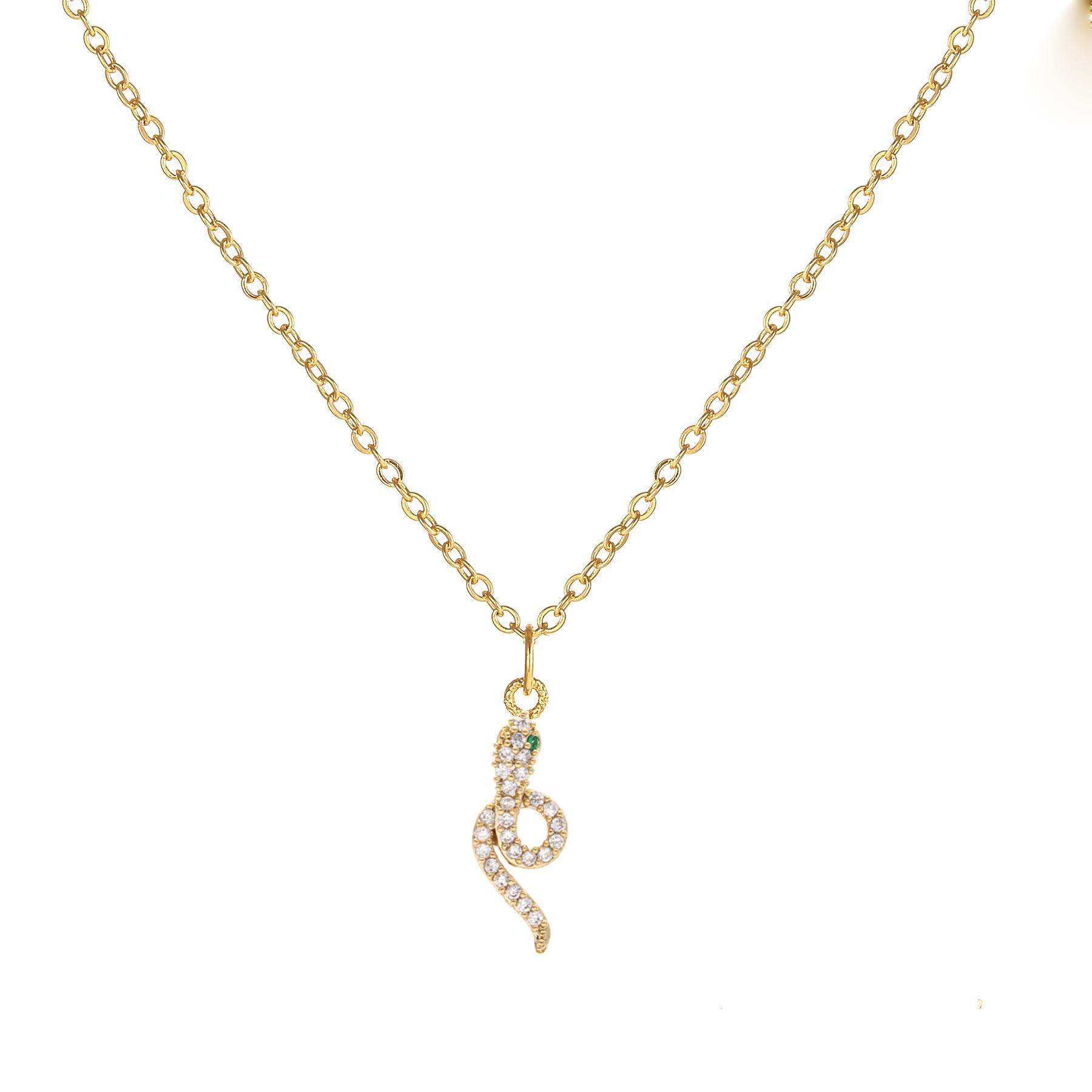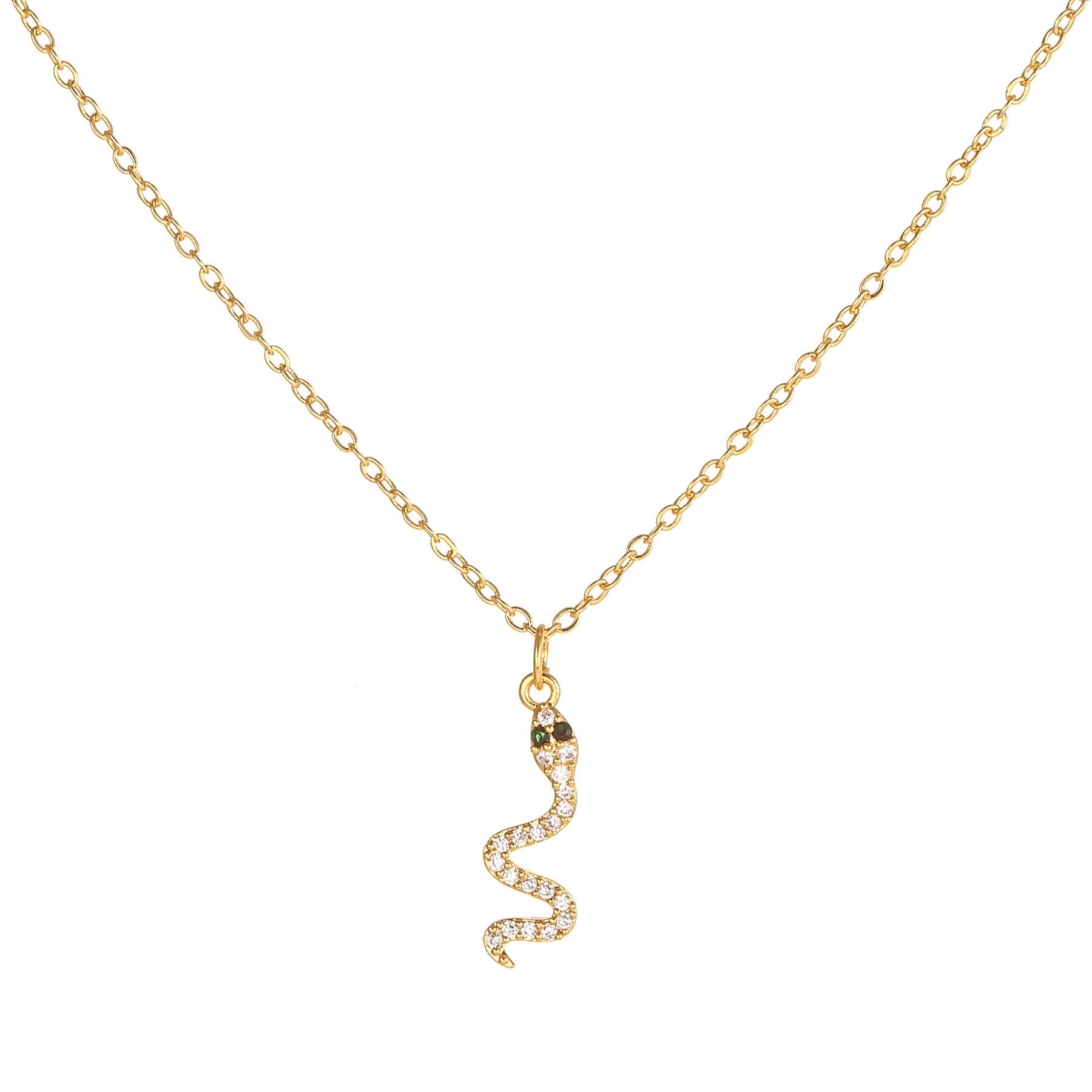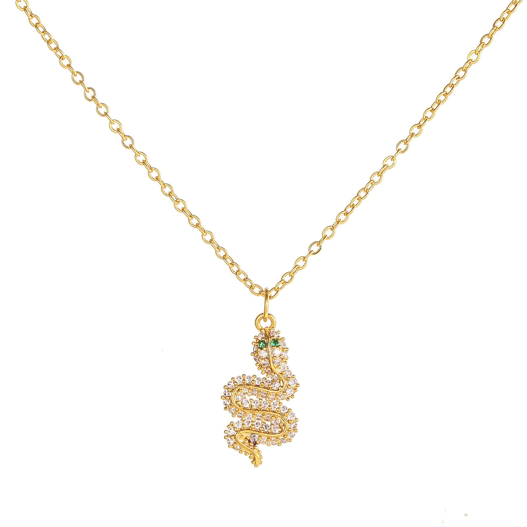 Collar con Colgante de Serpiente de Estilo Frío Trendy Europeo y Americano Transfronterizo Cobre Chapado en Oro Real Zirconia Cadena de Clavícula de Lujo Ligero Articulación del Cuello para Mujeres