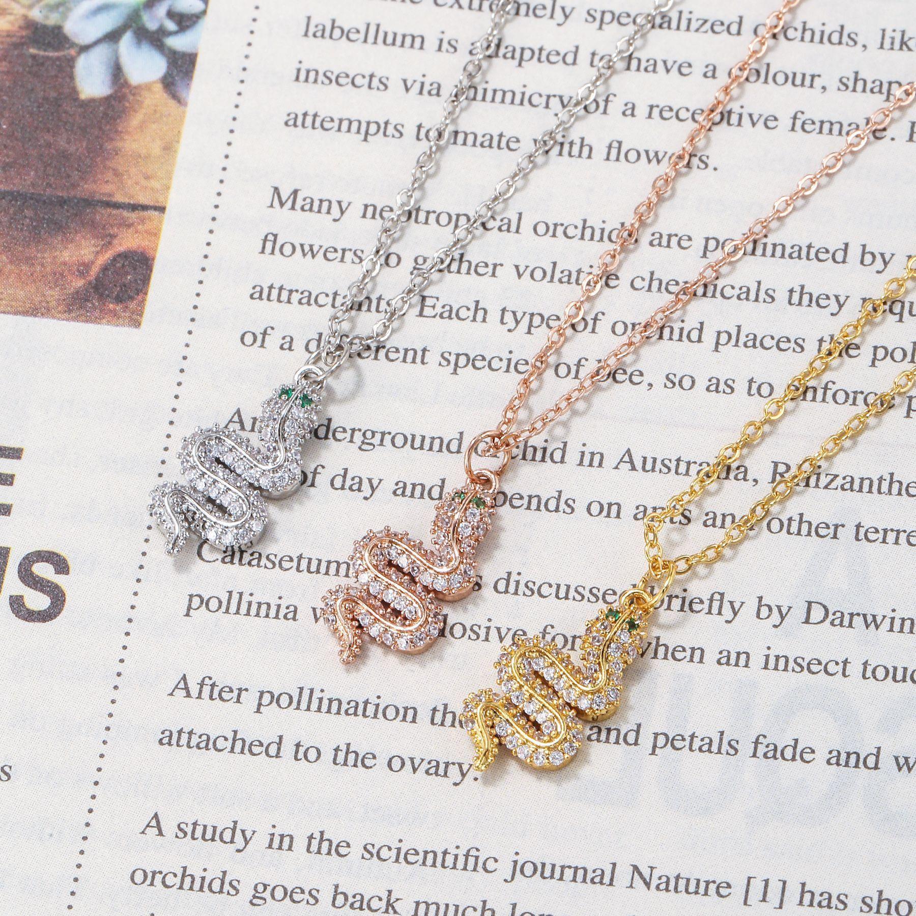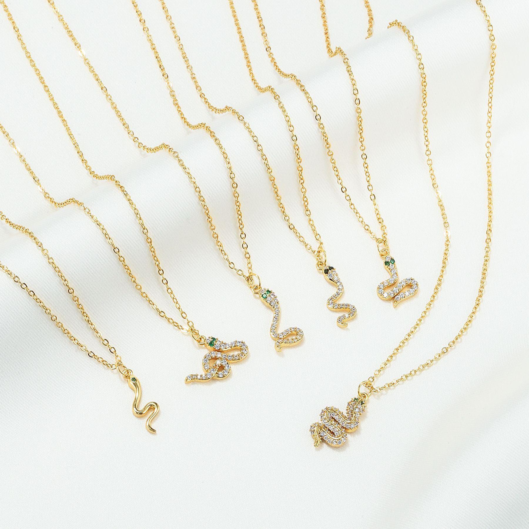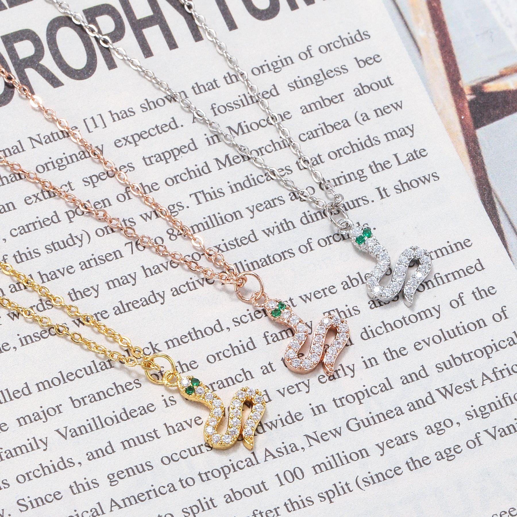 Collar con Colgante de Serpiente de Estilo Frío Trendy Europeo y Americano Transfronterizo Cobre Chapado en Oro Real Zirconia Cadena de Clavícula de Lujo Ligero Articulación del Cuello para Mujeres