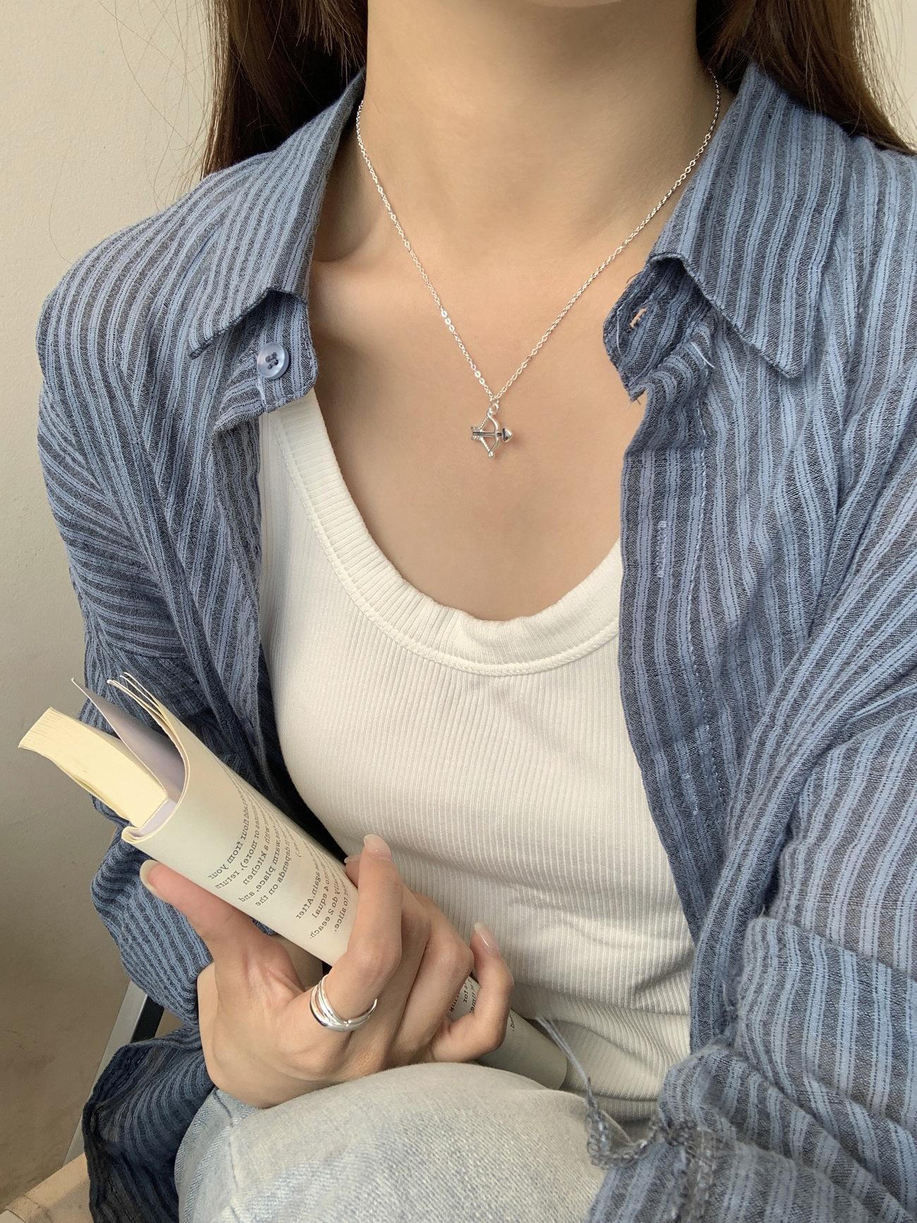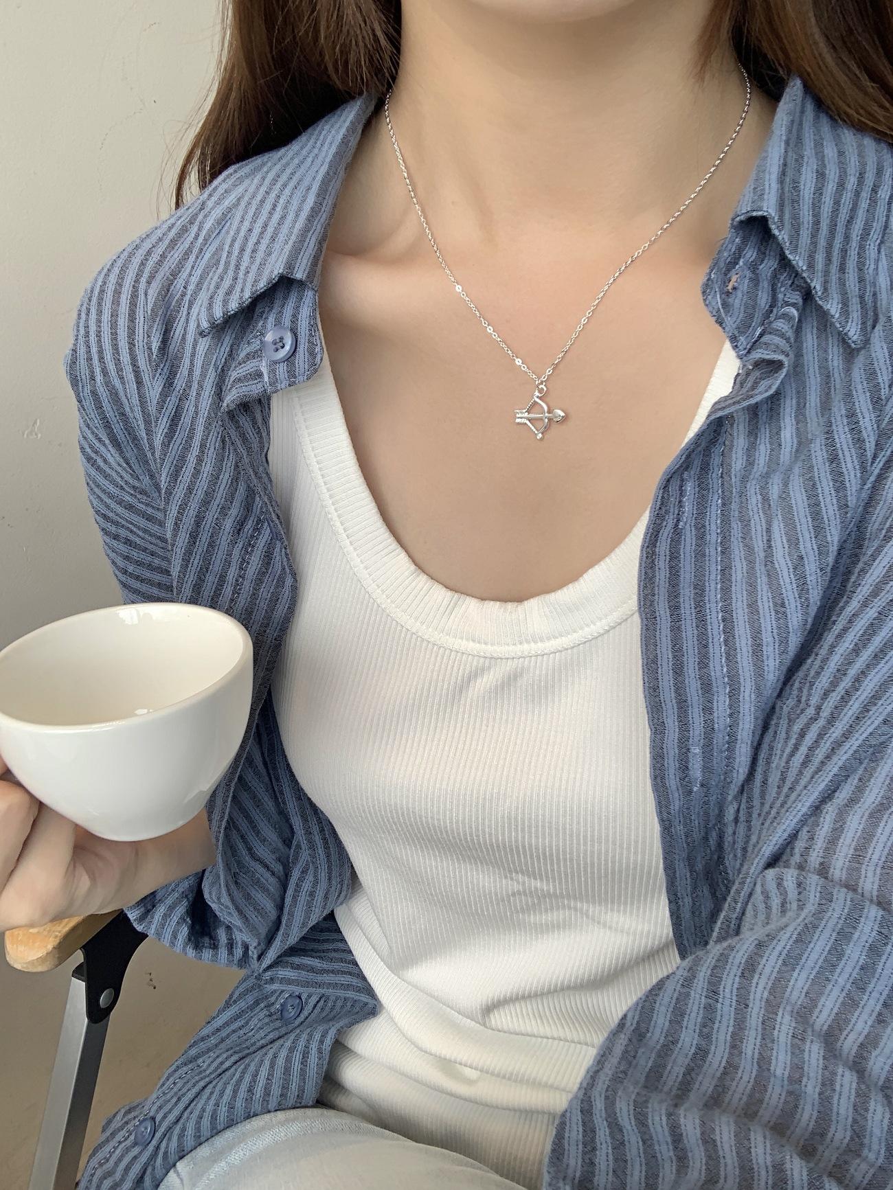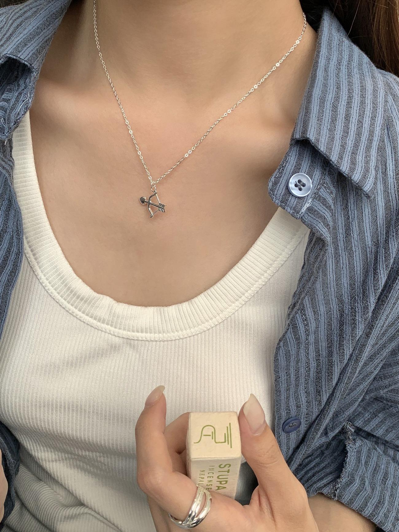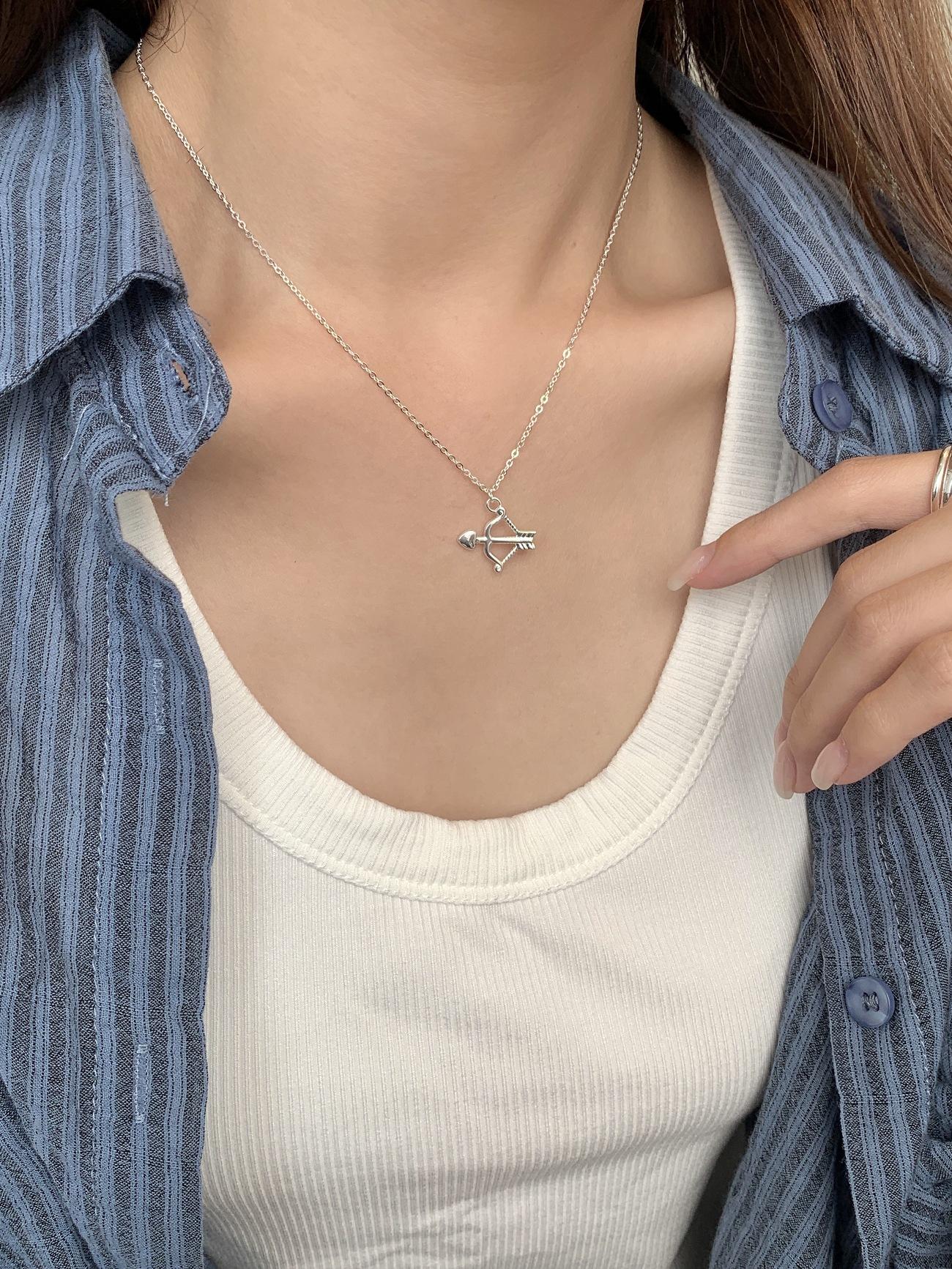 Collar de flecha de Cupido en plata de ley S925 para mujer, diseño de nicho de lujo accesible, cadena de clavícula moderna con forma de corazón, versátil