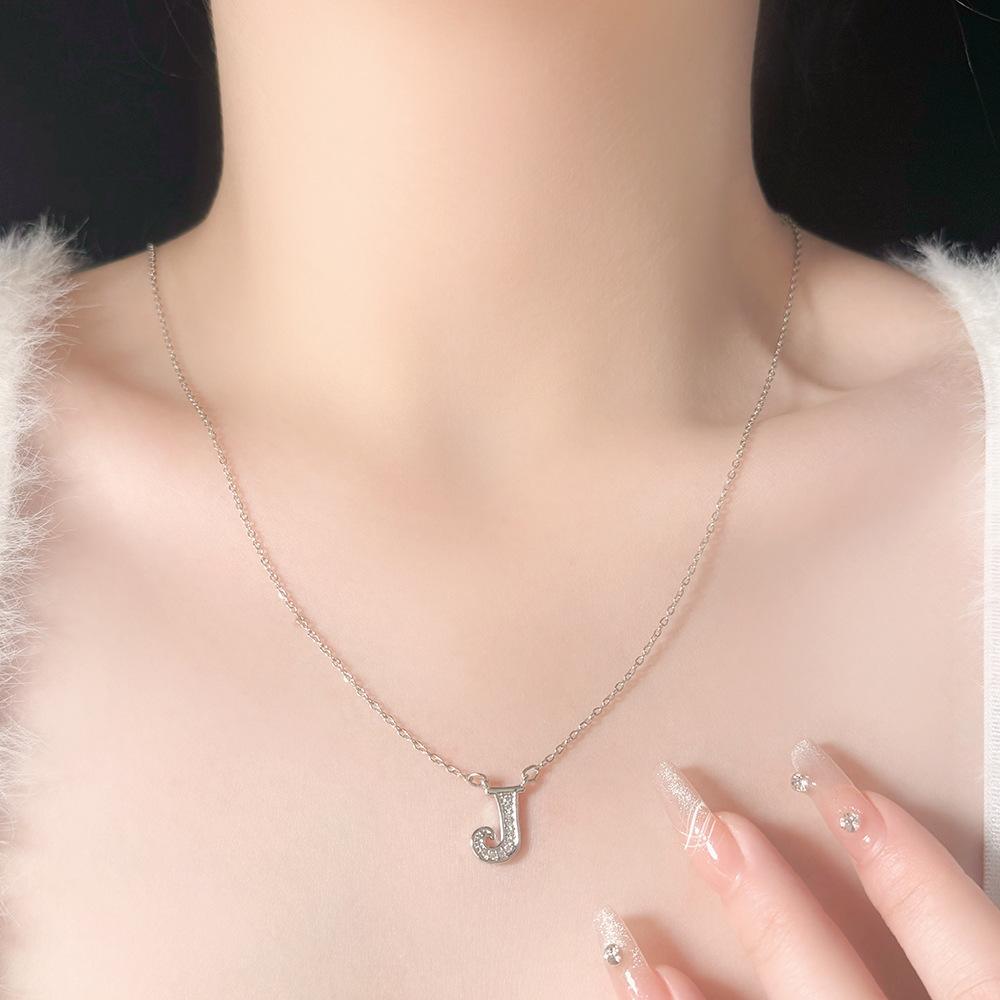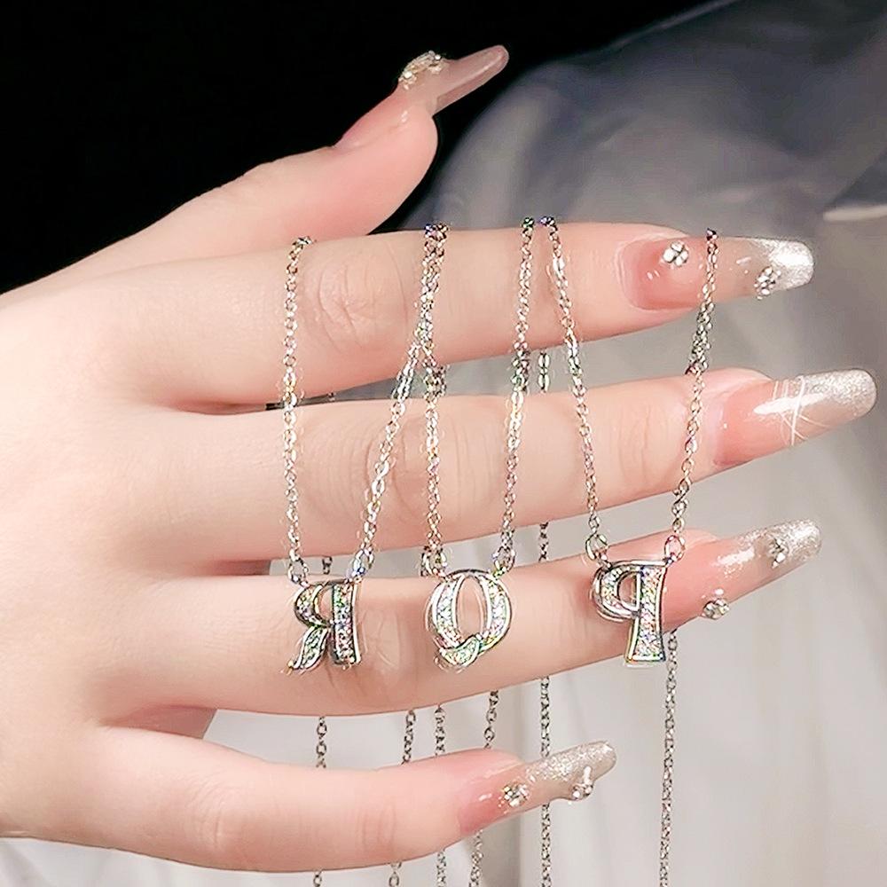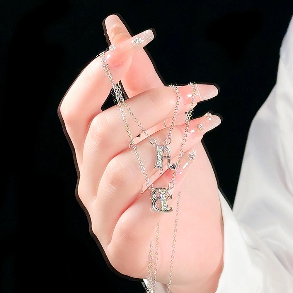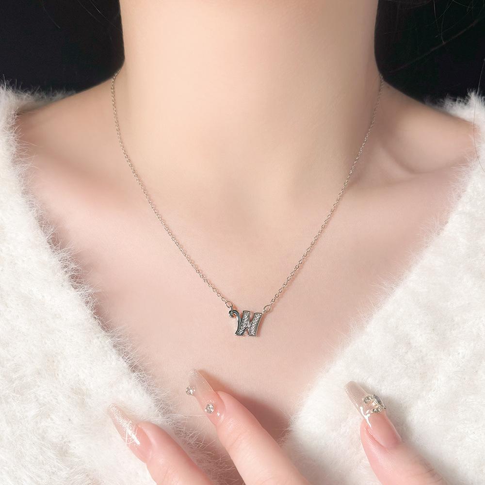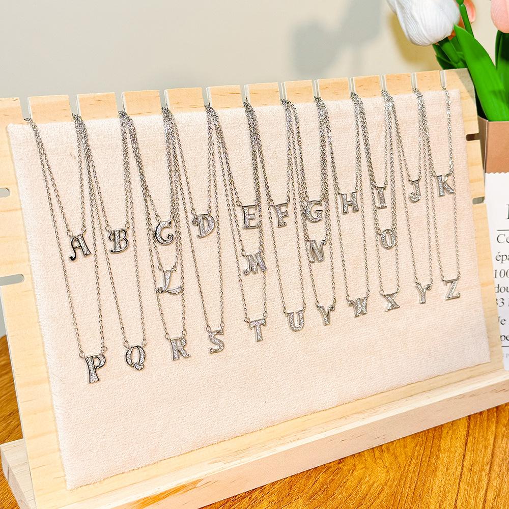Collar Original de 26 Letras con Incrustaciones de Diamantes para Mujer, Lujo Ligero Verano 2025 Acero Titanio Cadena Clavícula Inmarcesible Versátil Choker Venta al por Mayor