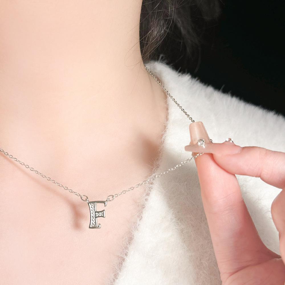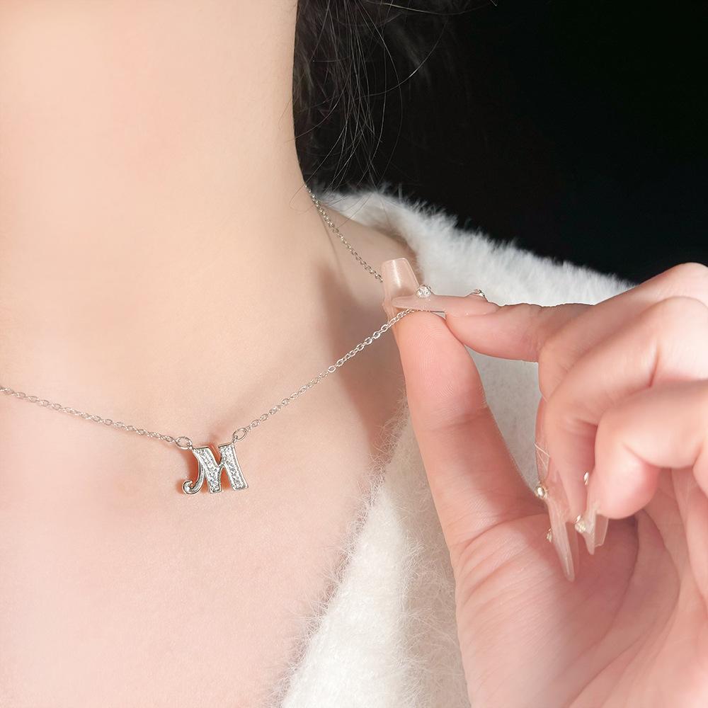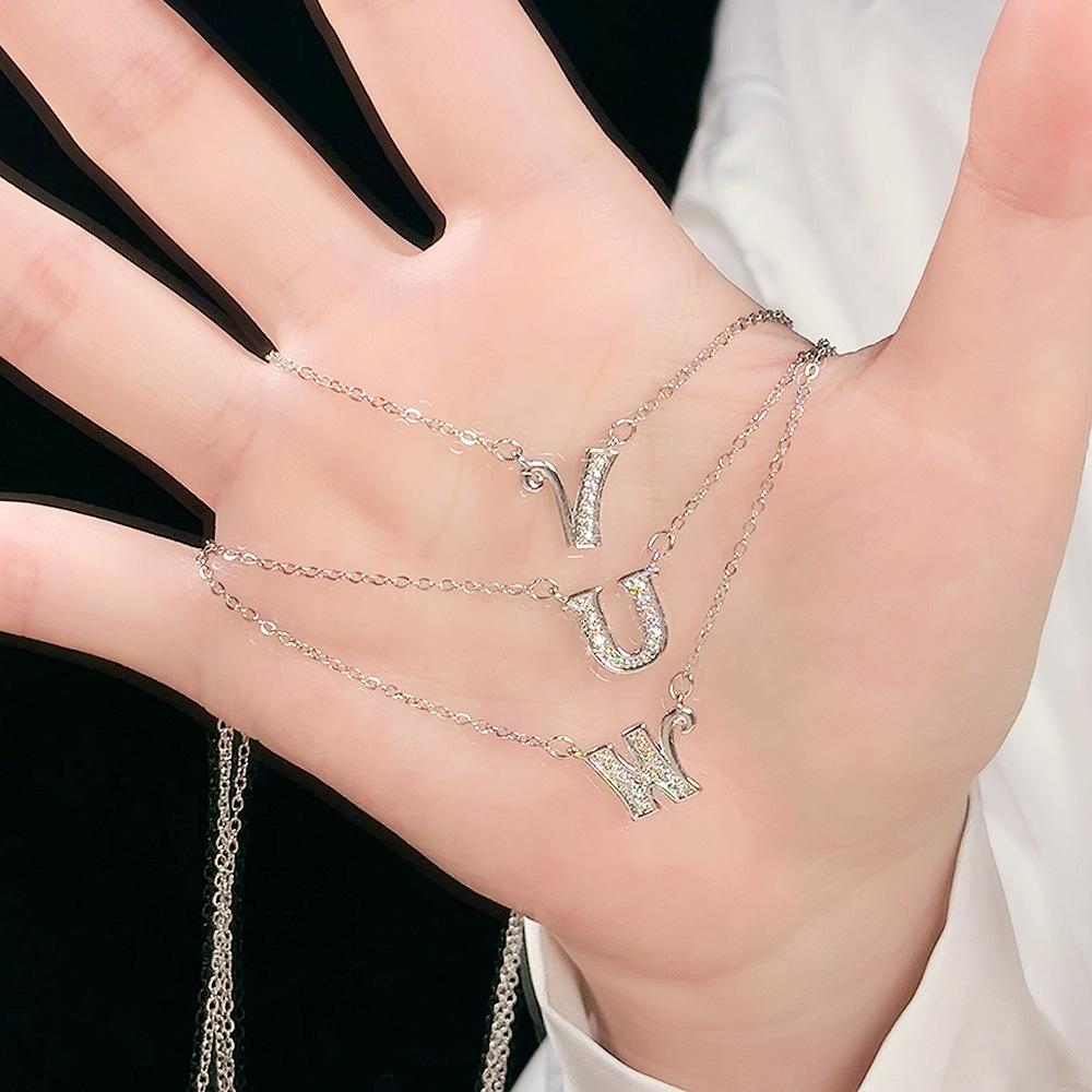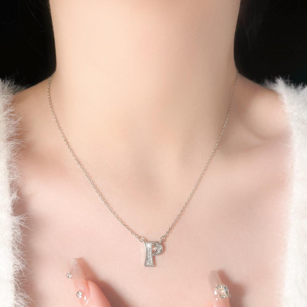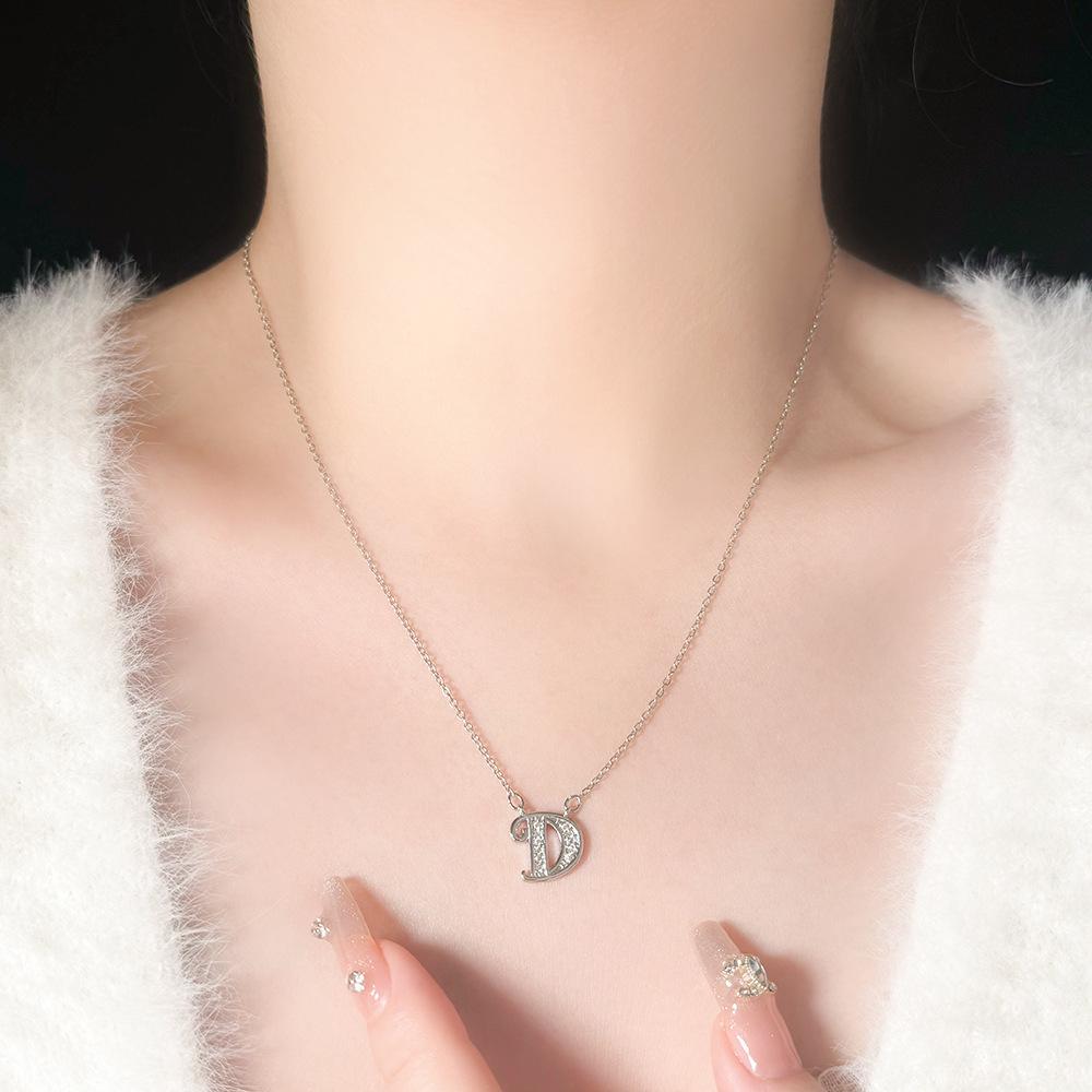 Collar Original de 26 Letras con Incrustaciones de Diamantes para Mujer, Lujo Ligero Verano 2025 Acero Titanio Cadena Clavícula Inmarcesible Versátil Choker Venta al por Mayor