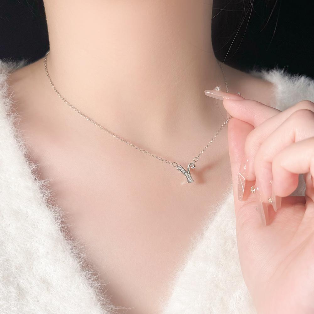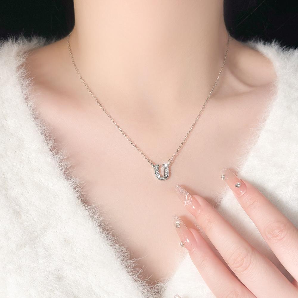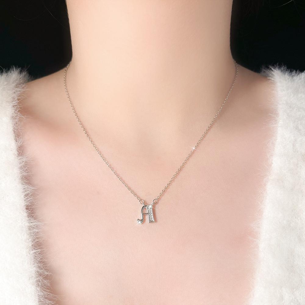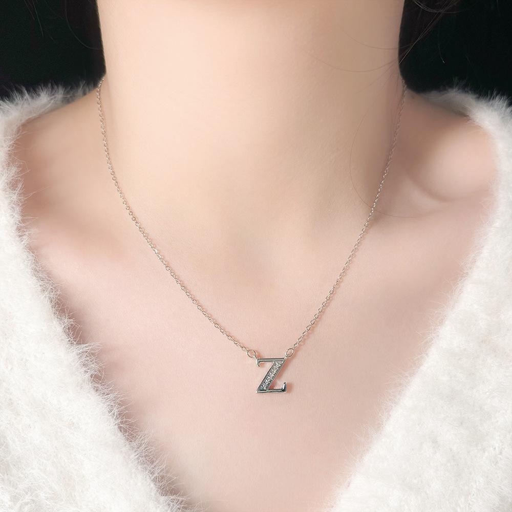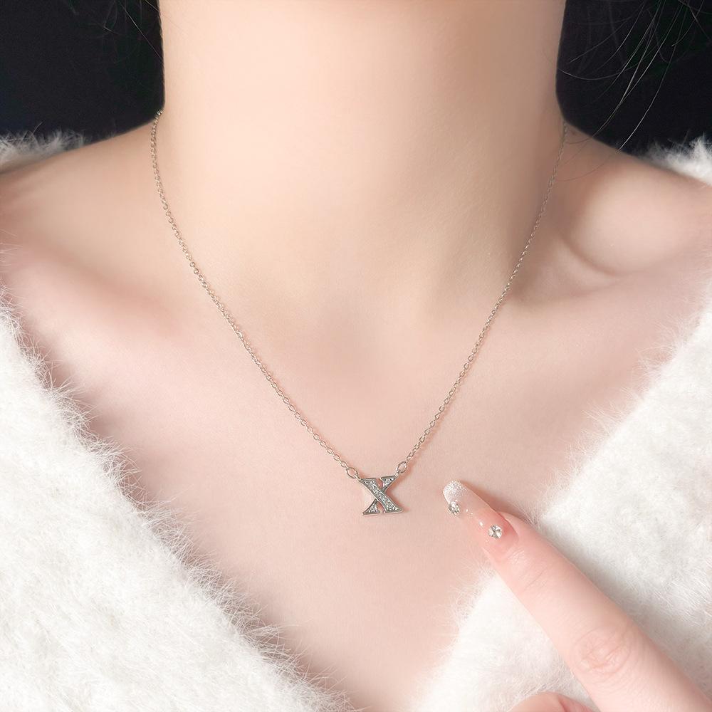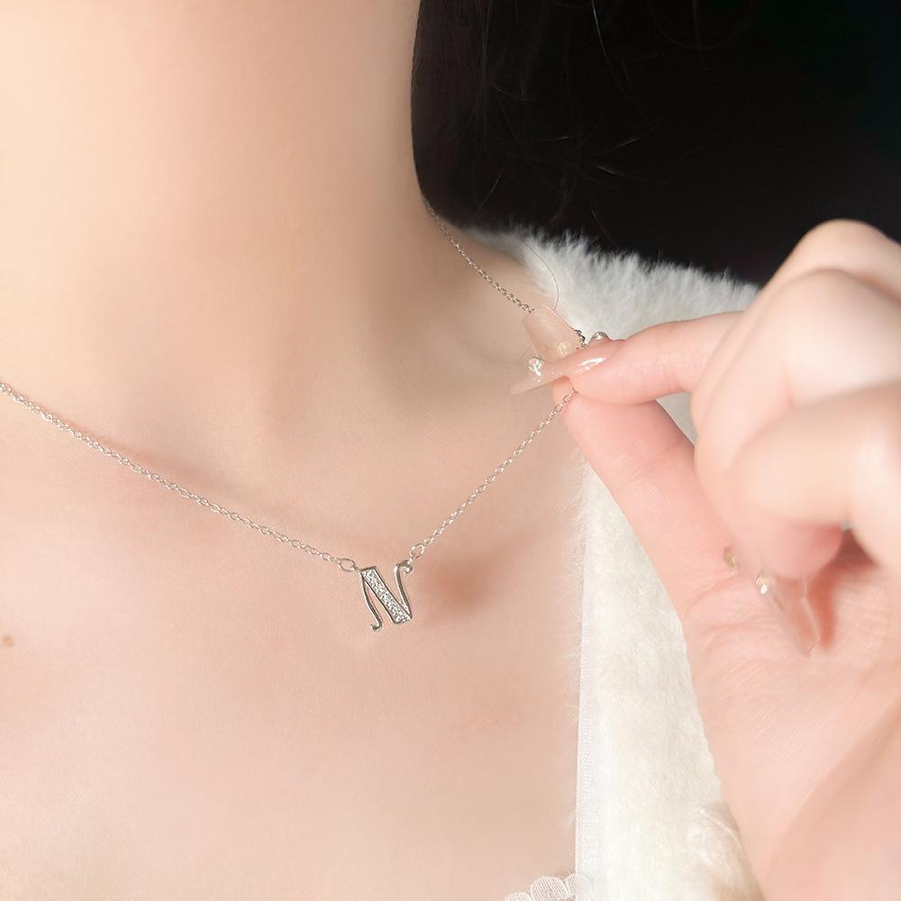 Collar Original de 26 Letras con Incrustaciones de Diamantes para Mujer, Lujo Ligero Verano 2025 Acero Titanio Cadena Clavícula Inmarcesible Versátil Choker Venta al por Mayor