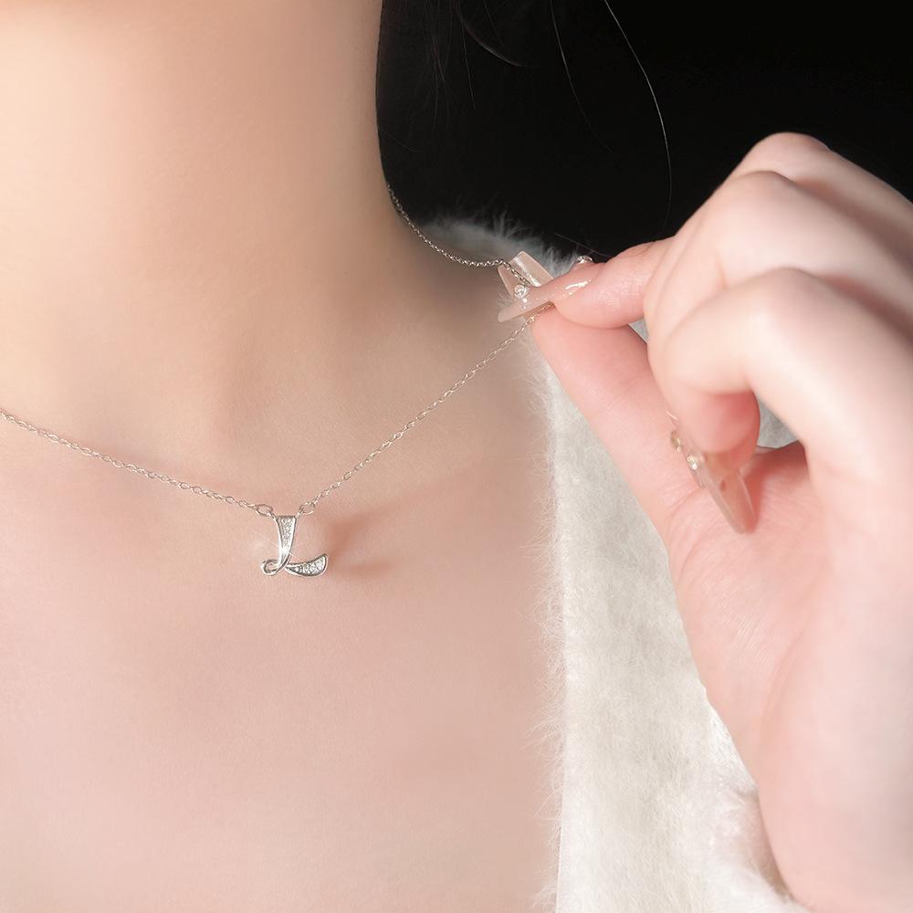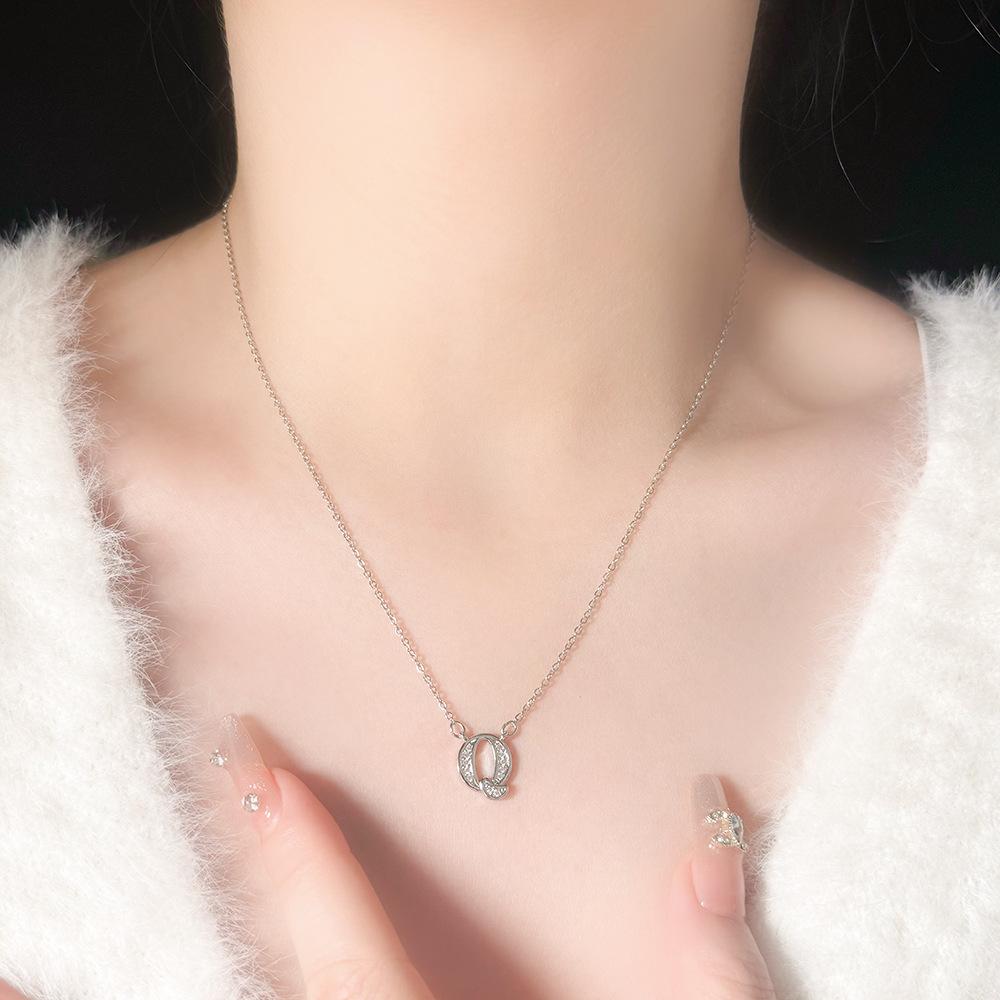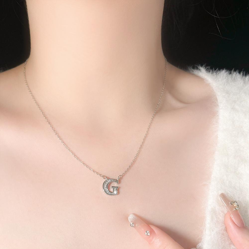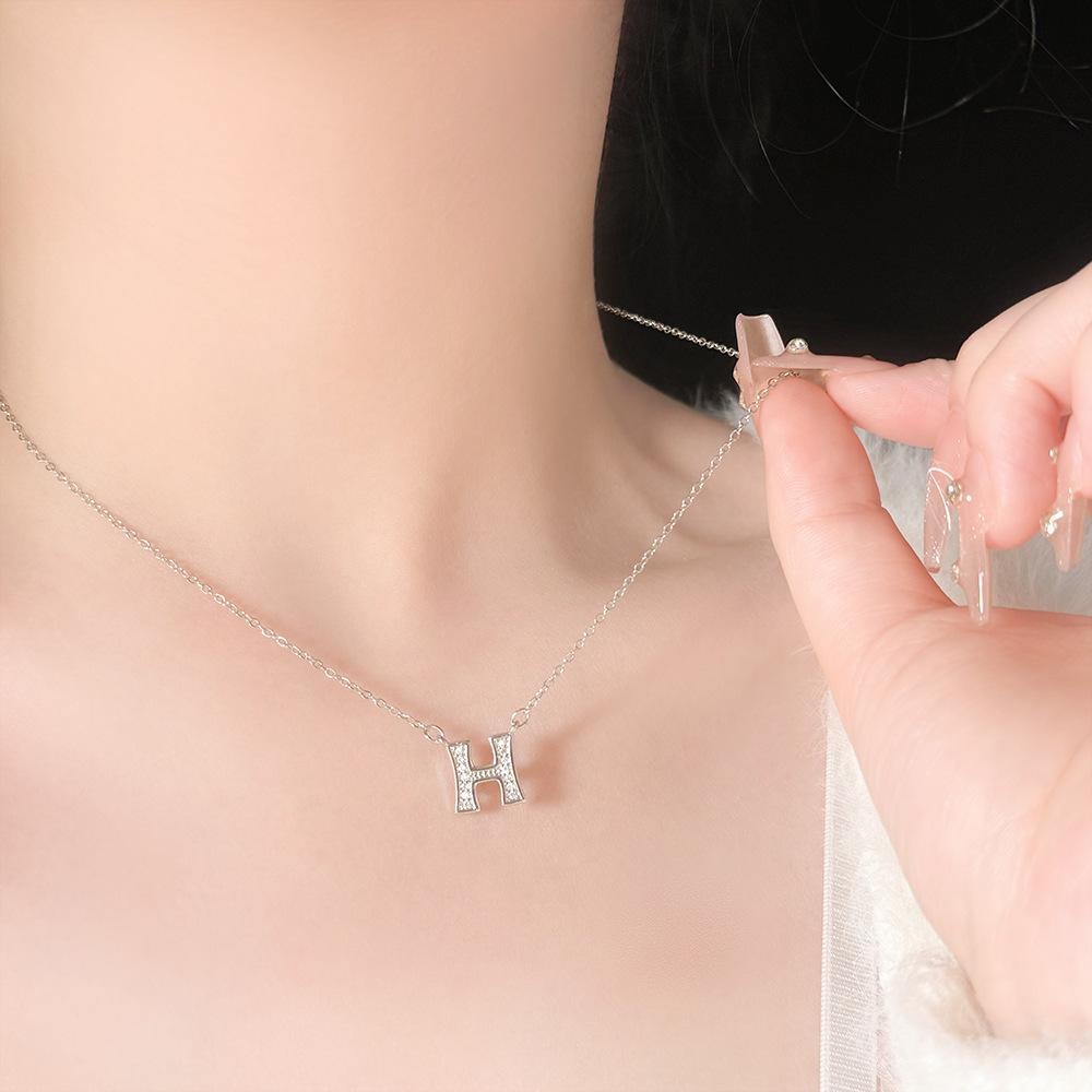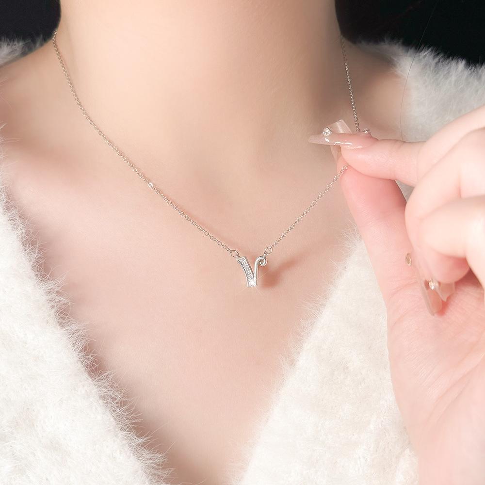 Collar Original de 26 Letras con Incrustaciones de Diamantes para Mujer, Lujo Ligero Verano 2025 Acero Titanio Cadena Clavícula Inmarcesible Versátil Choker Venta al por Mayor
